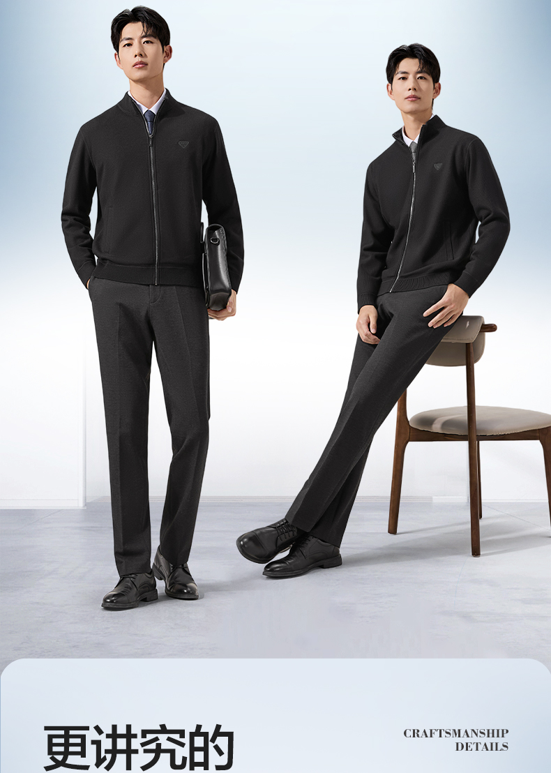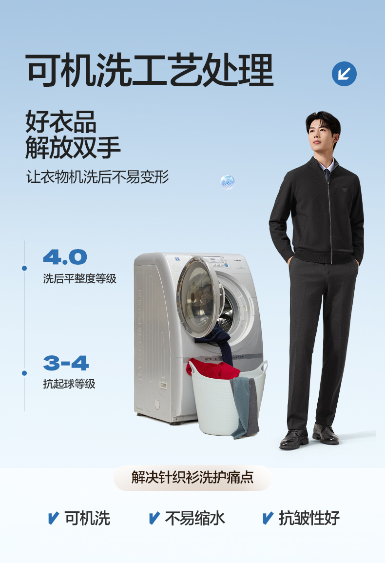 【含羊毛/可机洗/抗静电】柒牌2025秋季加绒商务休闲开襟针织衫129Y70120
