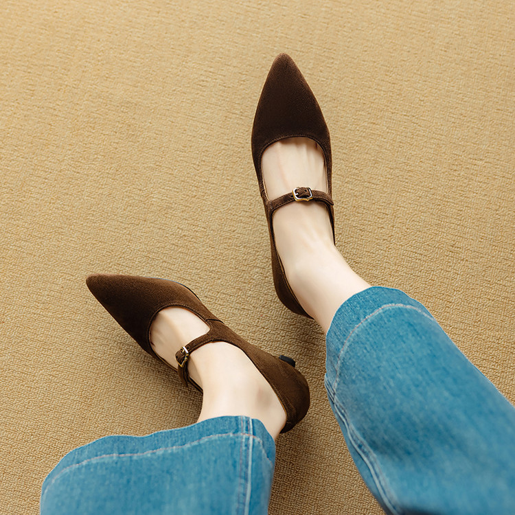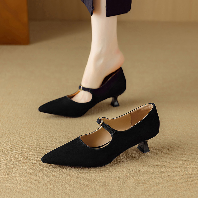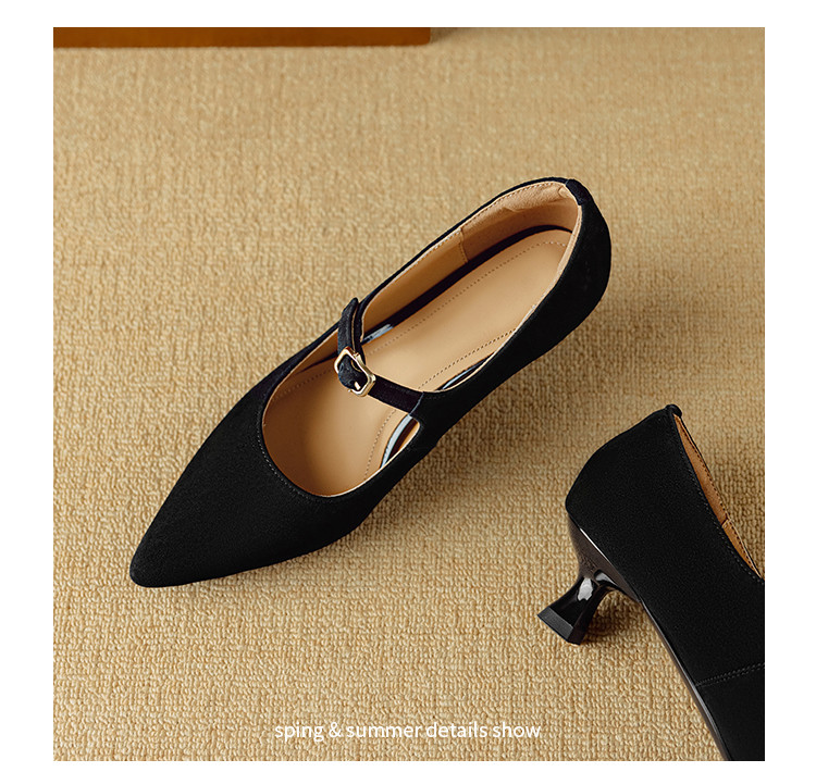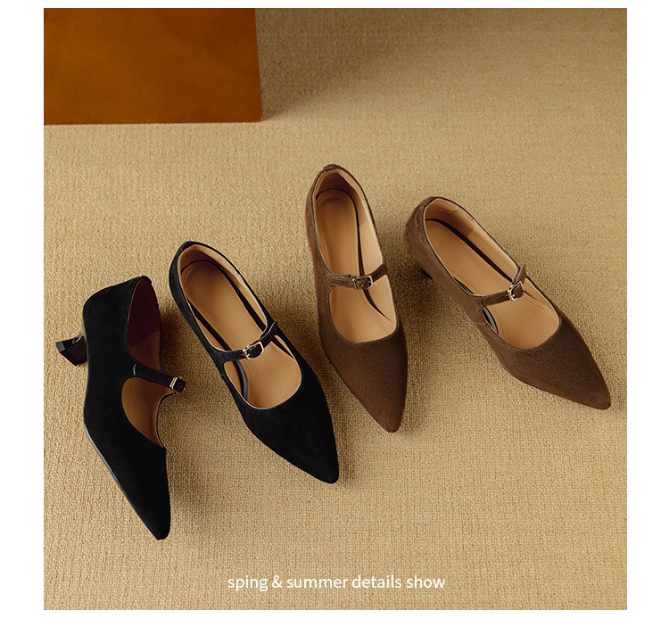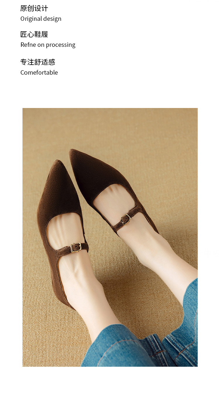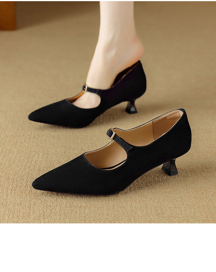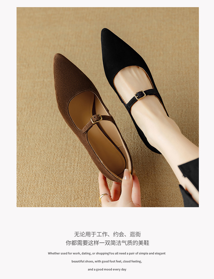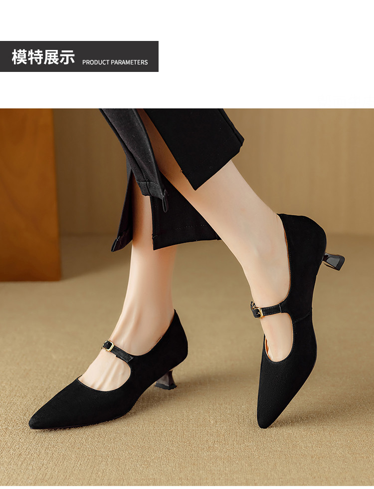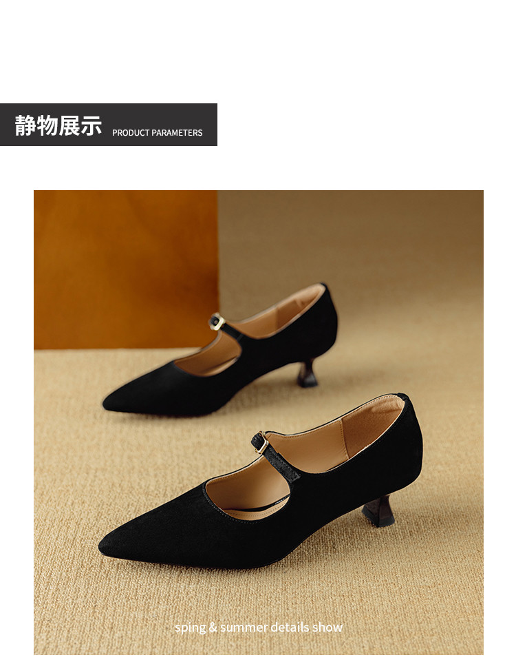 【预售5天】复古尖头浅口单鞋女新款真皮一字扣百搭气质细跟玛丽珍高跟鞋DB&M6187