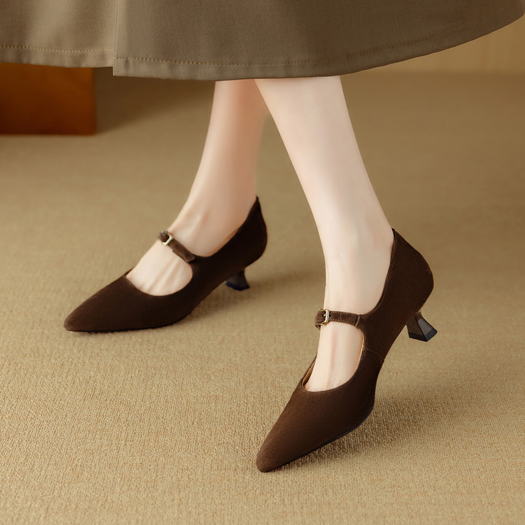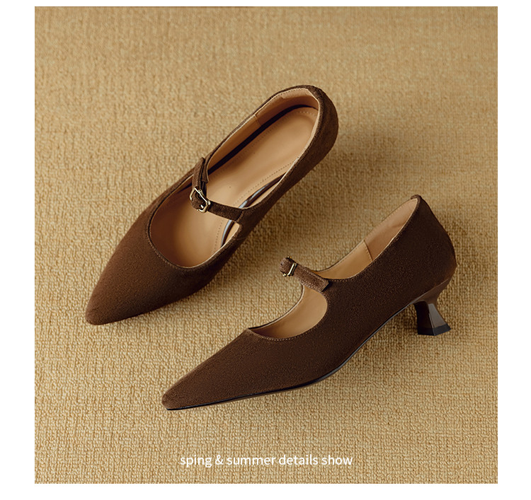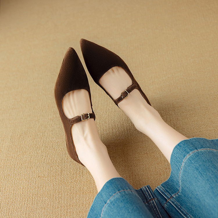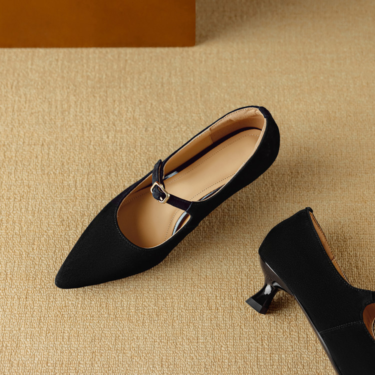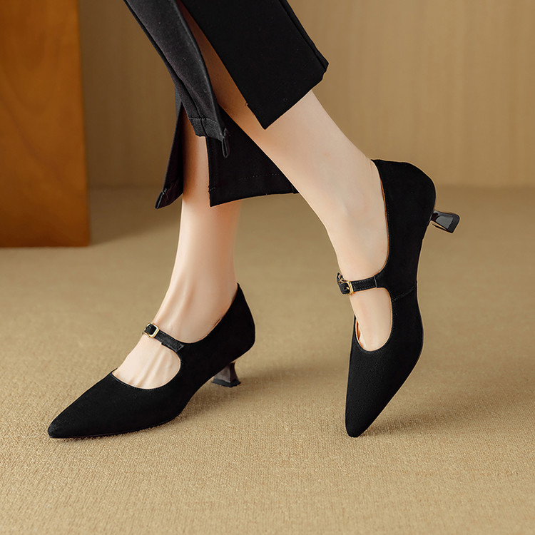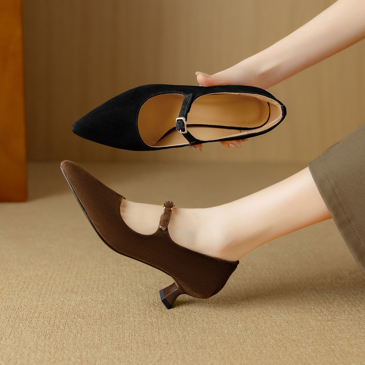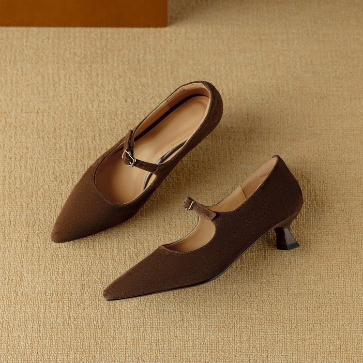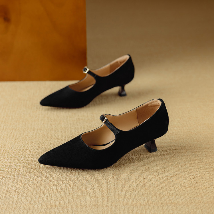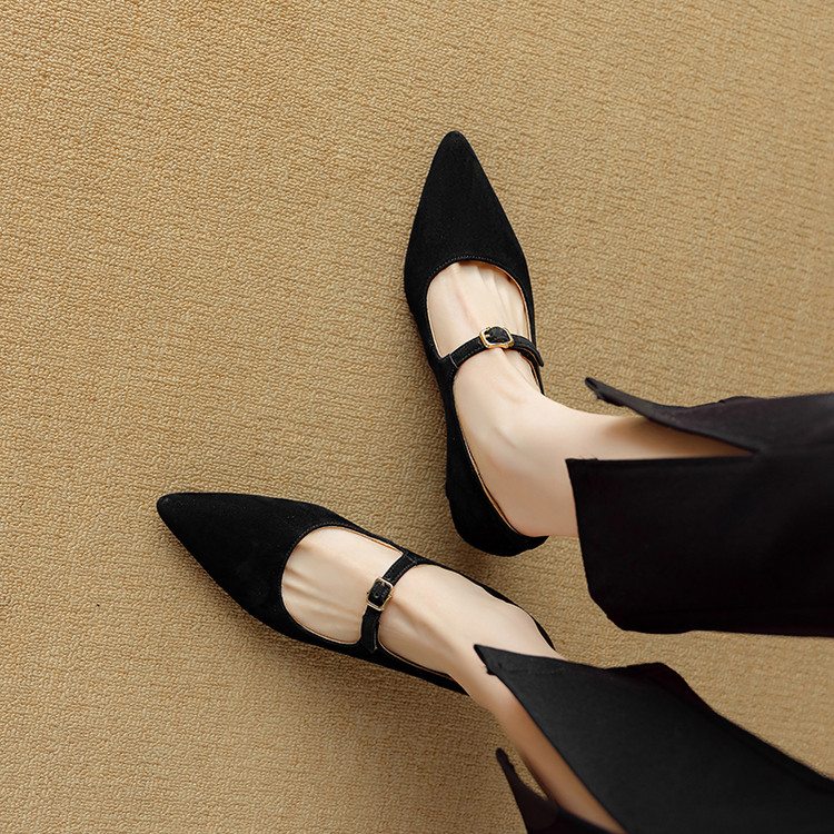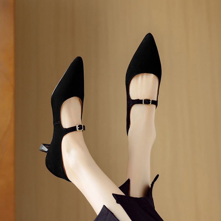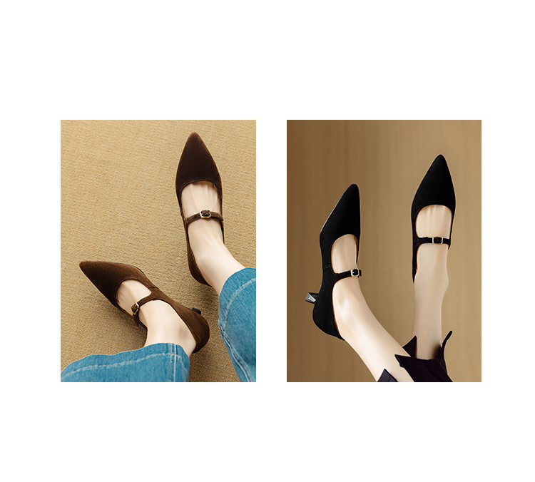 【预售5天】复古尖头浅口单鞋女新款真皮一字扣百搭气质细跟玛丽珍高跟鞋DB&M6187