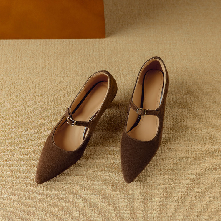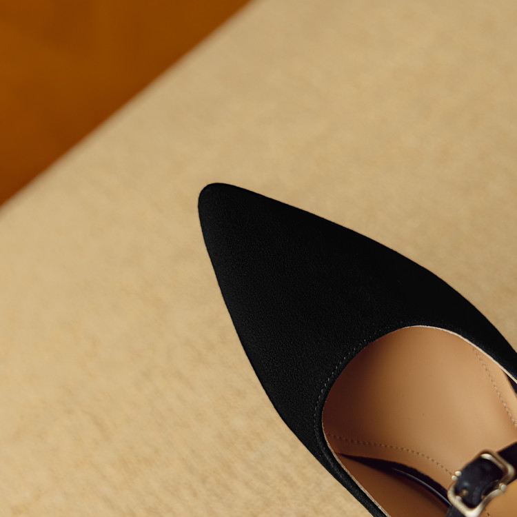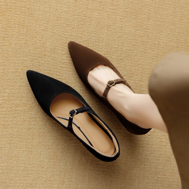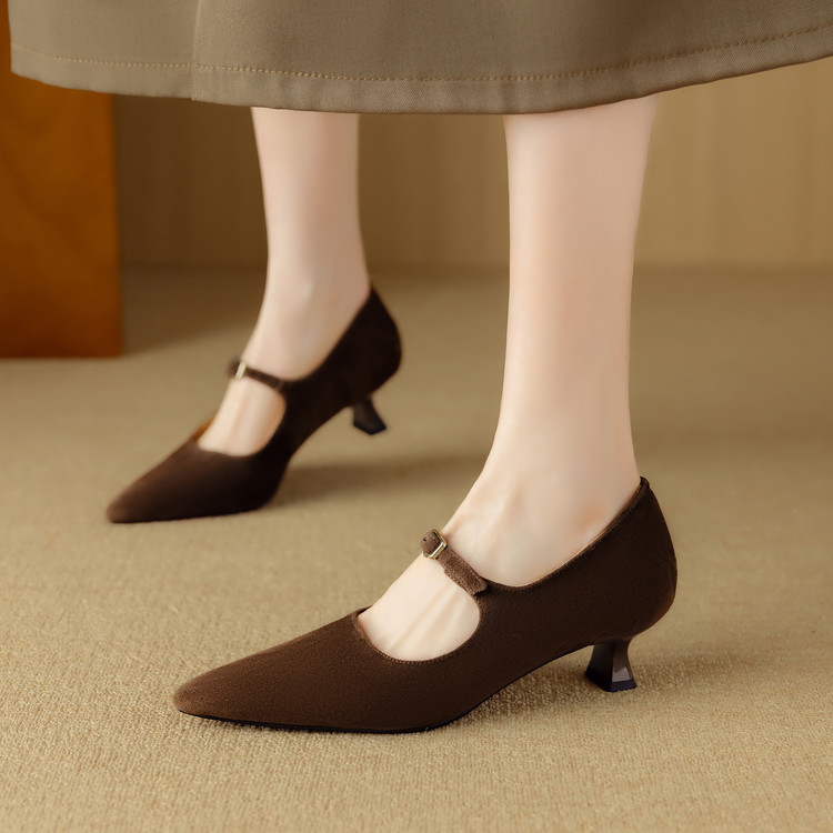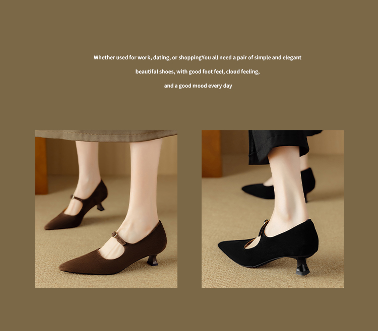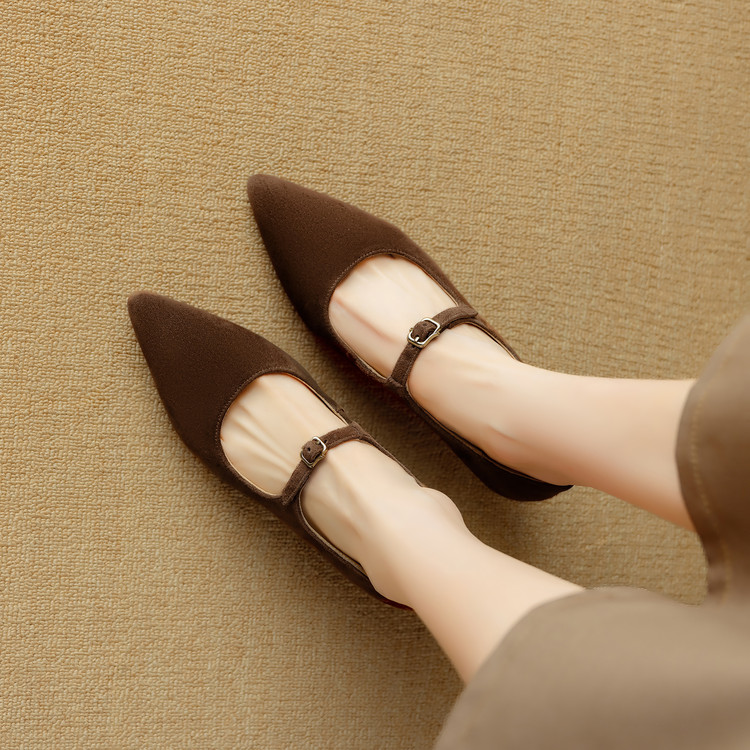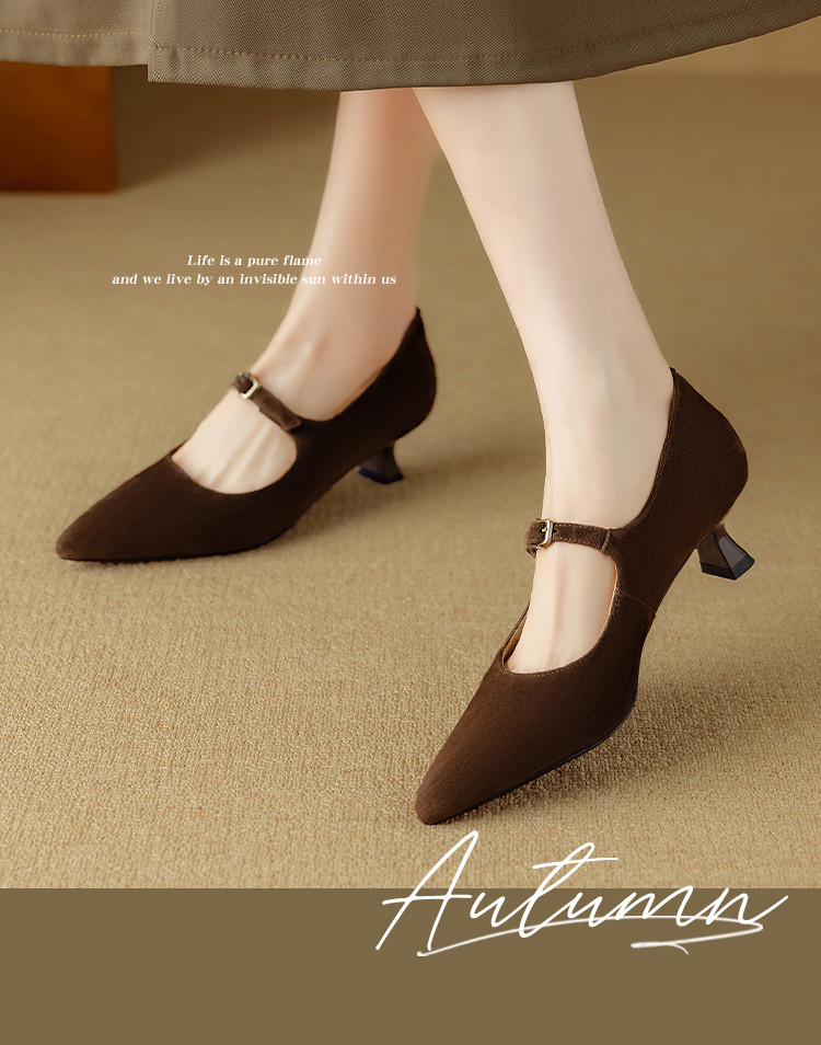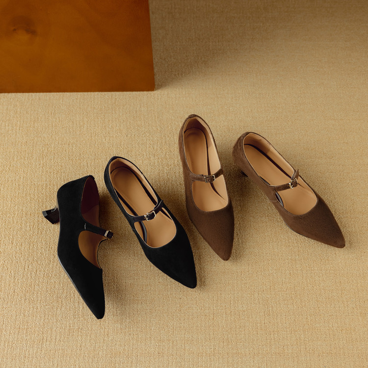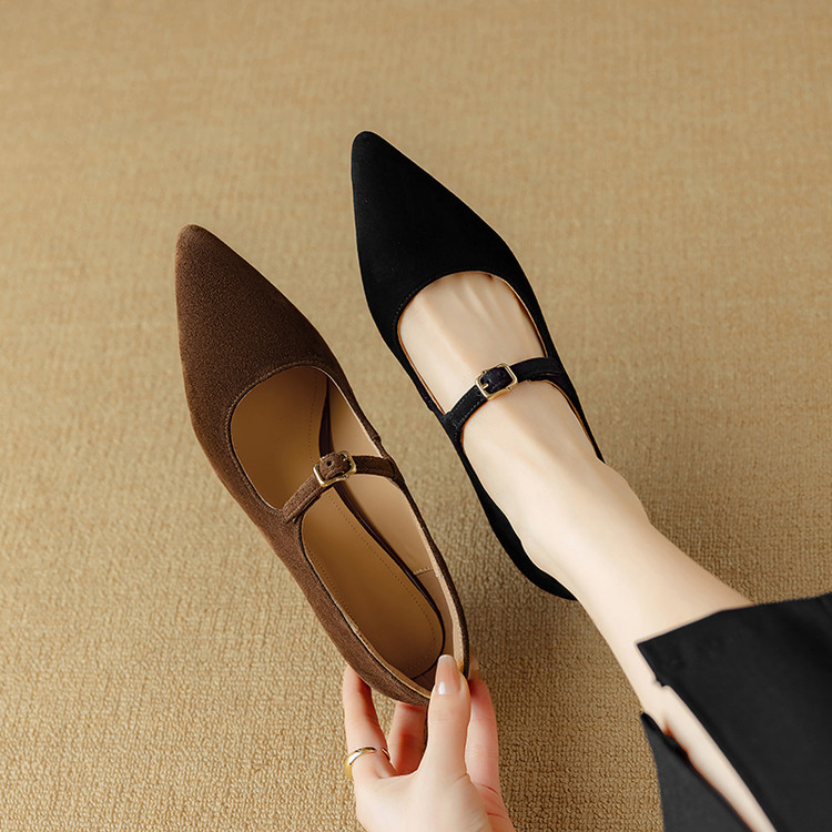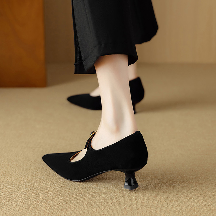 【预售5天】复古尖头浅口单鞋女新款真皮一字扣百搭气质细跟玛丽珍高跟鞋DB&M6187