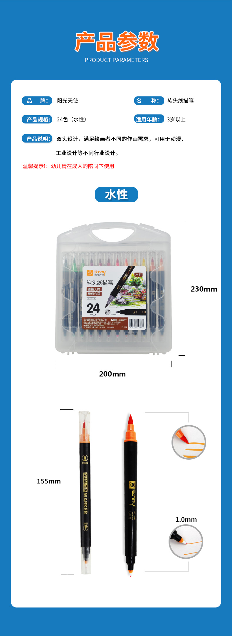 阳光天使24色软头线描笔(包邮 )