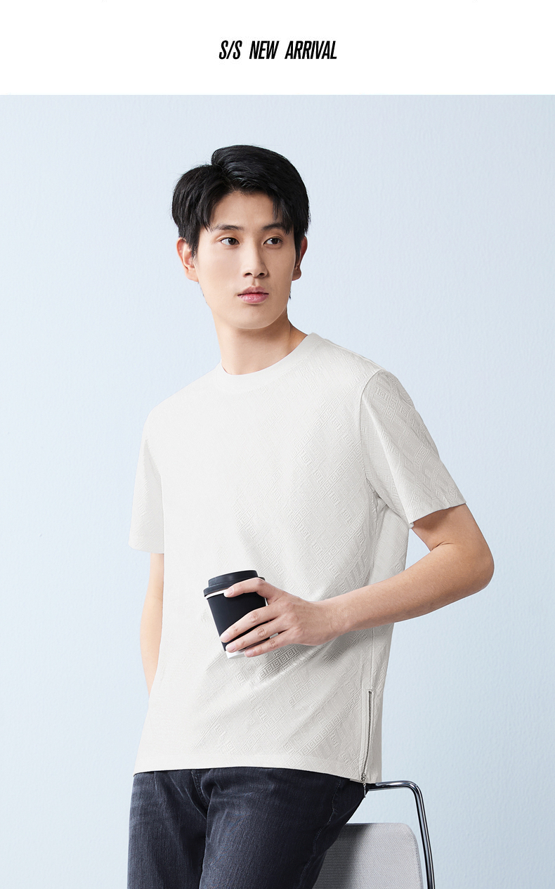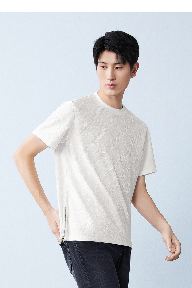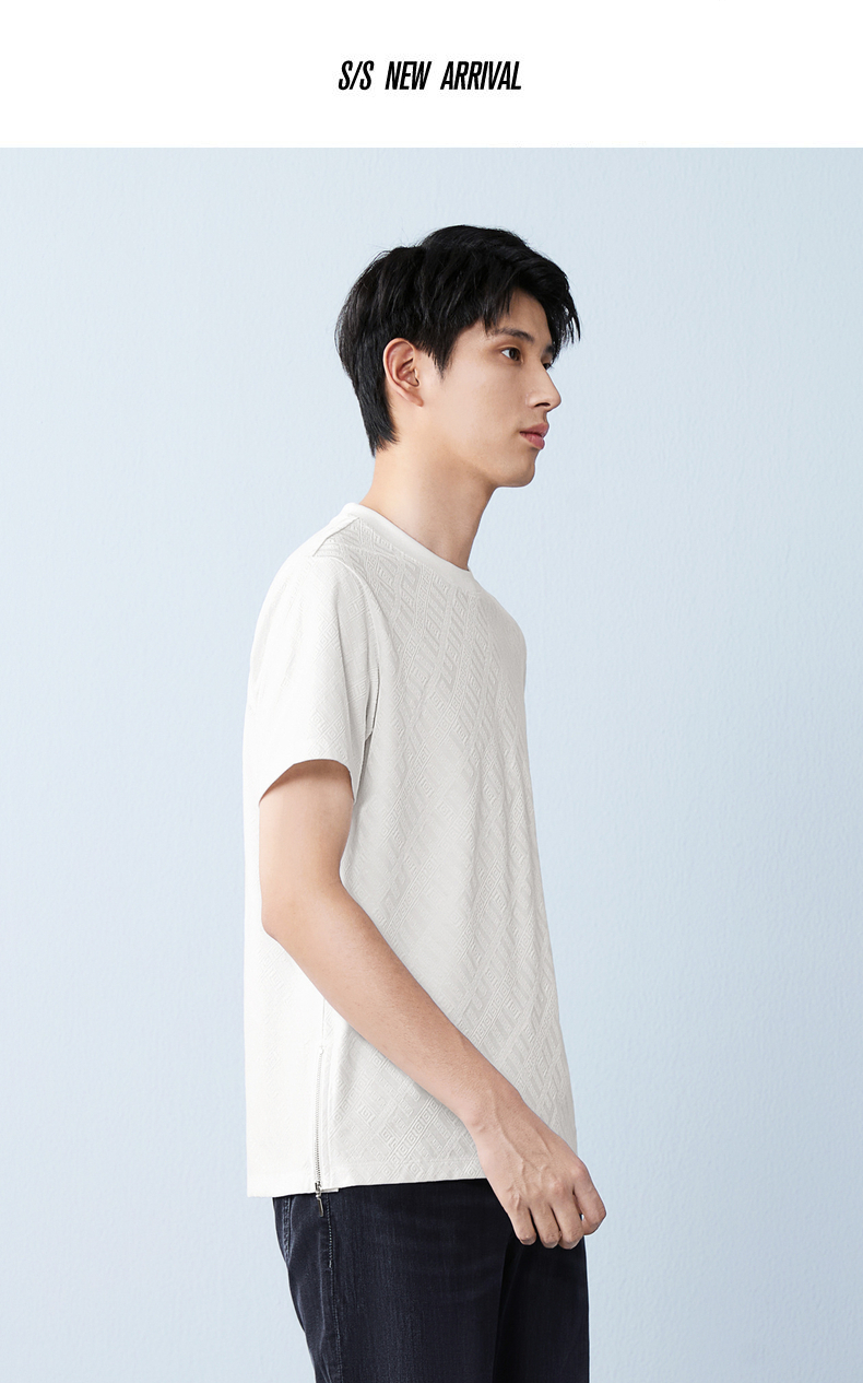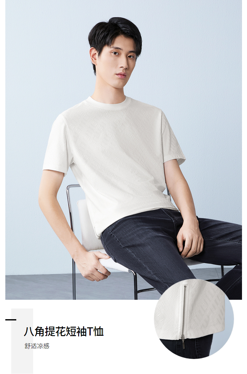 【凉感sorona】柒牌圆领提花短袖T恤男26夏季新款舒适百搭透气上衣 130T72450