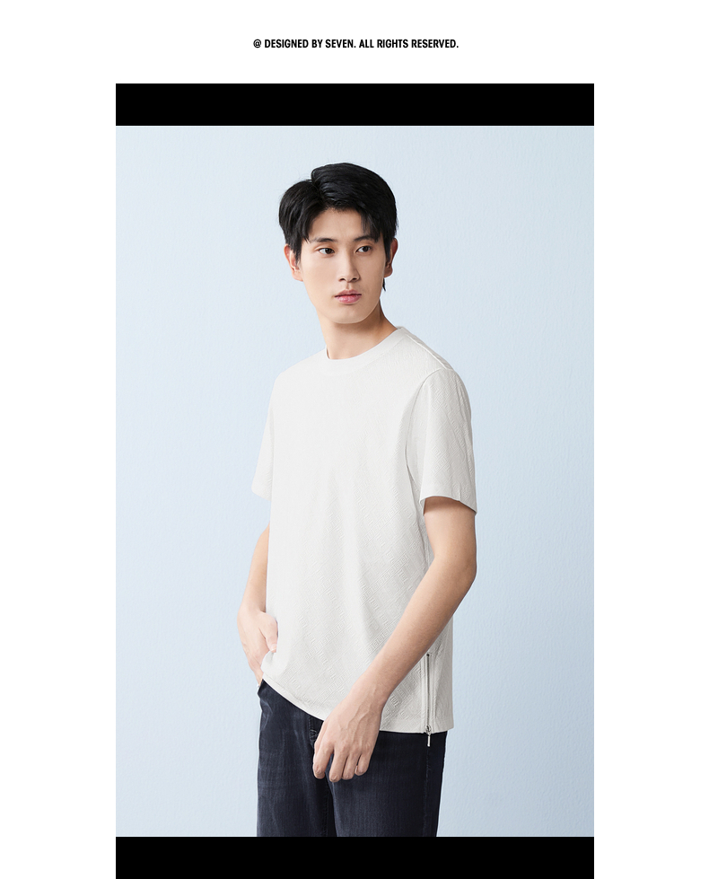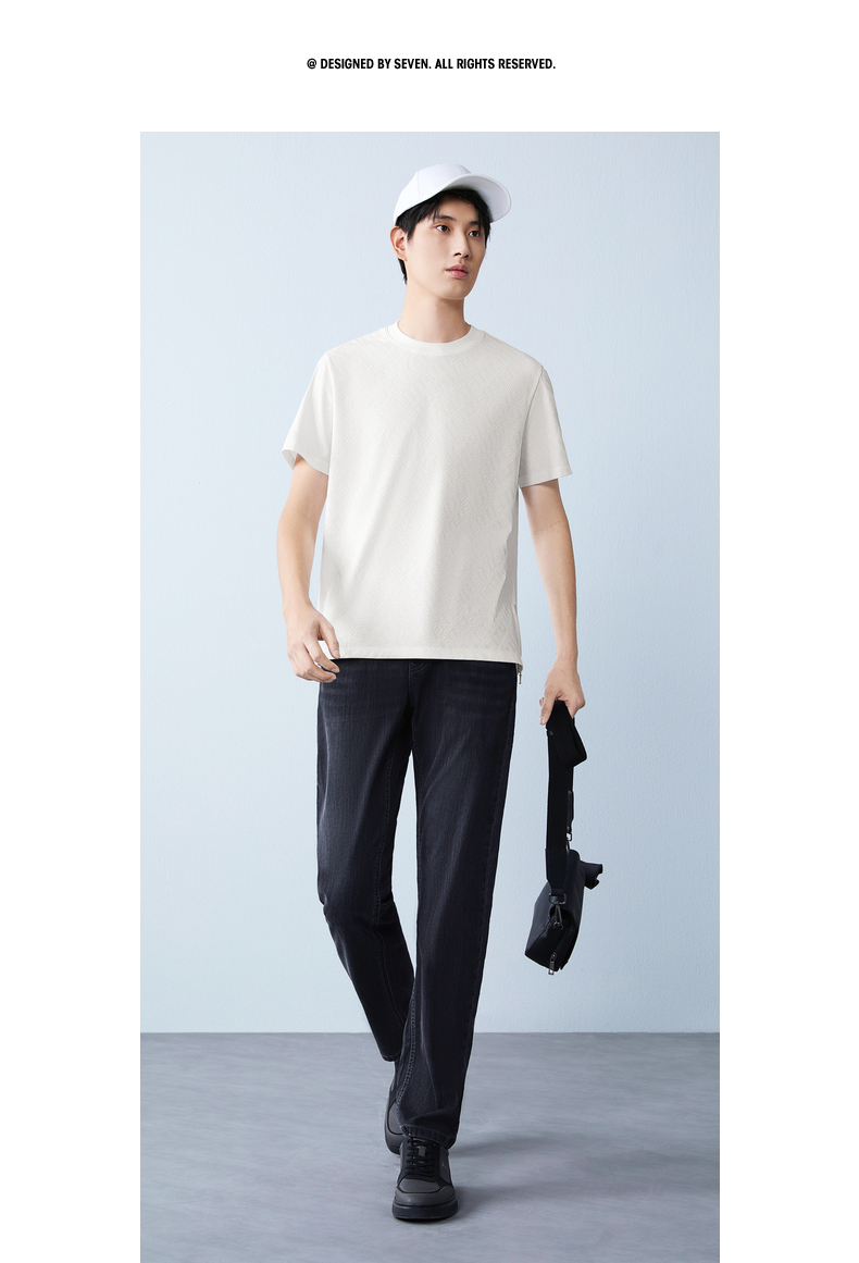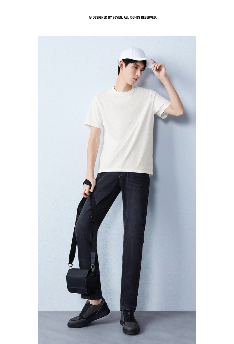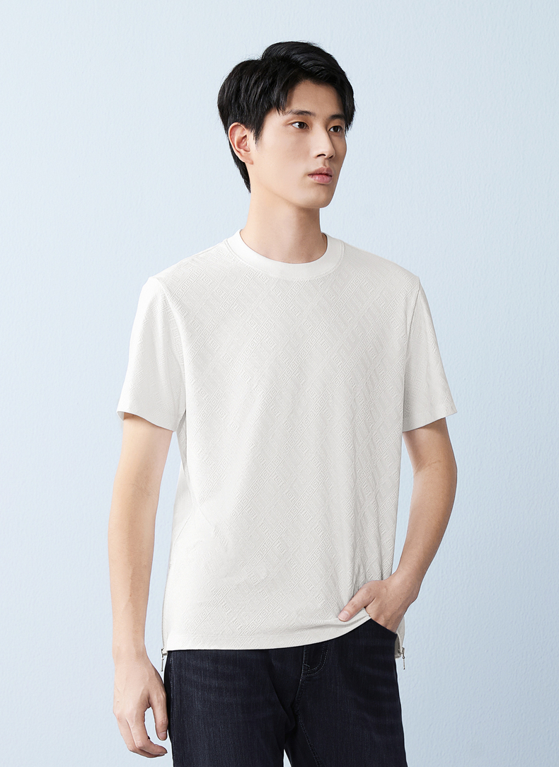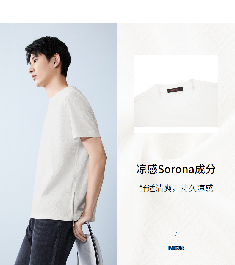 【凉感sorona】柒牌圆领提花短袖T恤男26夏季新款舒适百搭透气上衣 130T72450