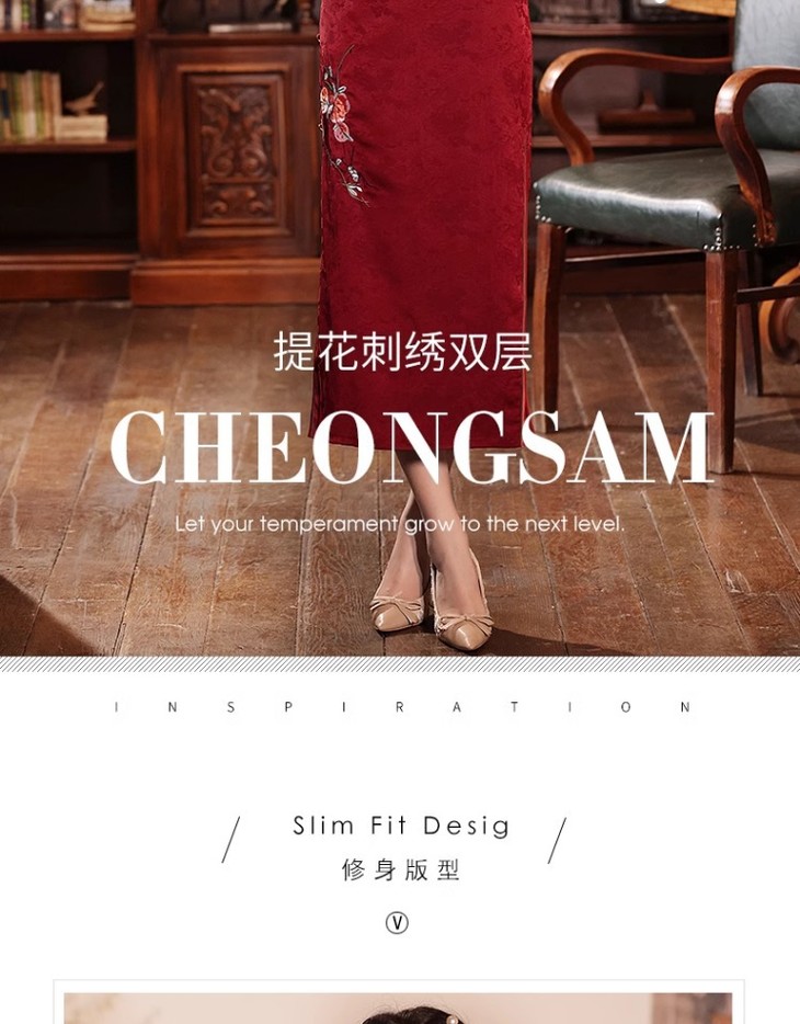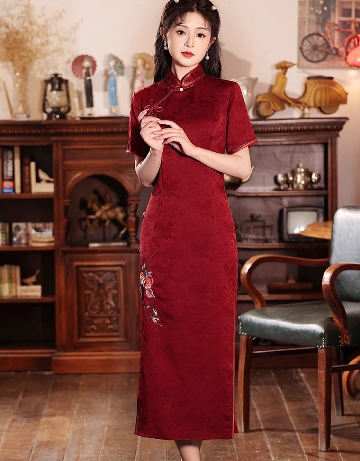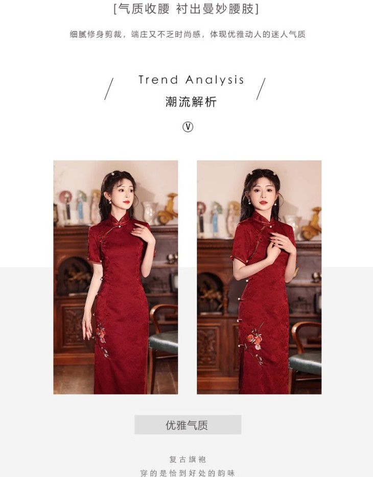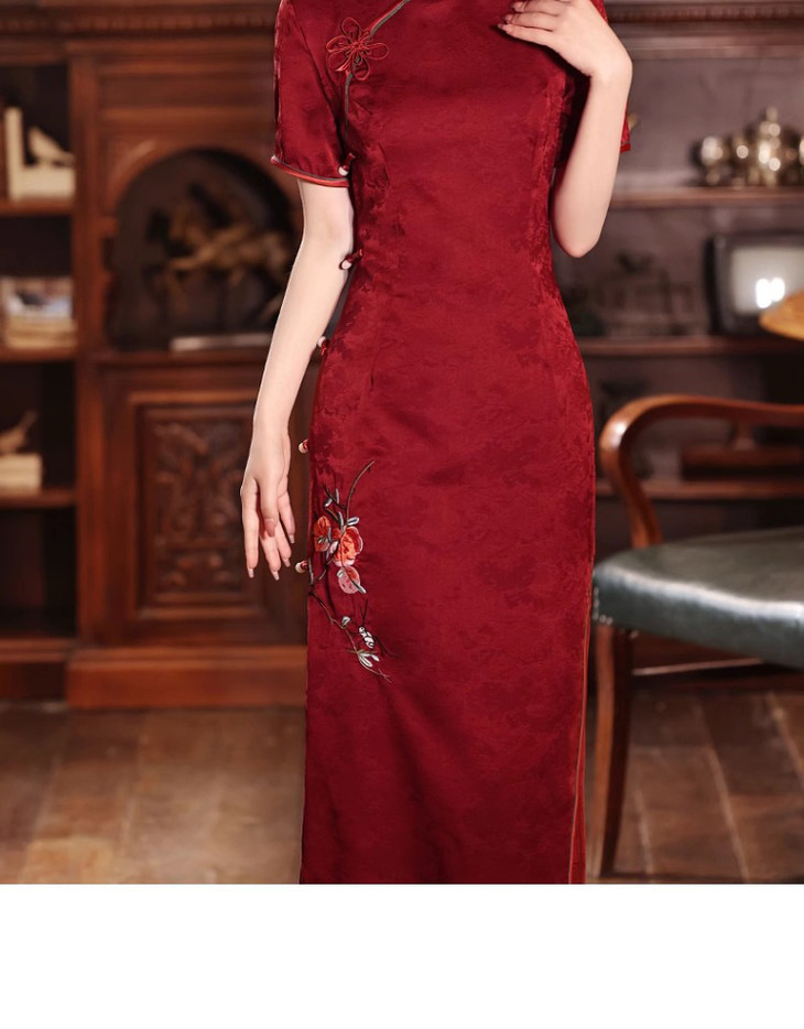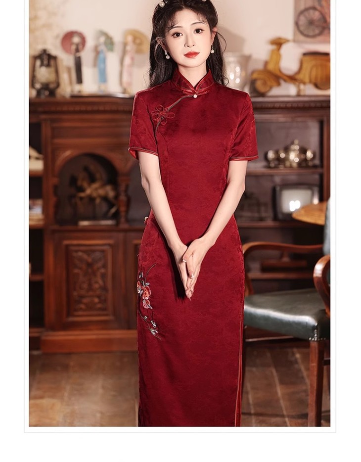 红色旗袍敬酒服新娘刺绣高级感长款LSB2614