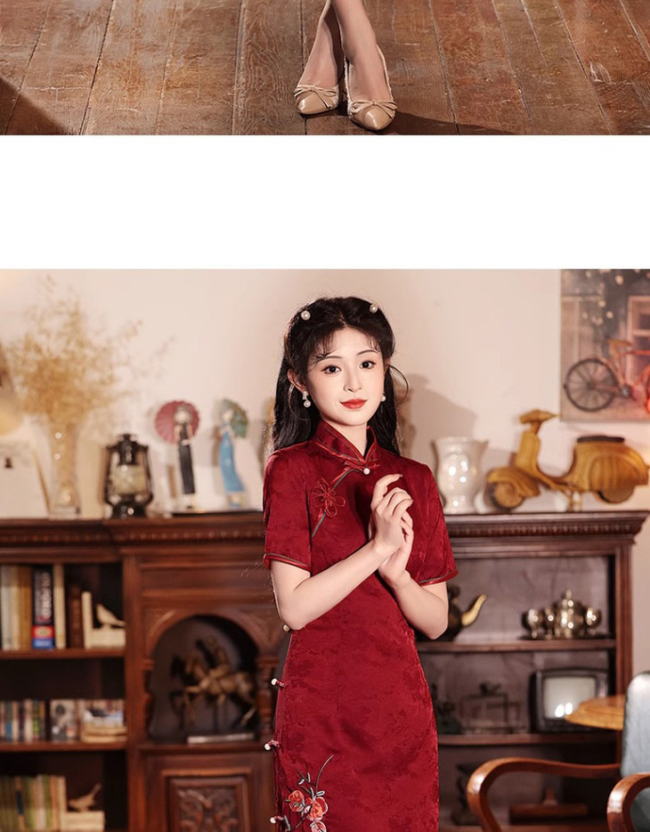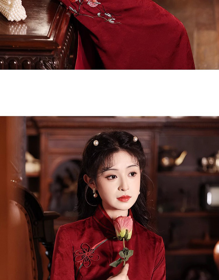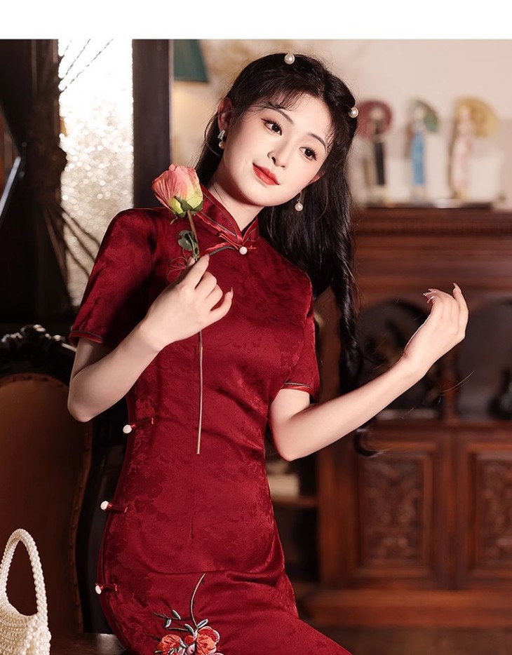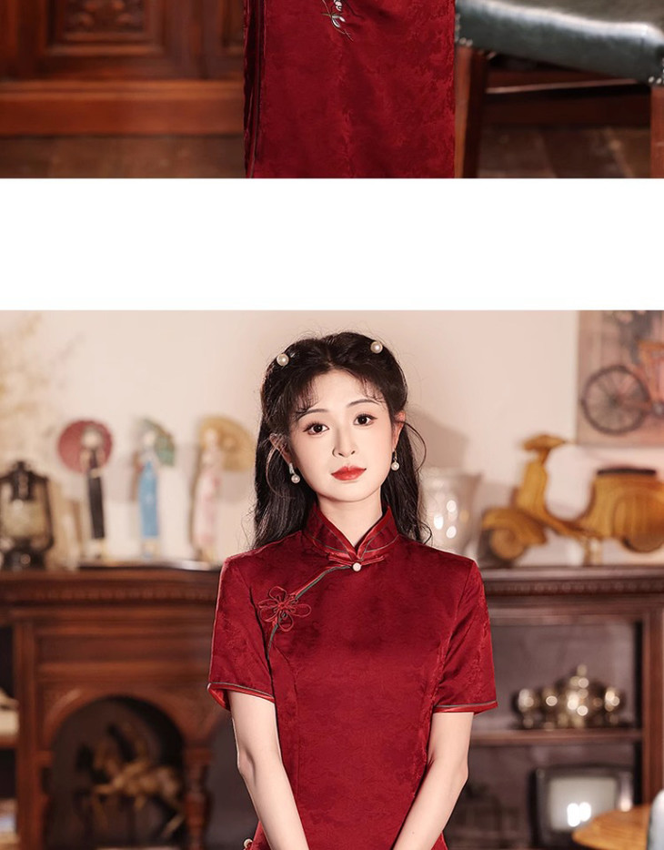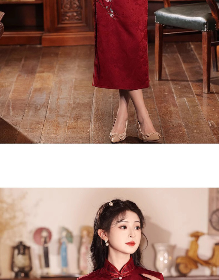 红色旗袍敬酒服新娘刺绣高级感长款LSB2614