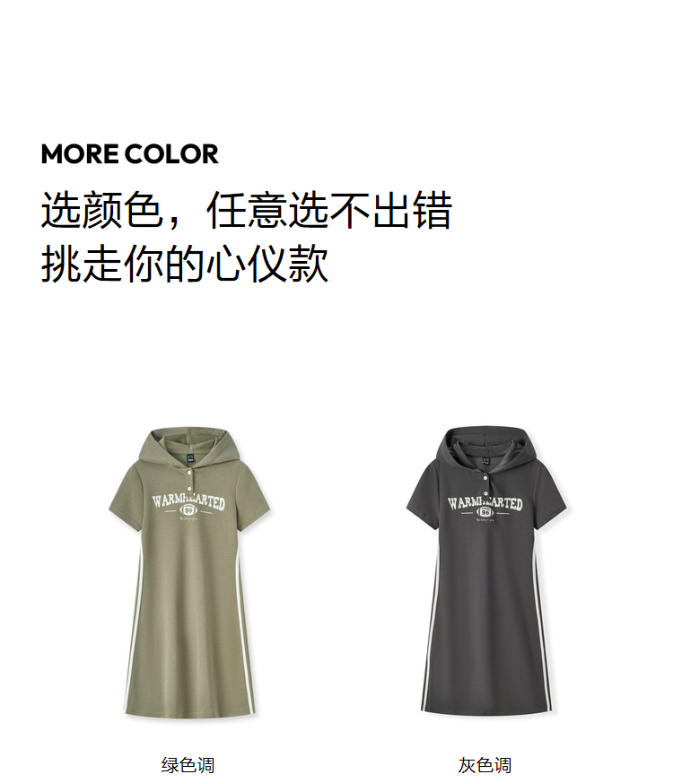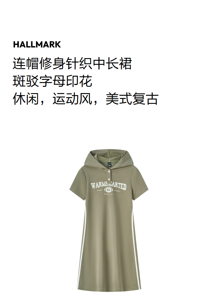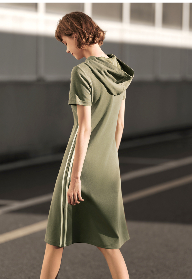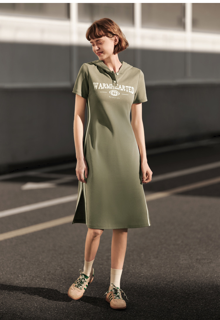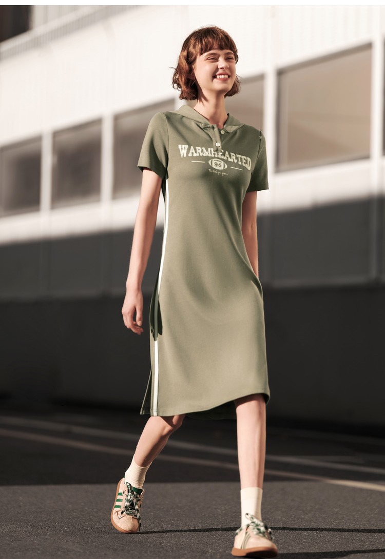 森马连衣裙女字母撞色运动风夏季新款修身连帽中长裙美式复古