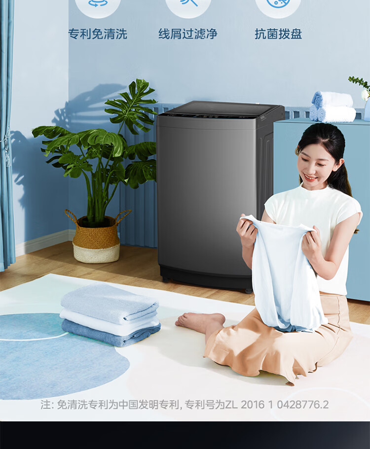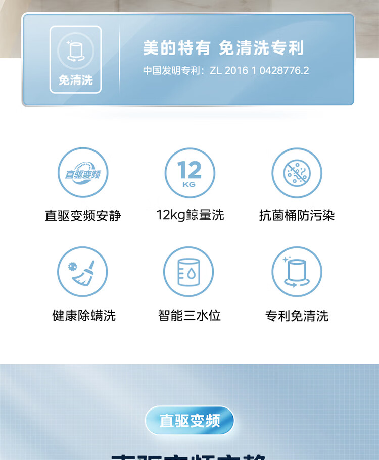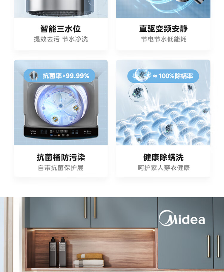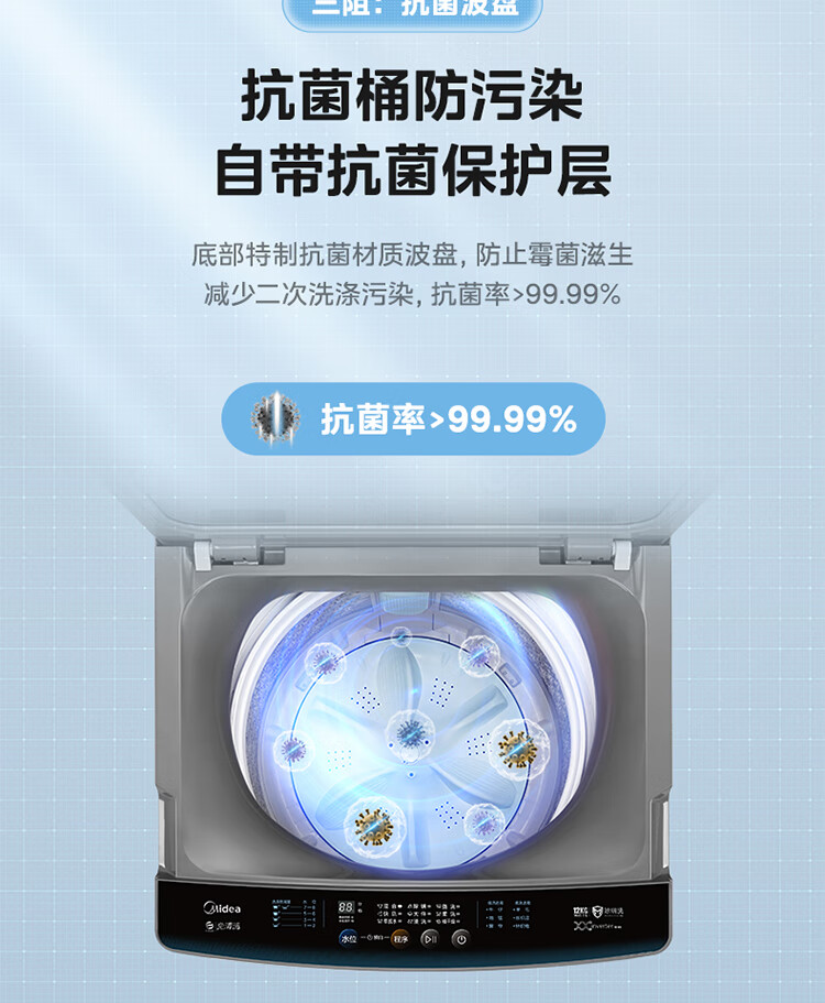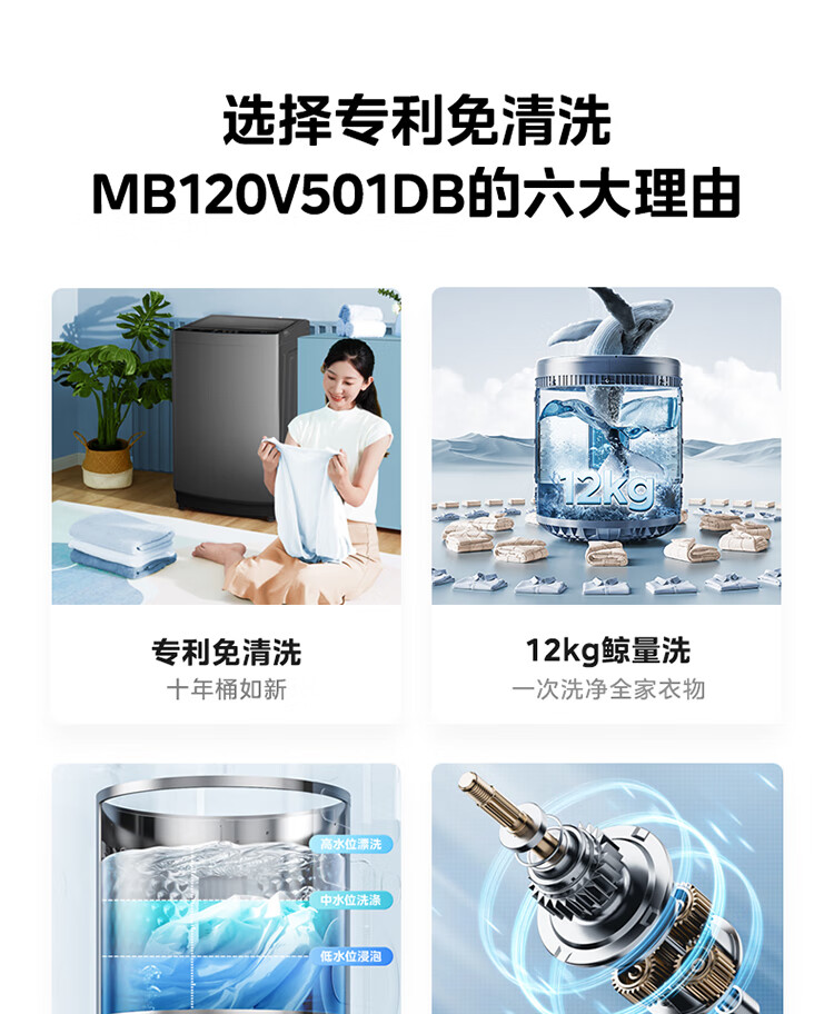 美的(Midea)12公斤 波轮洗衣机全自动 变频直驱电机 健康除螨洗 飓风深层劲洗 专利免清洗 抗菌内桶 玻璃盖 MB120V501DB