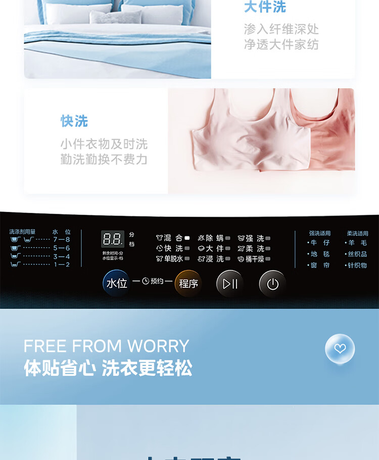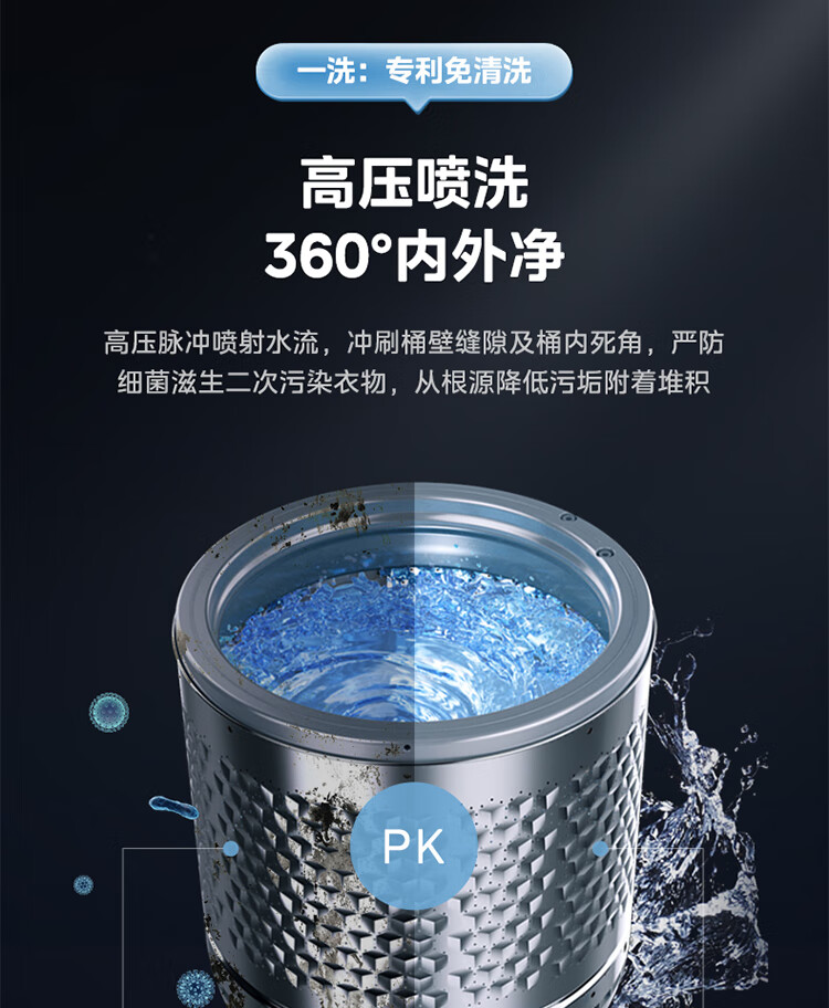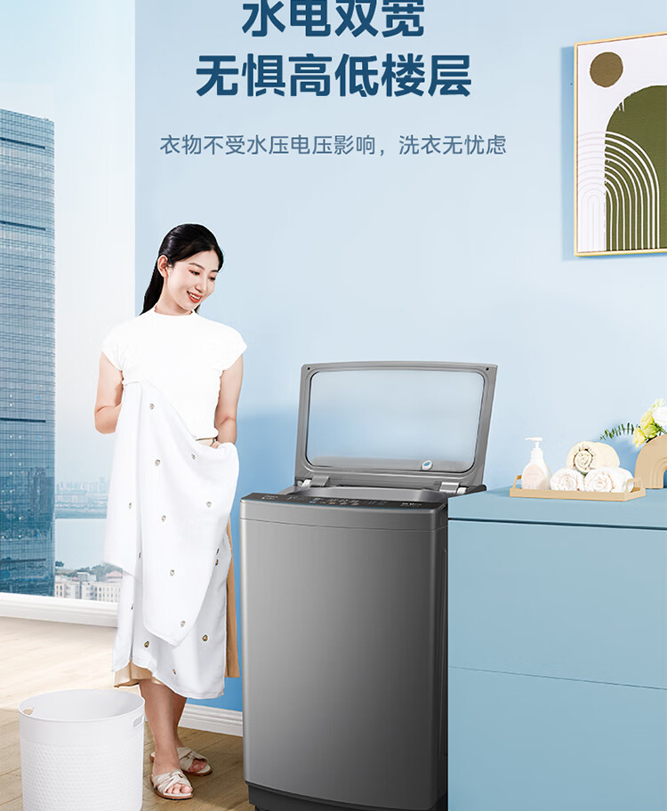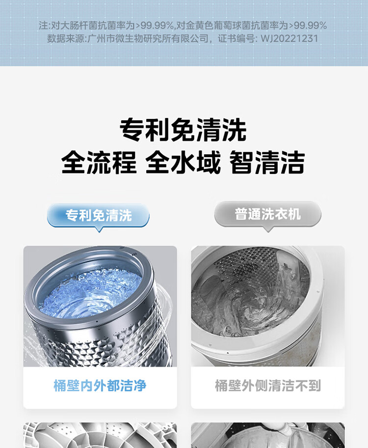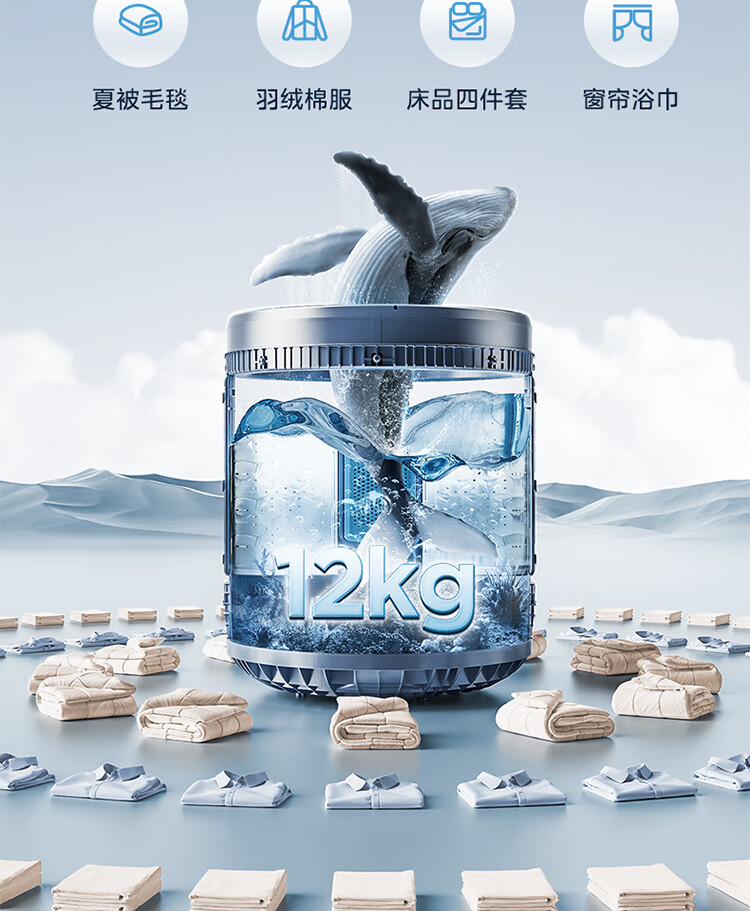 美的(Midea)12公斤 波轮洗衣机全自动 变频直驱电机 健康除螨洗 飓风深层劲洗 专利免清洗 抗菌内桶 玻璃盖 MB120V501DB