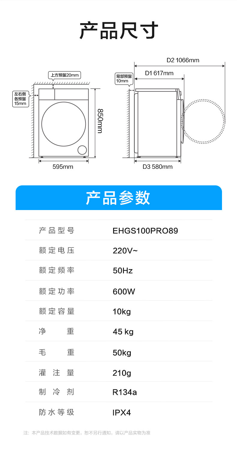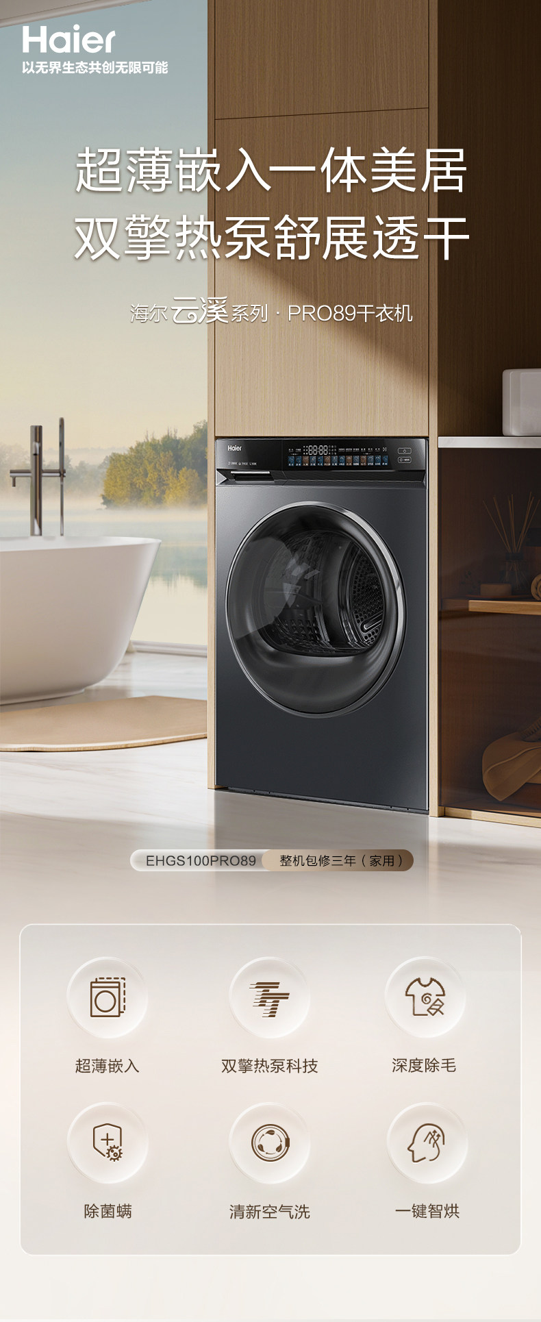 Haier/海尔 EHGS100PRO89 除菌螨烘干机一键智烘双擎热泵烘干机