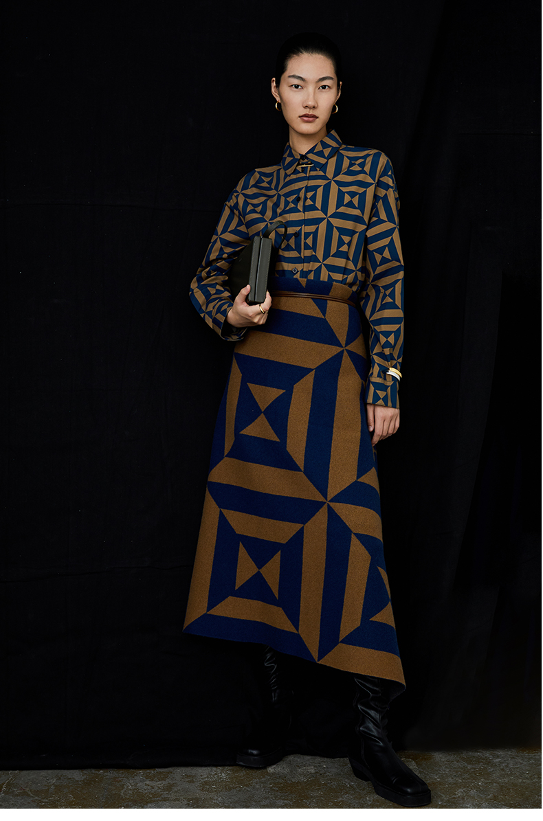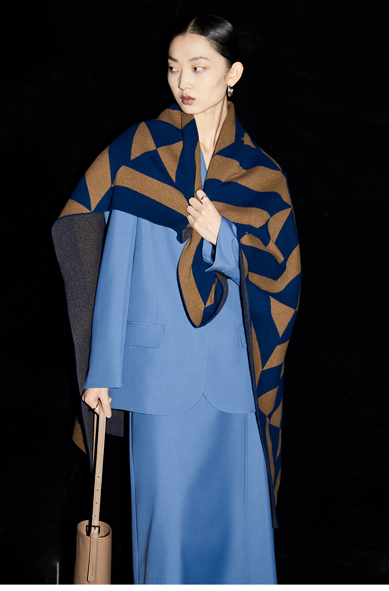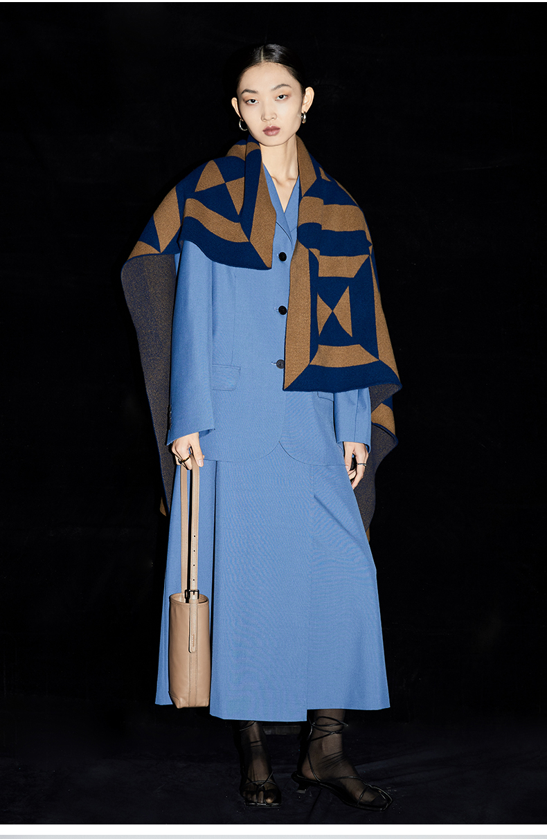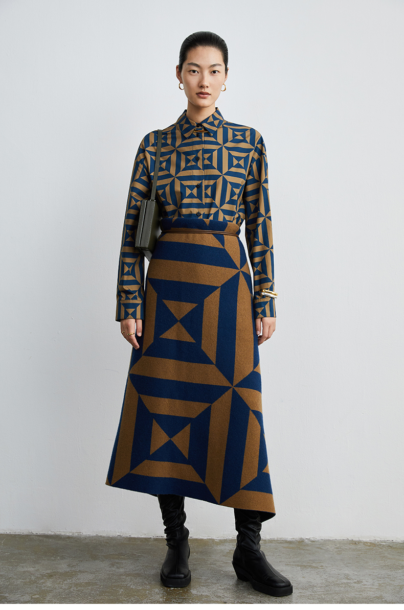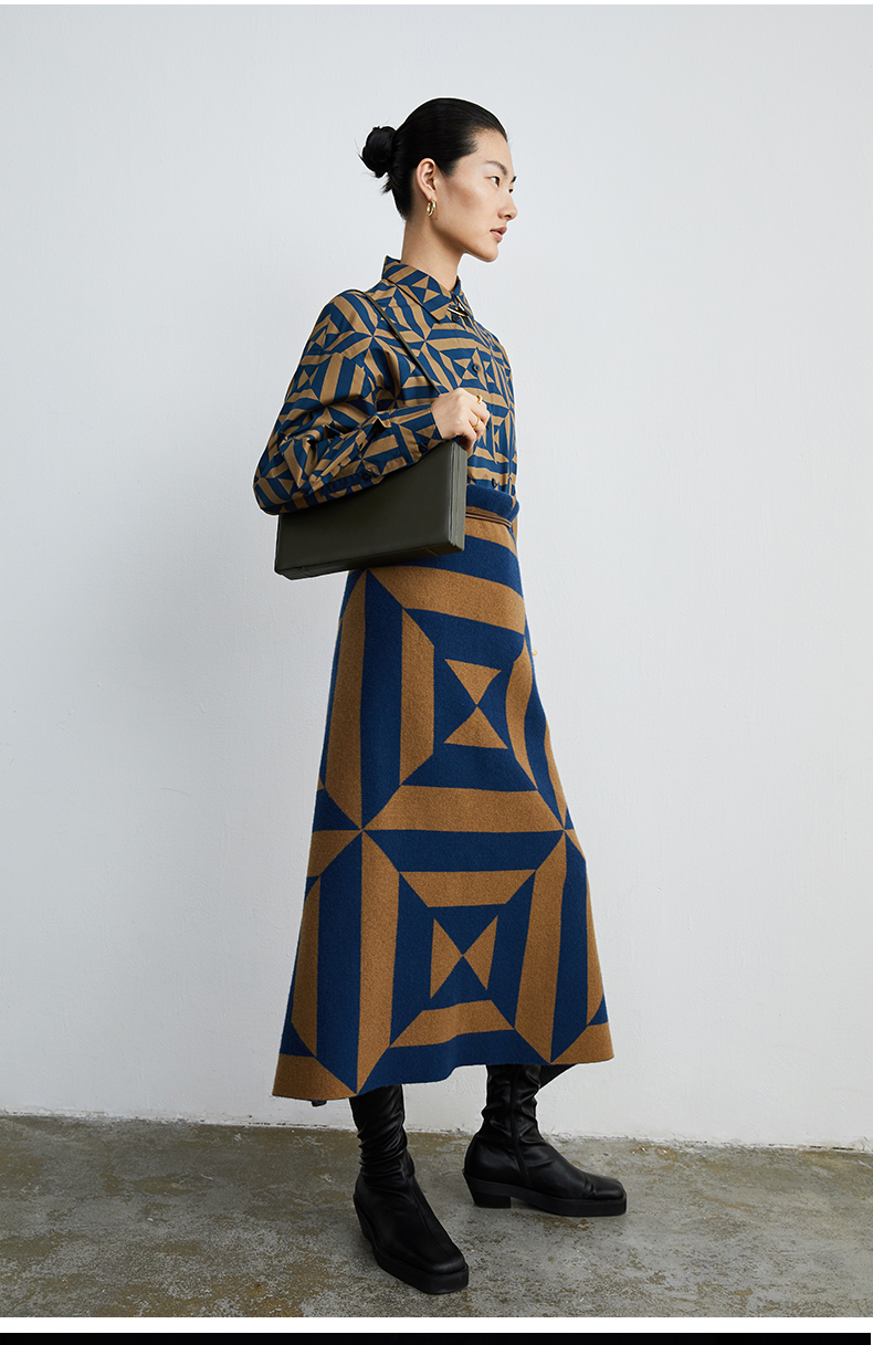 HIDEMI 简约设计感微荡立领半袖廓形套装 黑色/白色 上衣/半身裙