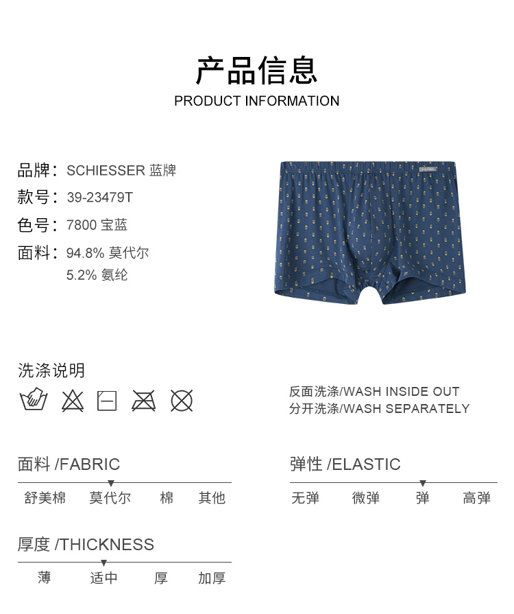 【印花莫代尔】SCHIESSER德国舒雅男士印花莫代尔平角小裤(单条装)39/23479T