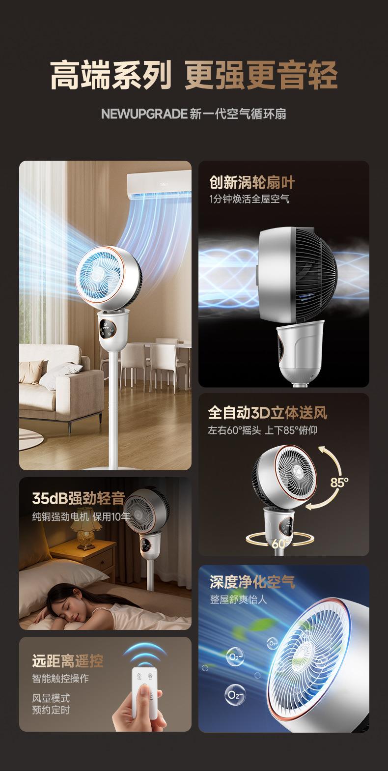 家用空气循环扇3挡风力涡轮台式对流电风扇上下左右8字摇头落地扇