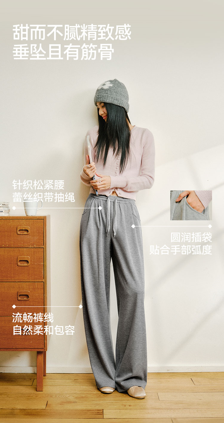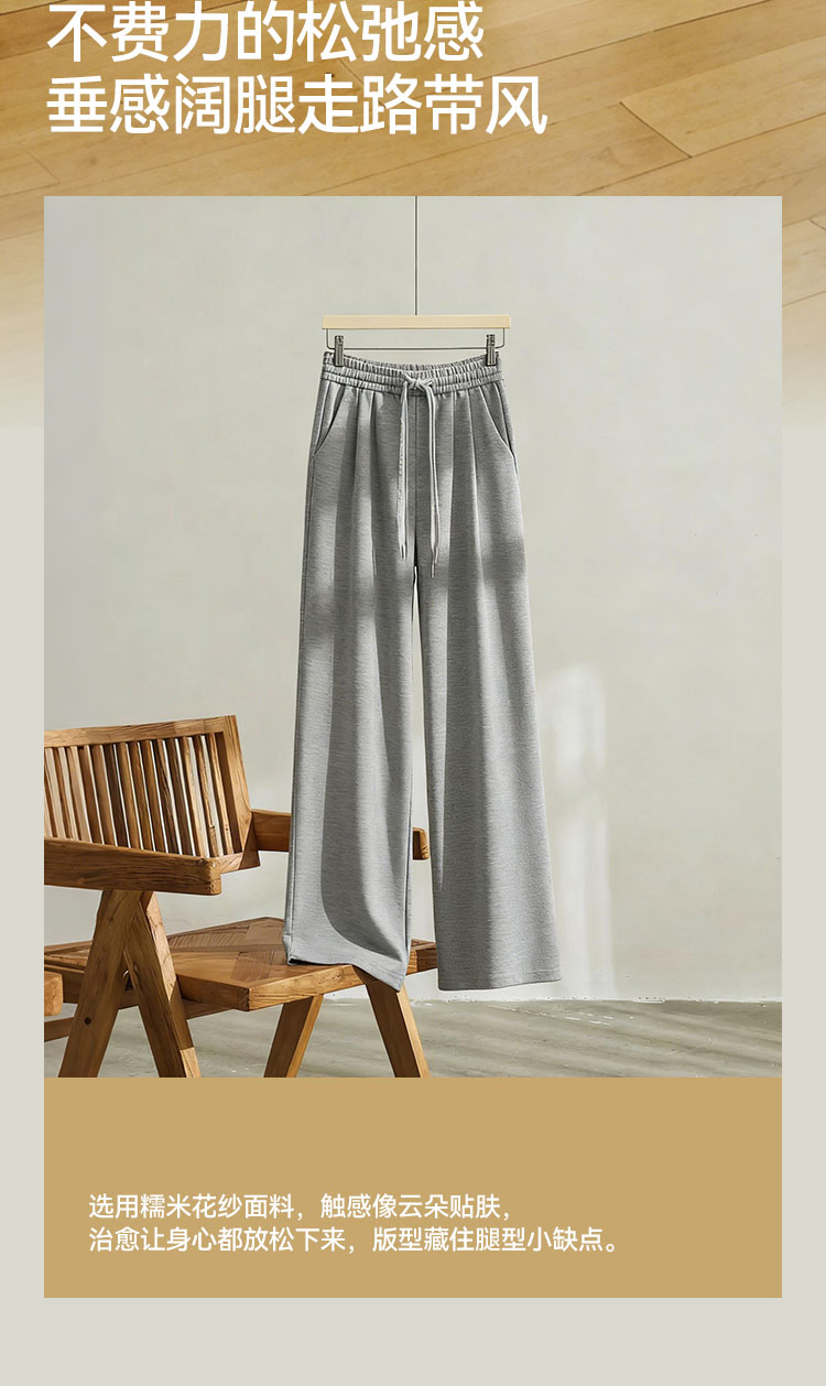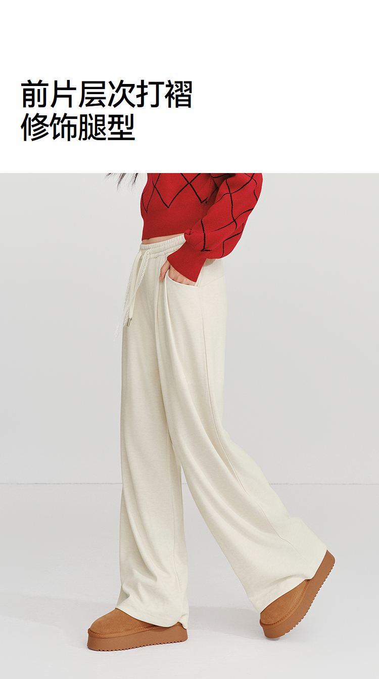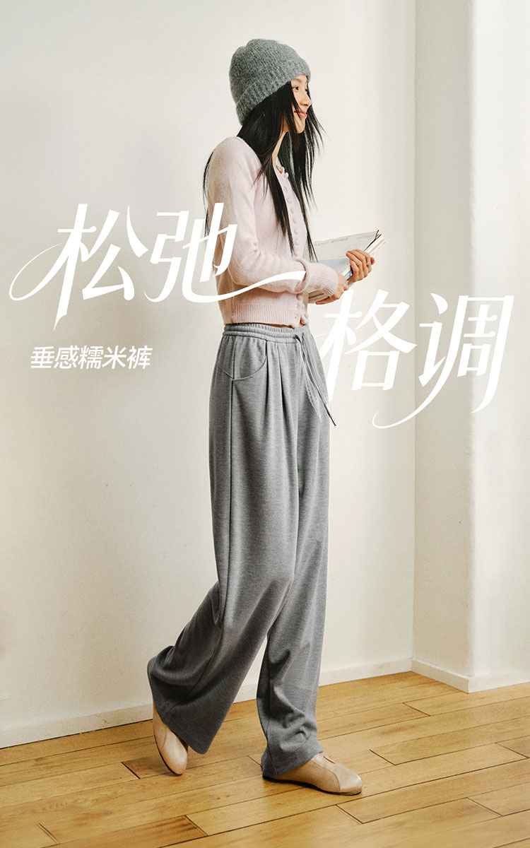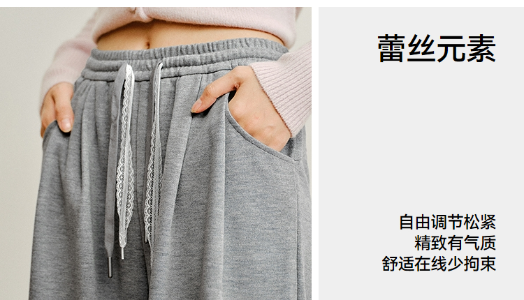 森马休闲裤女春季打褶松紧腰蕾丝糯米裤宽松垂坠感2026新款阔腿裤