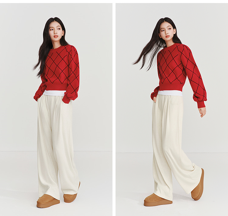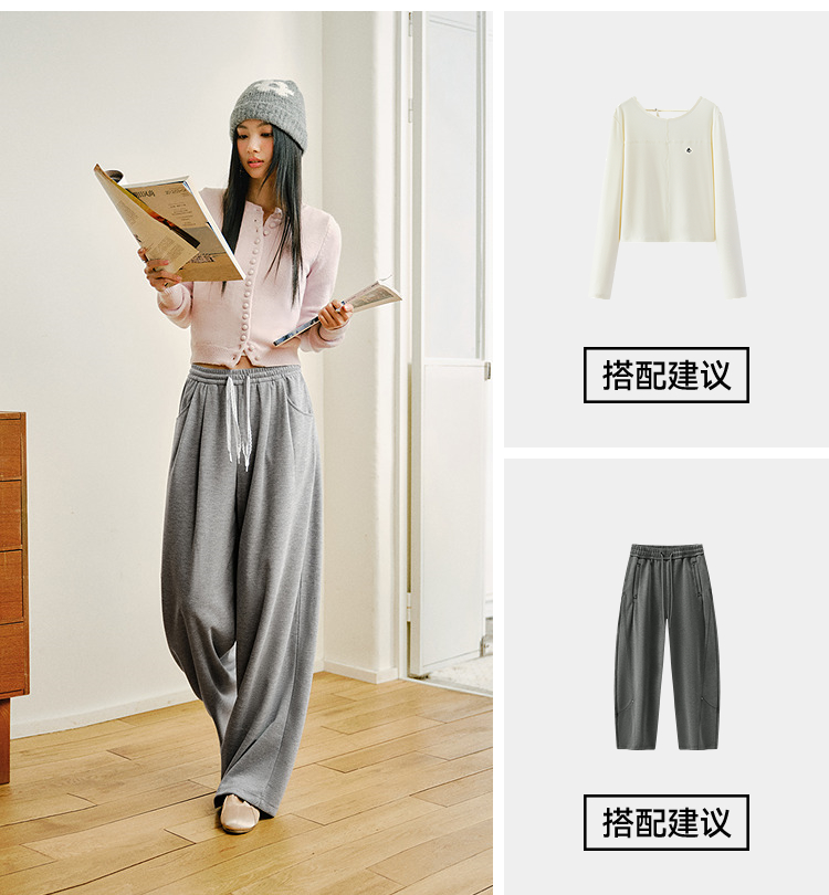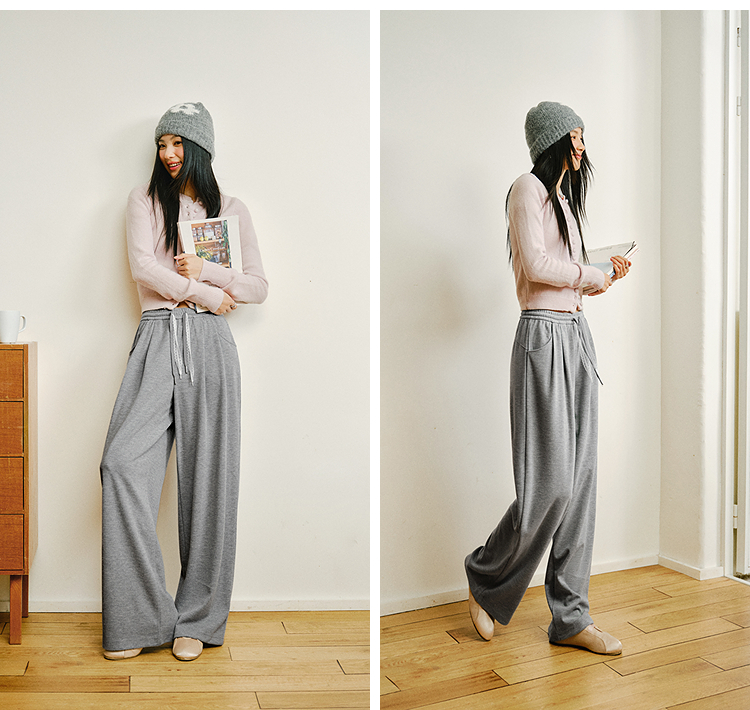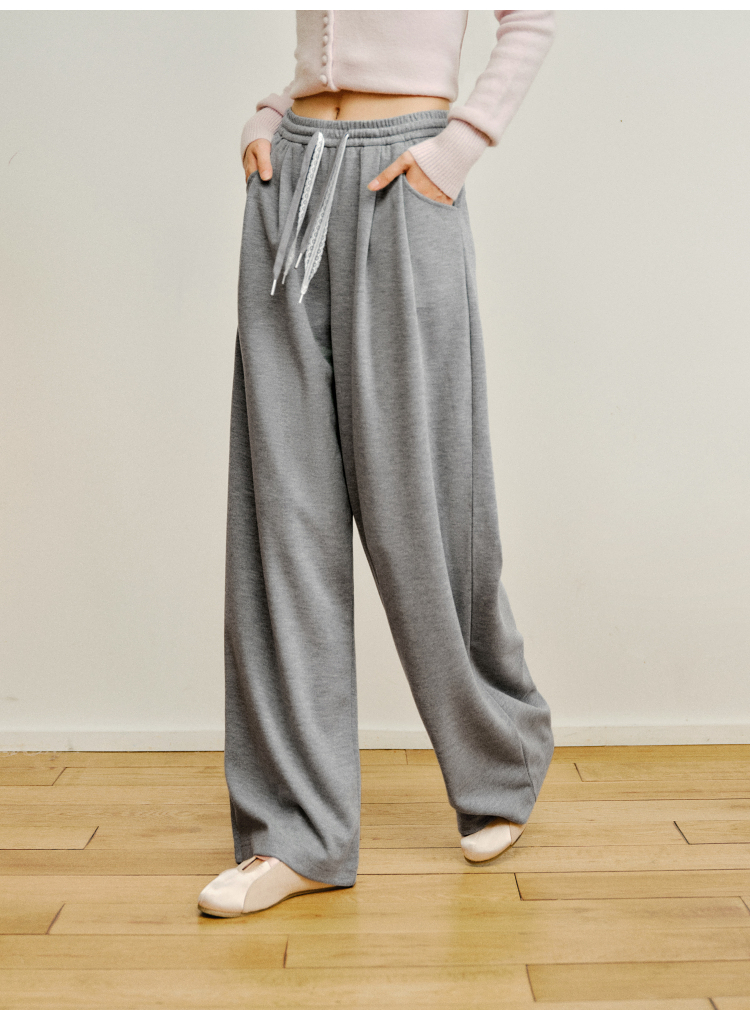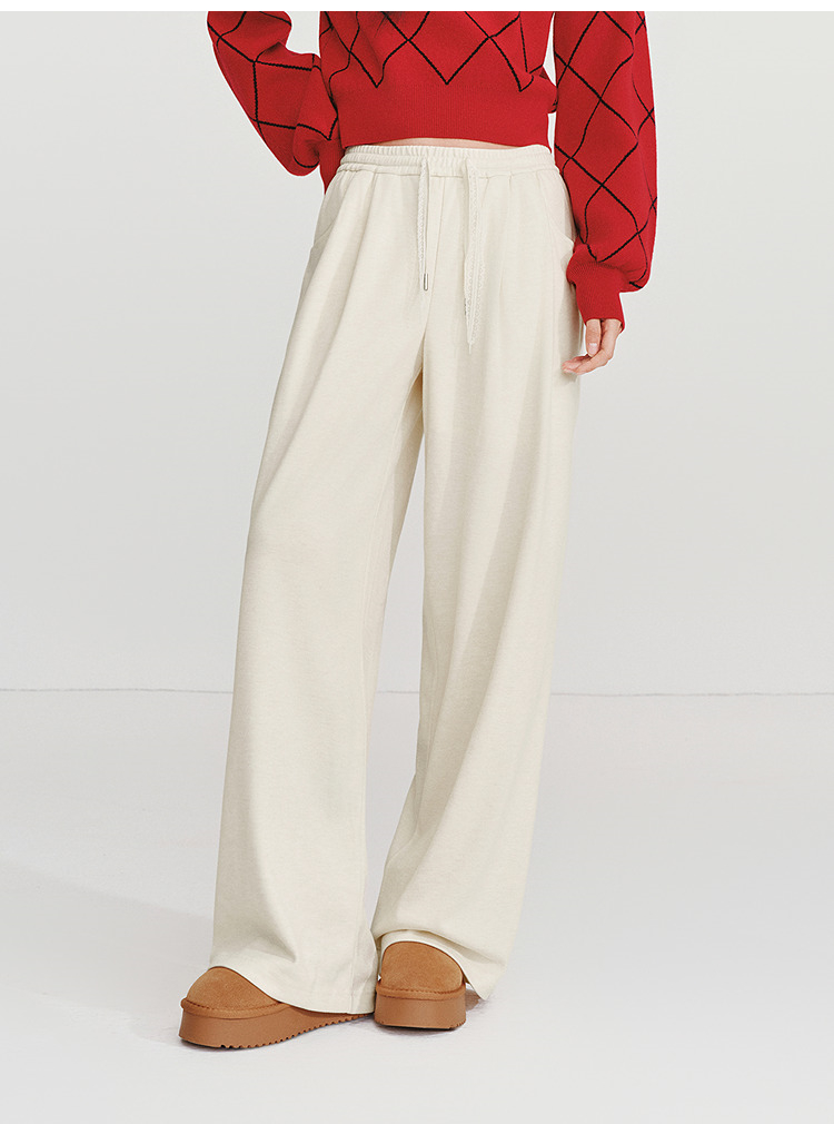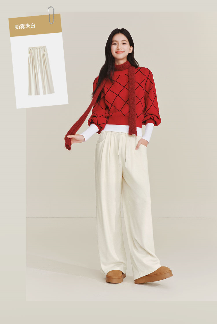 森马休闲裤女春季打褶松紧腰蕾丝糯米裤宽松垂坠感2026新款阔腿裤