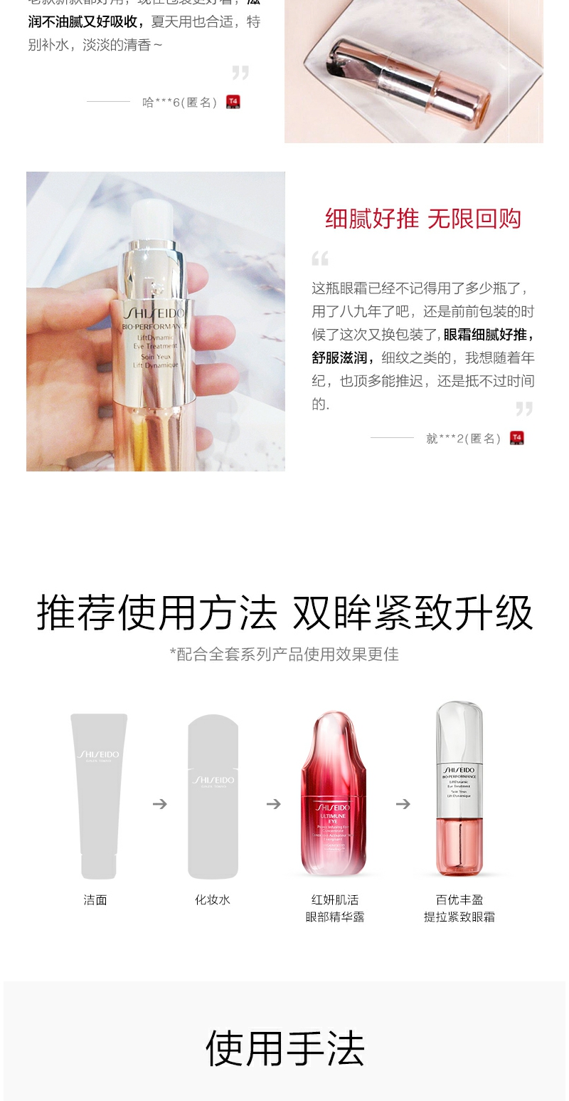 【YZ】资生堂眼霜百优丰盈提拉紧致眼霜15ml小钢炮淡化细纹