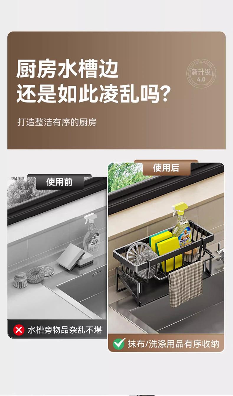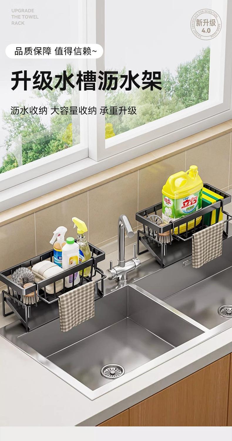 新款厨房置物架抹布架收纳沥水架水龙头水池洗碗海绵钢丝球架