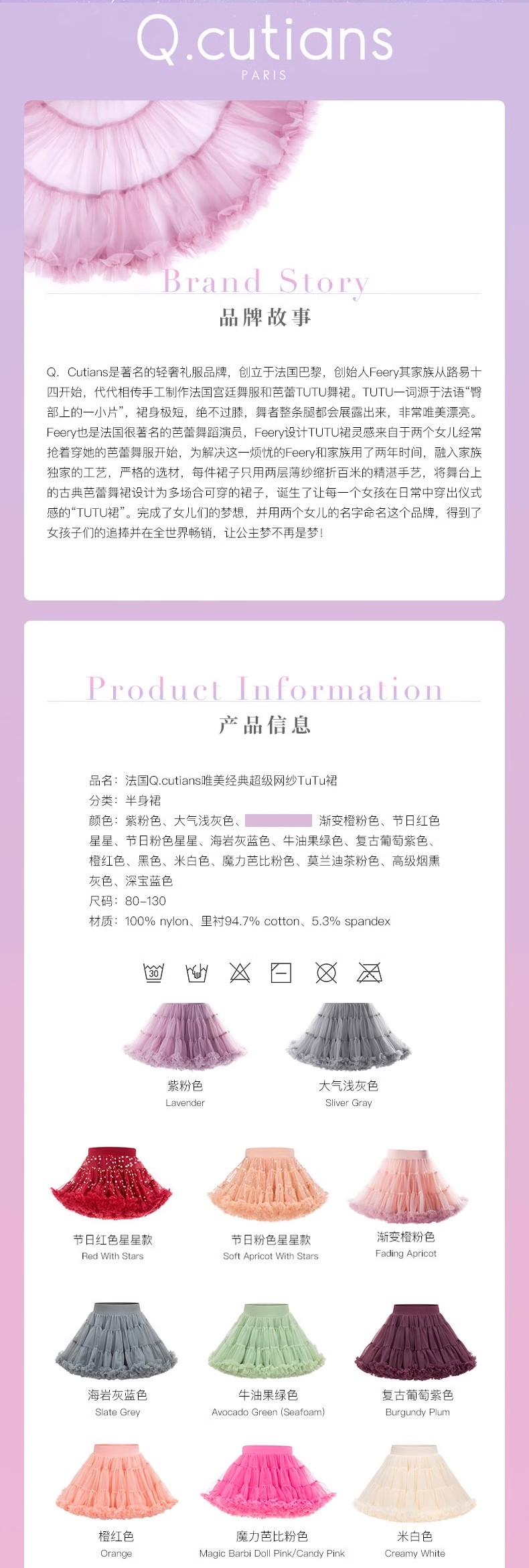 小公举裙子!Q.cutians法国TUTU裙蓬蓬半裙|品牌授权 送礼礼物