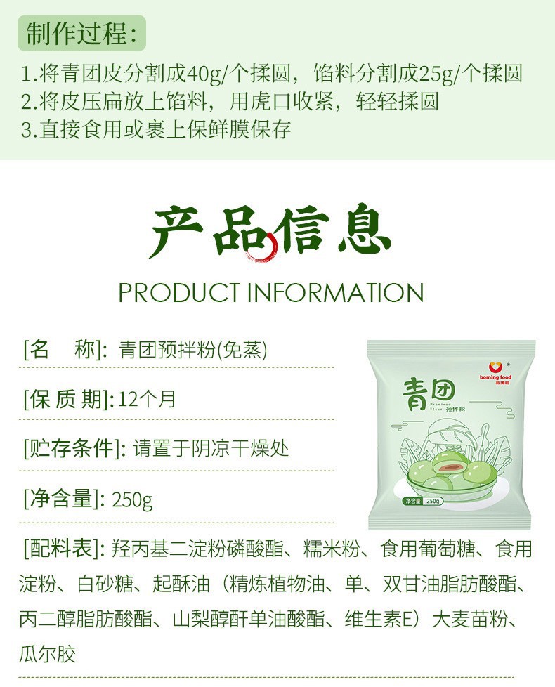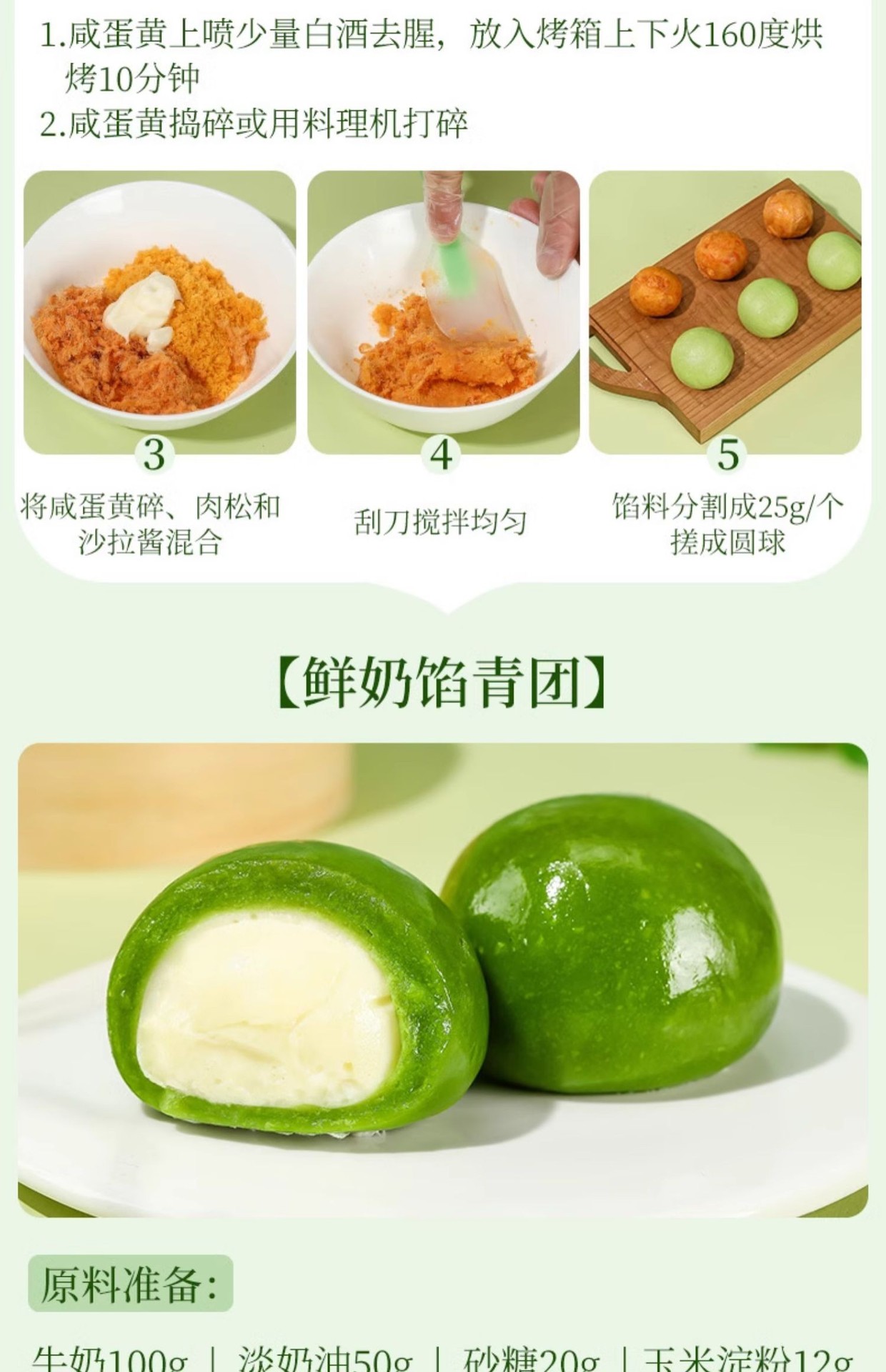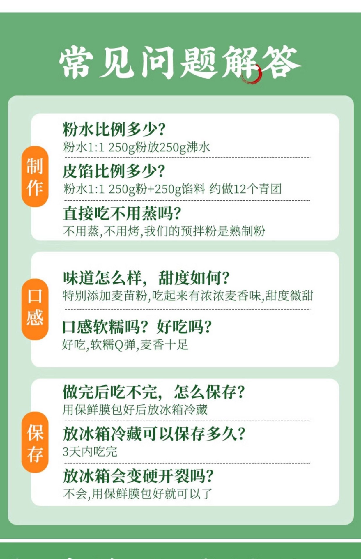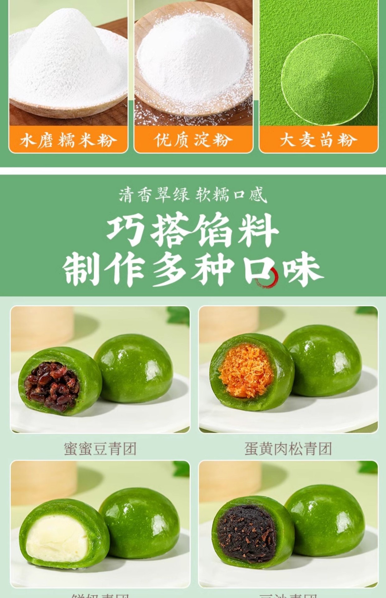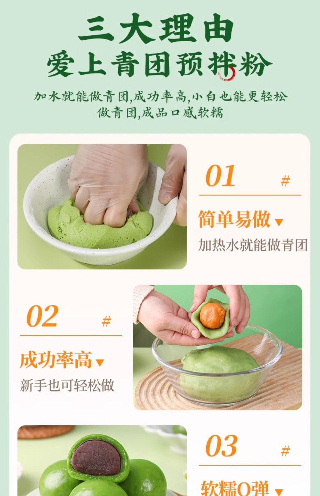 【传统时令美食,加热水就能做青团】家用免蒸青团预拌粉 自制清明果 专用食用艾草叶粉 diy青团制作材料-QQ