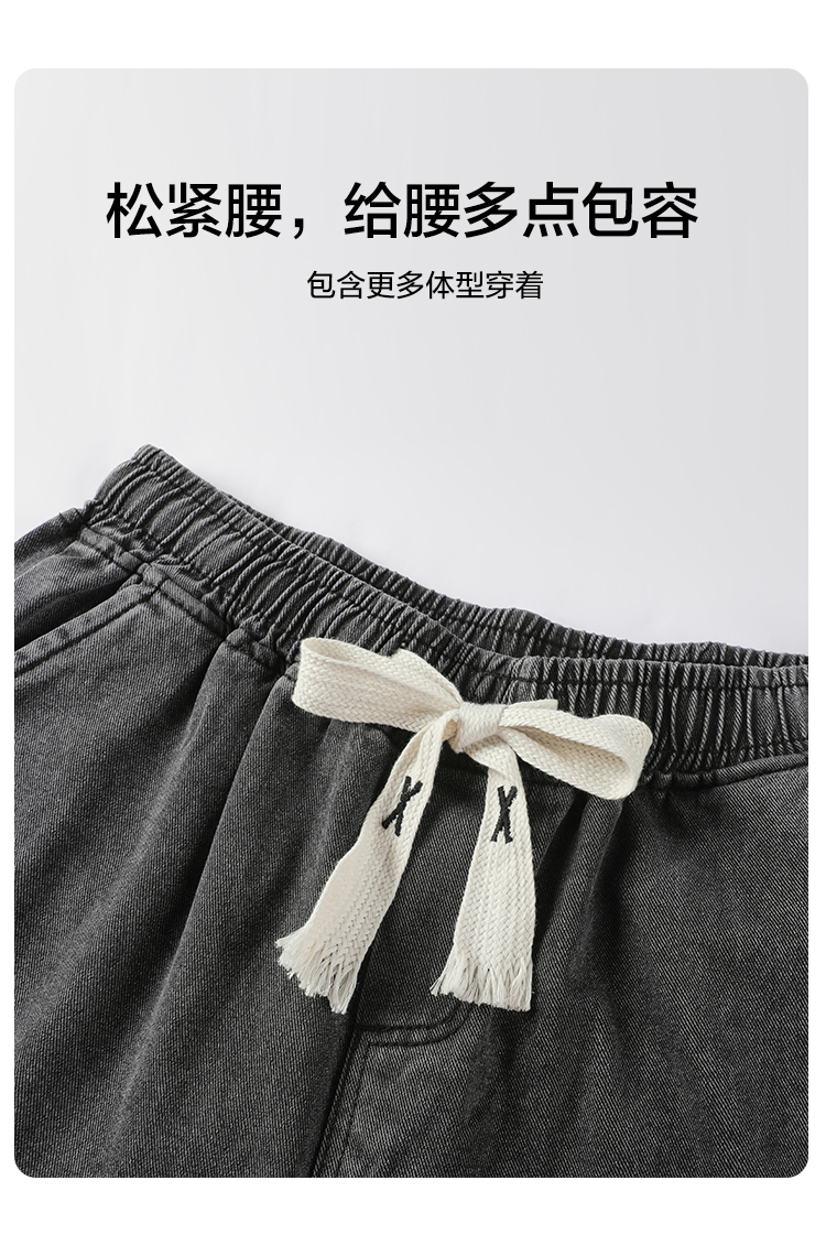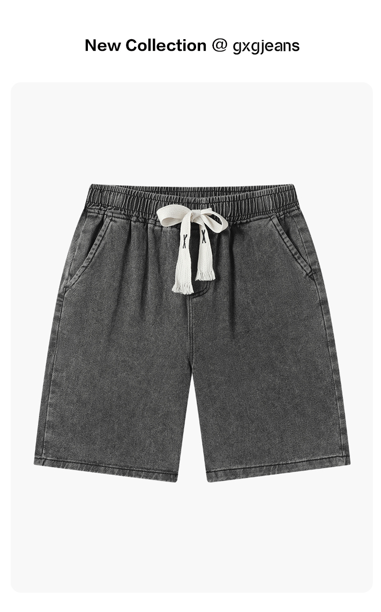 gxgjeans男装2026夏季休闲青年百搭水洗牛仔短裤松紧腰系绳简约男士直筒裤K&C