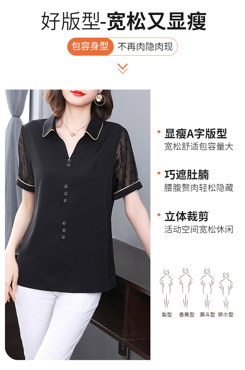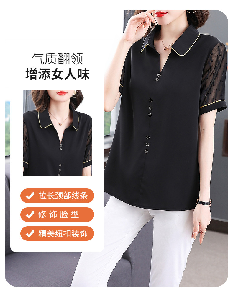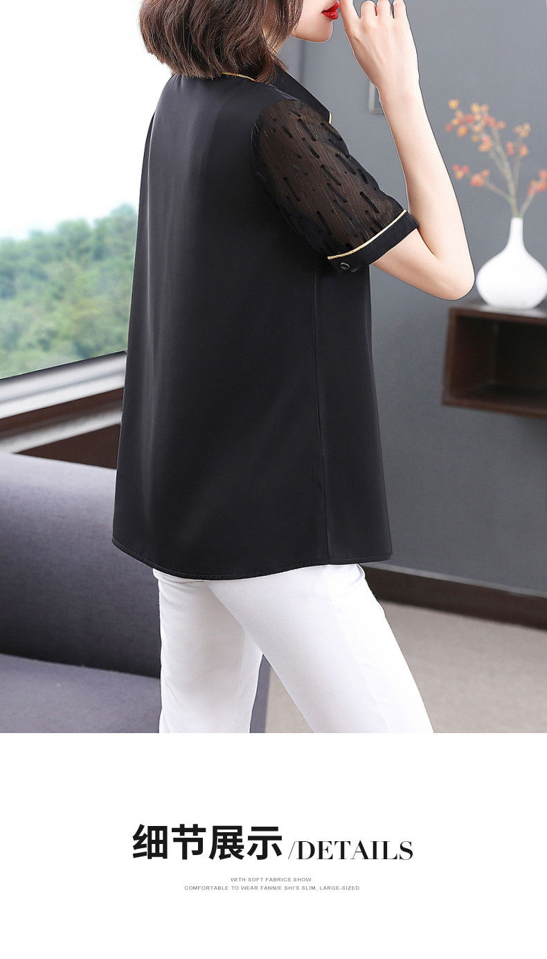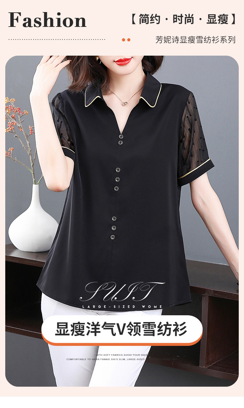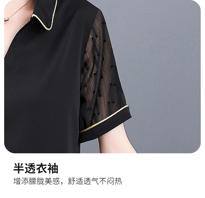 短袖衬衫女雪纺夏季薄款高端时尚洋气大码黑色上衣2026年新款夏装