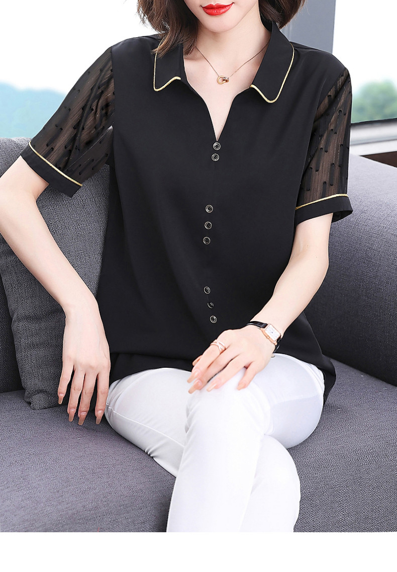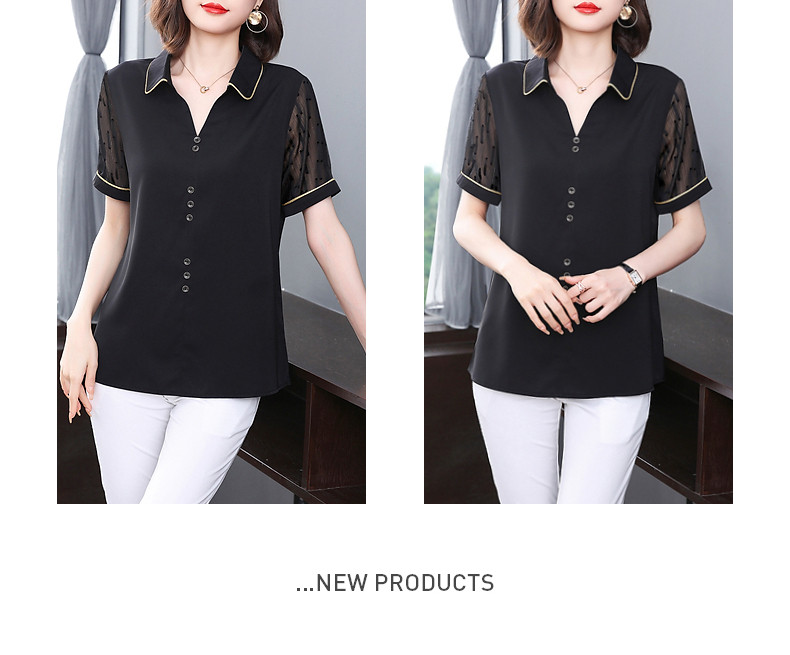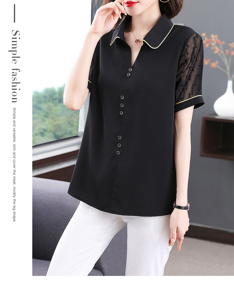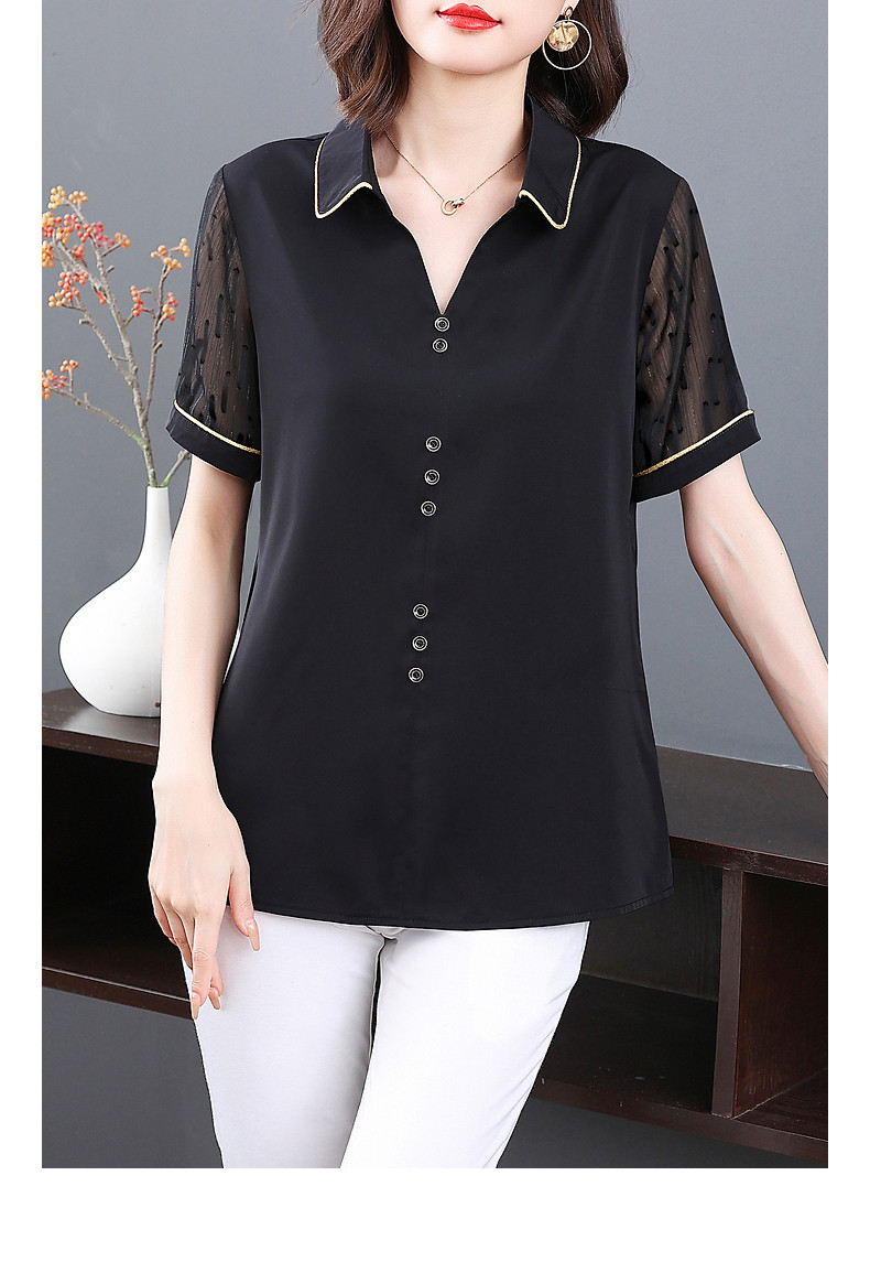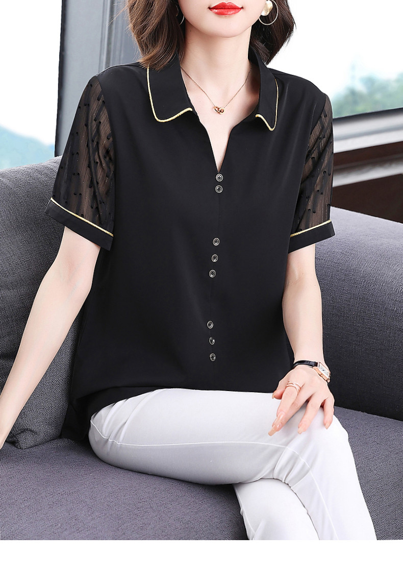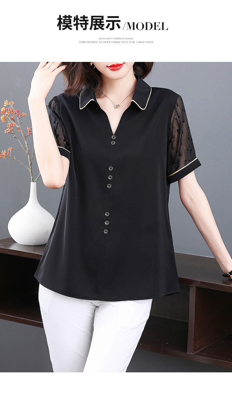 短袖衬衫女雪纺夏季薄款高端时尚洋气大码黑色上衣2026年新款夏装