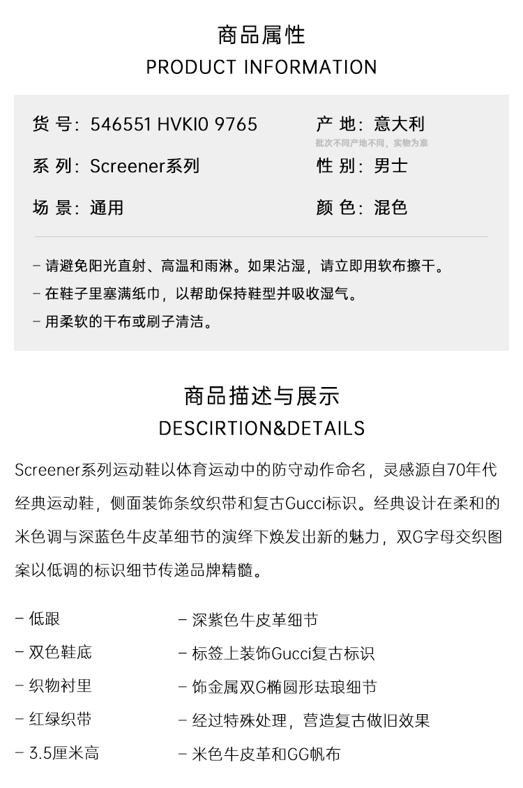 【一】GUCCI 古驰 男士 GG Supreme帆布休闲运动鞋 混色 546551 HVKI0 9765