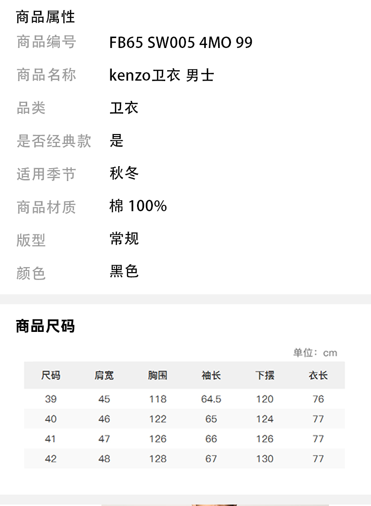 KENZO 高田贤三 新款胸前印花抽象虎刺绣 男士卫衣 黑色 FB65 SW005 4MO 99