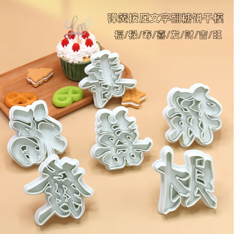 【文字系列】福/禄/寿/喜/吉/旺/发/财 弹簧按压饼干模翻糖模具 馒头印字模
