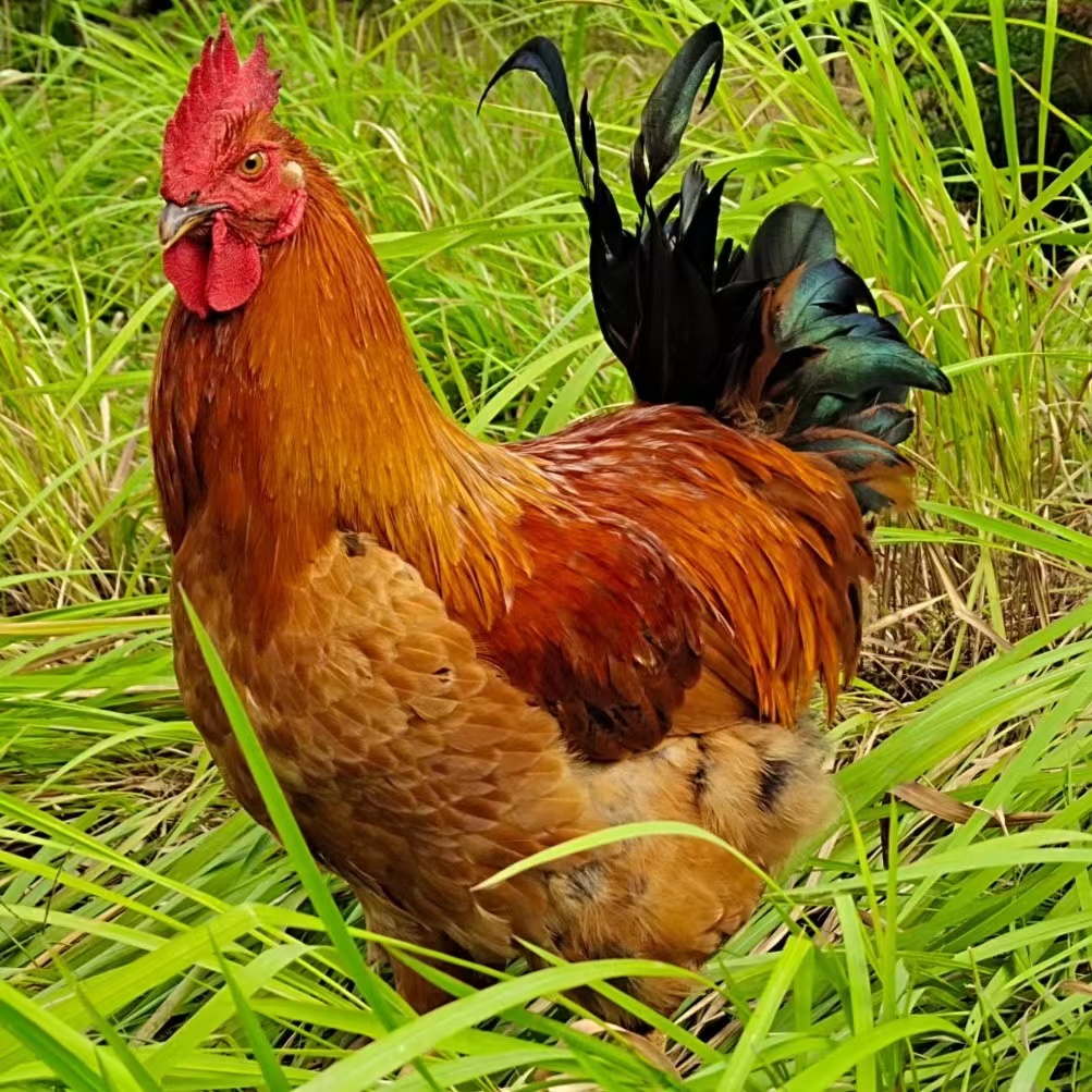 雄赳赳的公鸡,很富有攻击性,活动能力很强,往往把喂它的粮食很快消耗掉,所以肉质相对较柴较紧实、适合爆炒、红烧、干锅等。