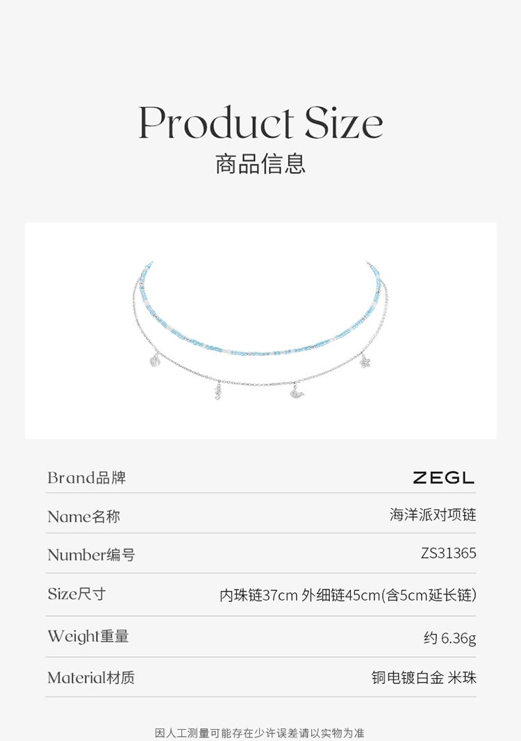 ZEGL设计师环岛日记系列双层叠戴串珠项链女2022年新款夏季锁骨链