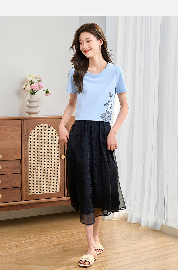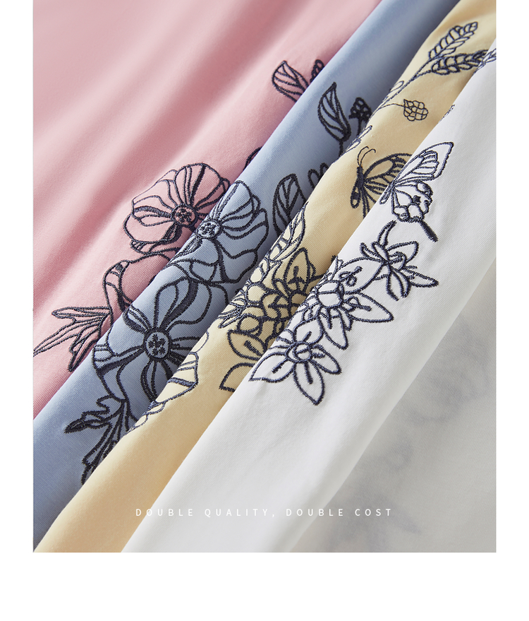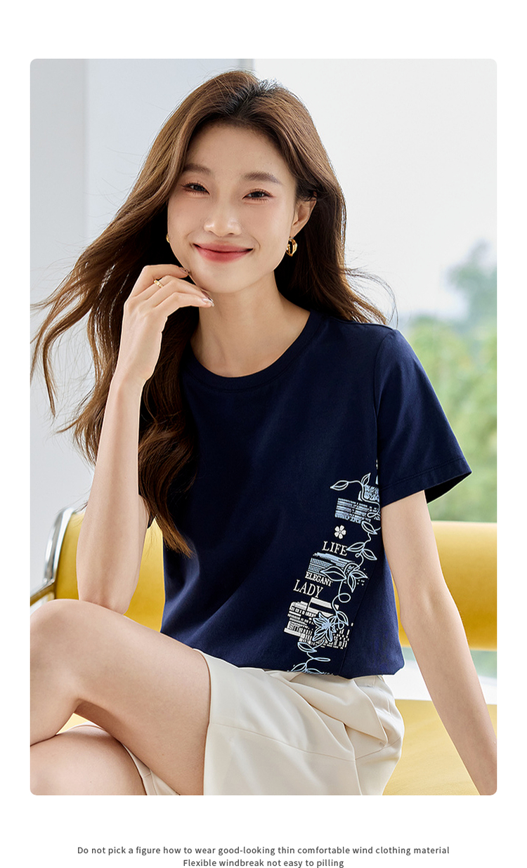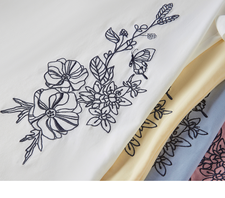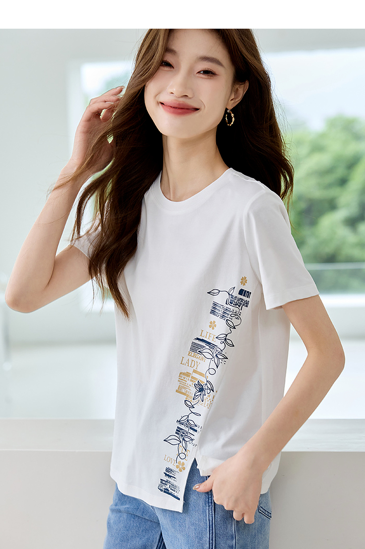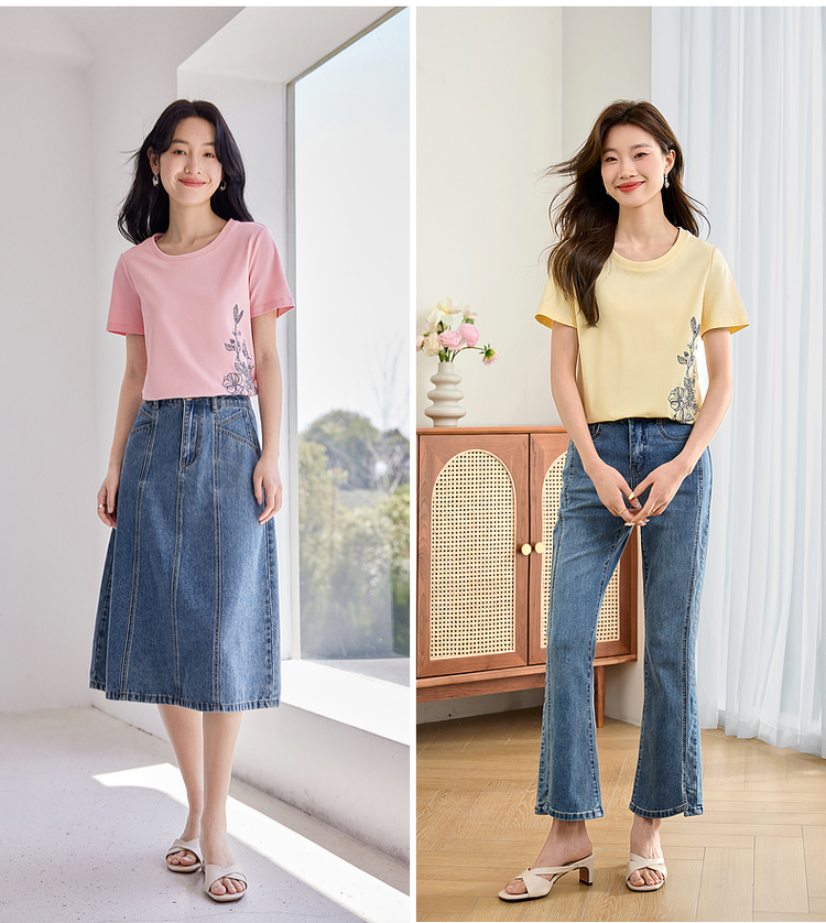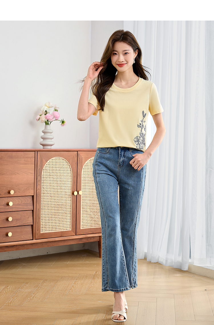 【专属特价】熙世界2025夏新款蝴蝶花卉绣花凉感T恤女短袖休闲独特圆领上衣