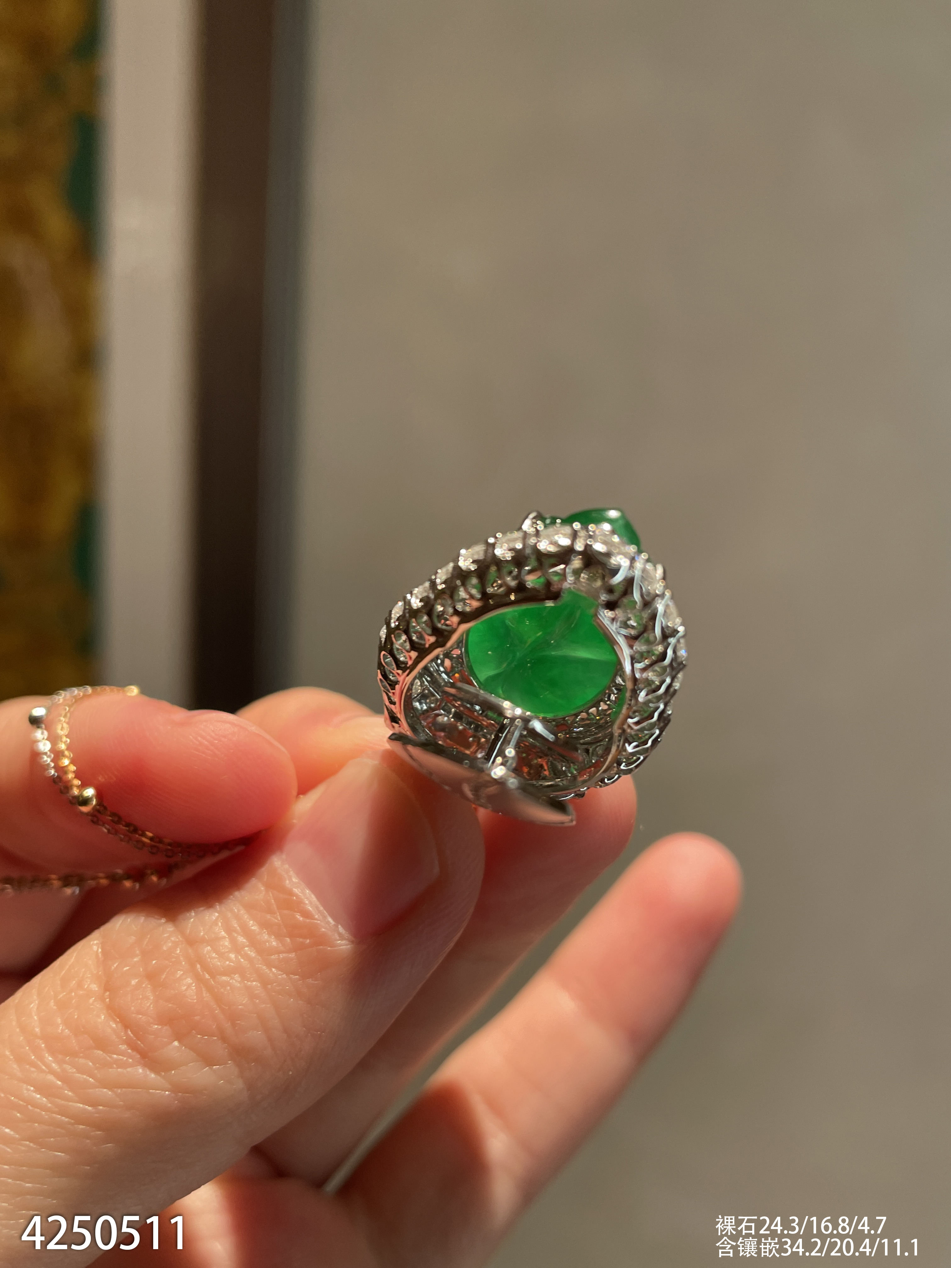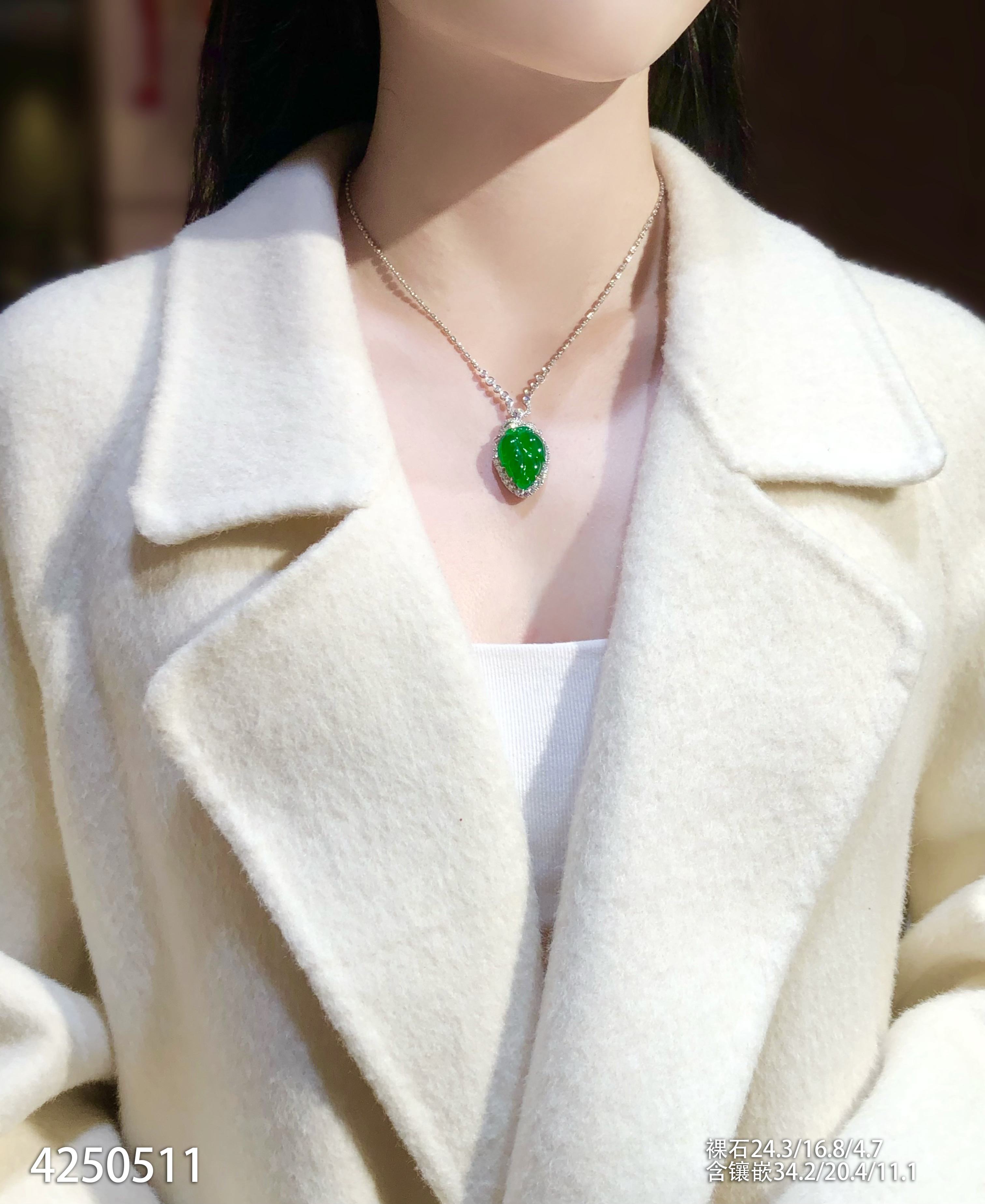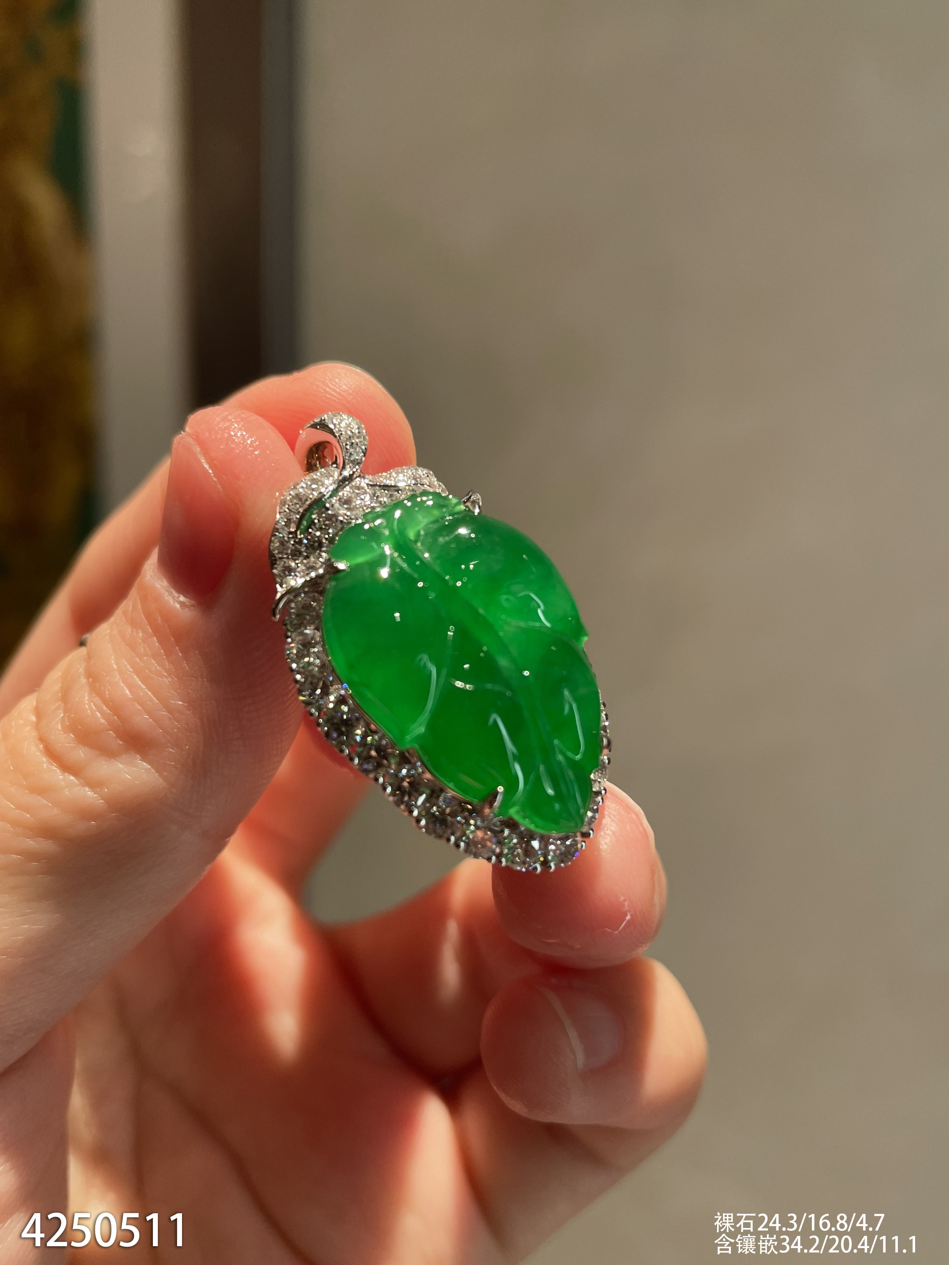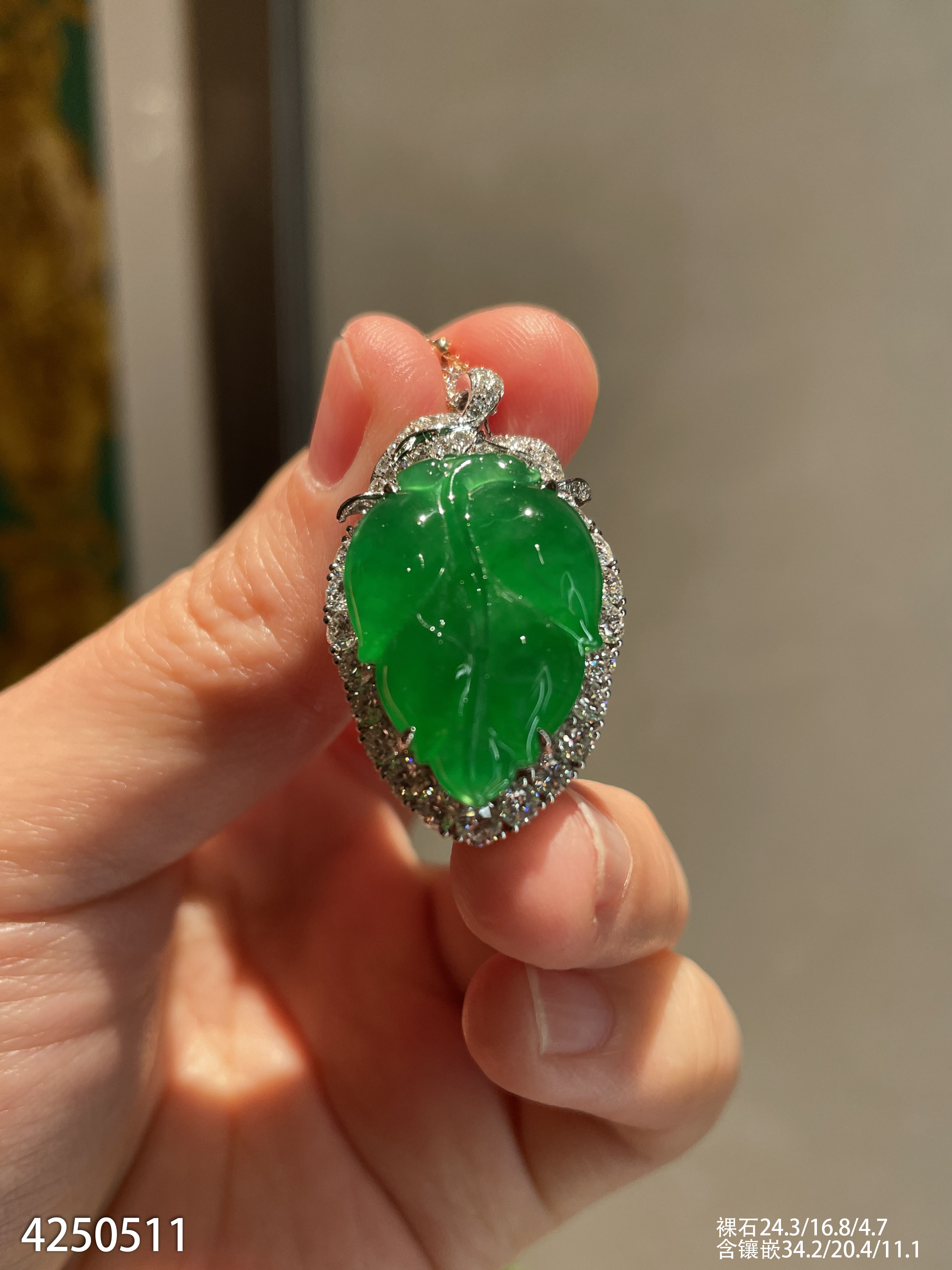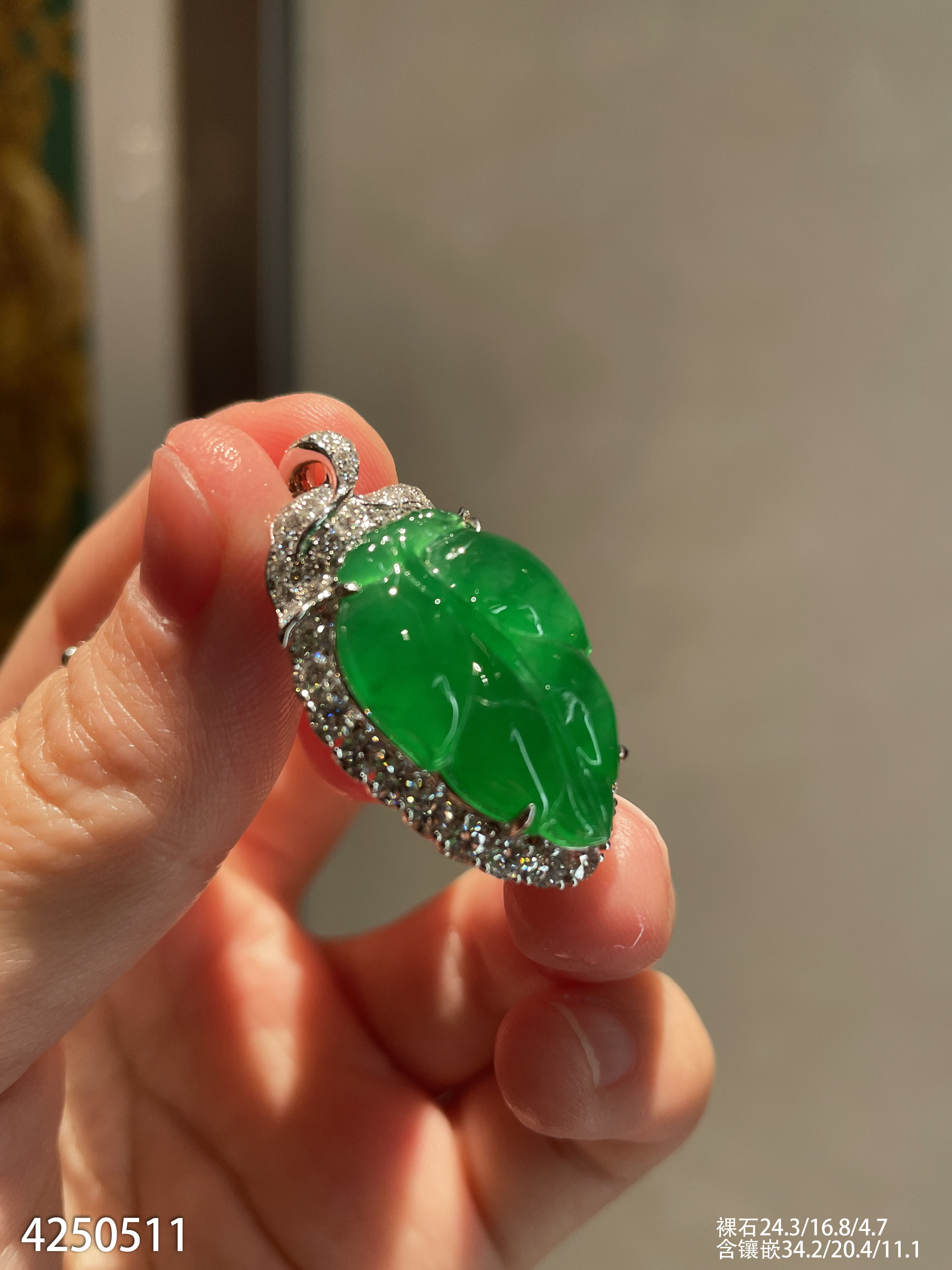 老坑艳绿叶子吊坠【4250511】具体价格微信咨询