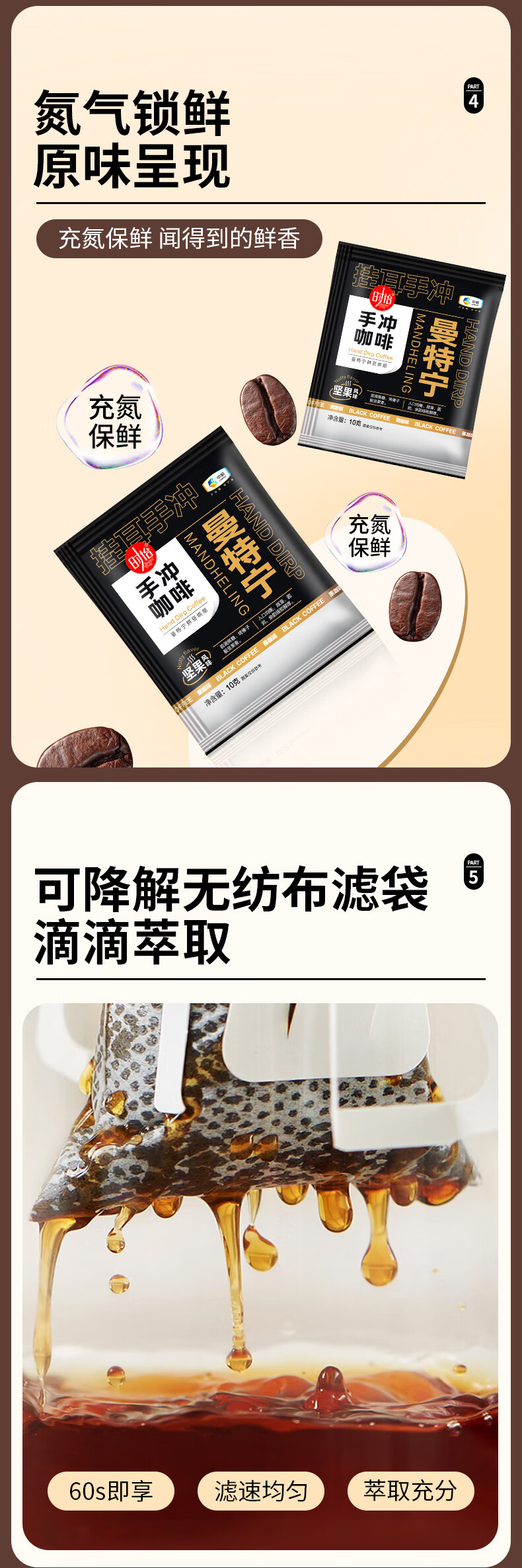 时怡(SMART TIME) 中粮手冲咖啡挂耳咖啡曼特定拼豆烘焙美式纯黑咖啡无蔗糖0添加 时怡手冲咖啡100g(10*10g))