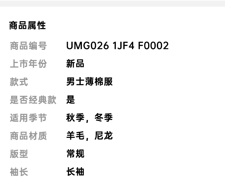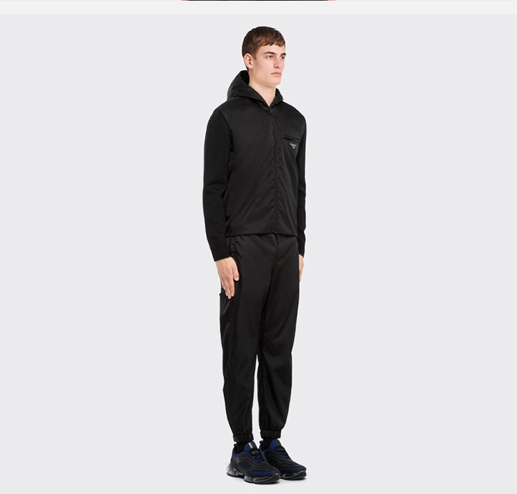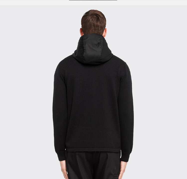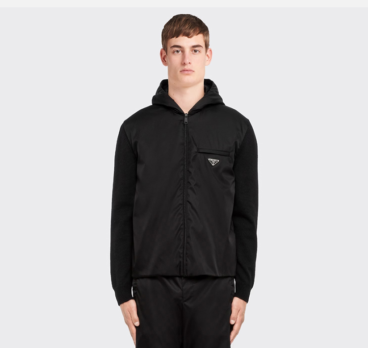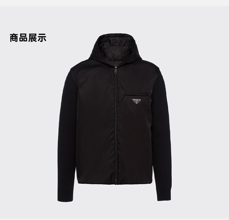 PRADA 普拉达 男士羊毛和Re-Nylon再生尼龙华达呢连帽薄款棉服 黑色 UMG026 1JF4 F0002