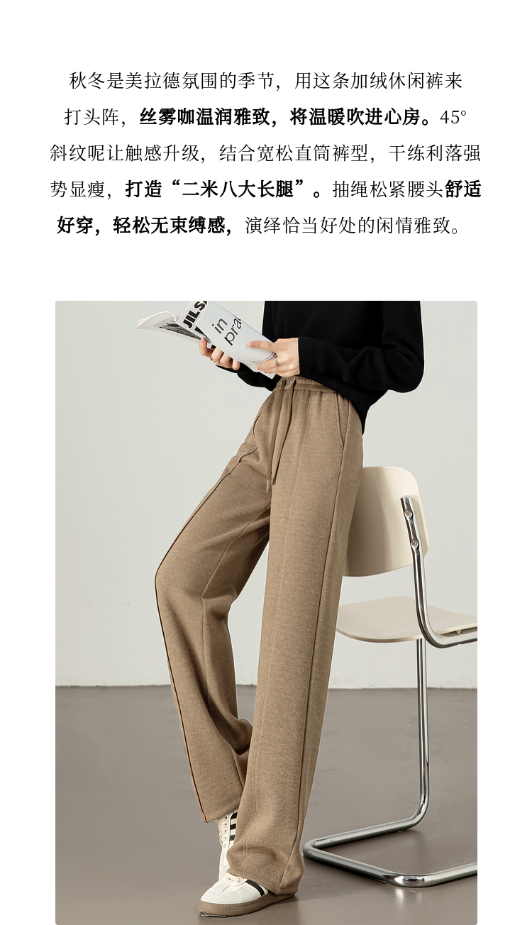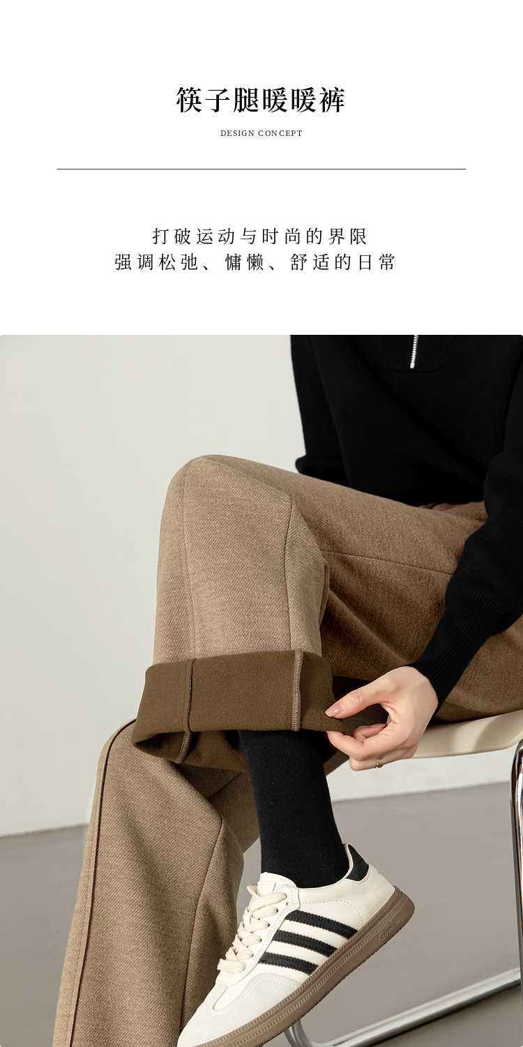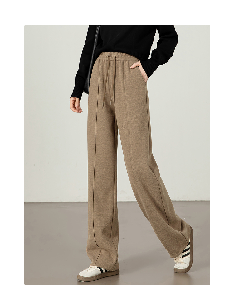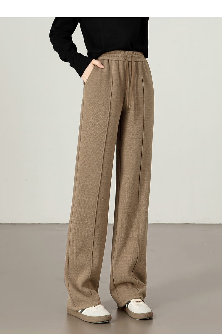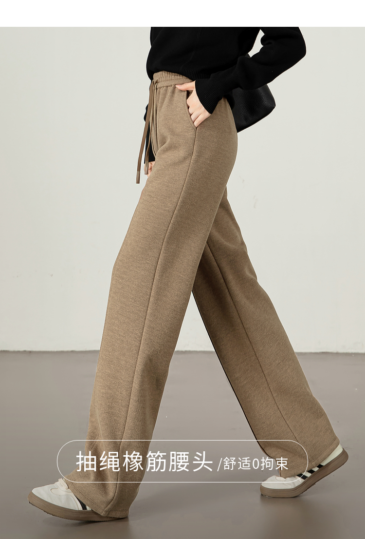 【年终特卖】熙世界毛呢加绒裤子女宽松直筒2025冬季新款加厚休闲窄版阔腿长裤
