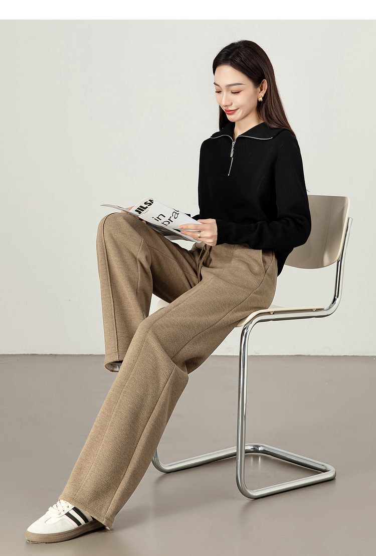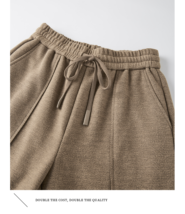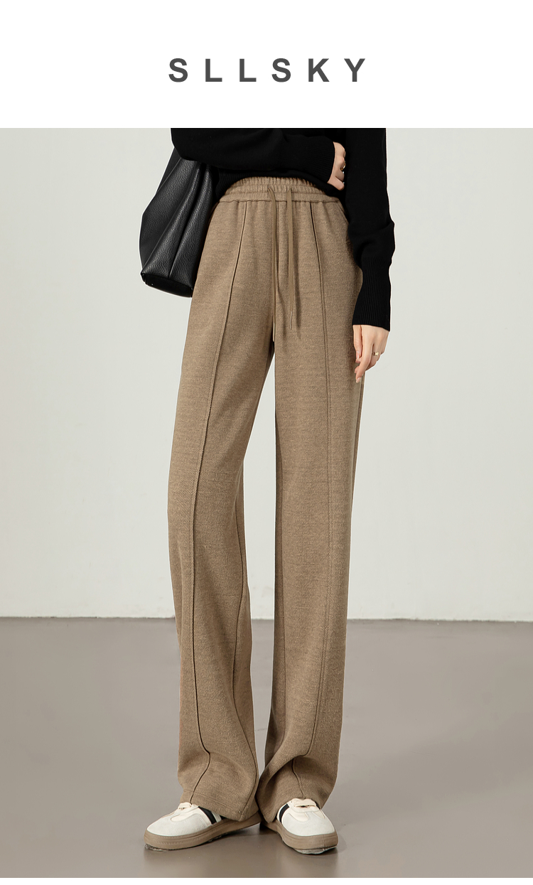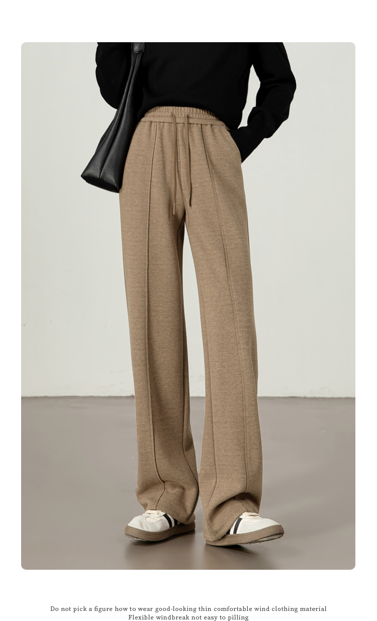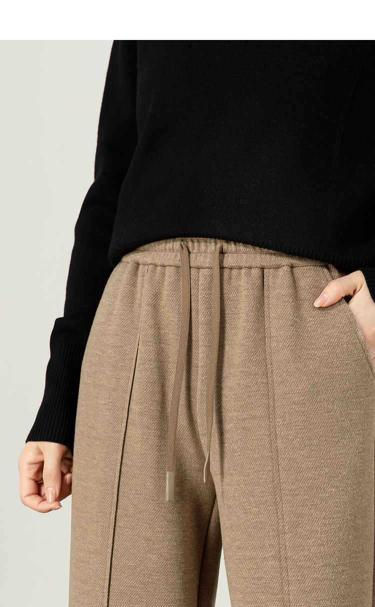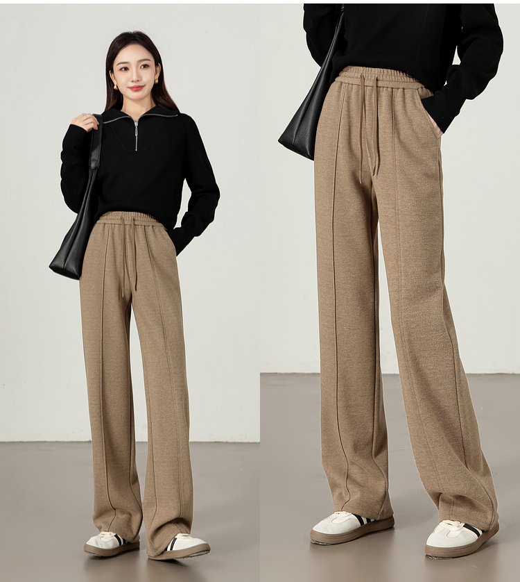 【年终特卖】熙世界毛呢加绒裤子女宽松直筒2025冬季新款加厚休闲窄版阔腿长裤