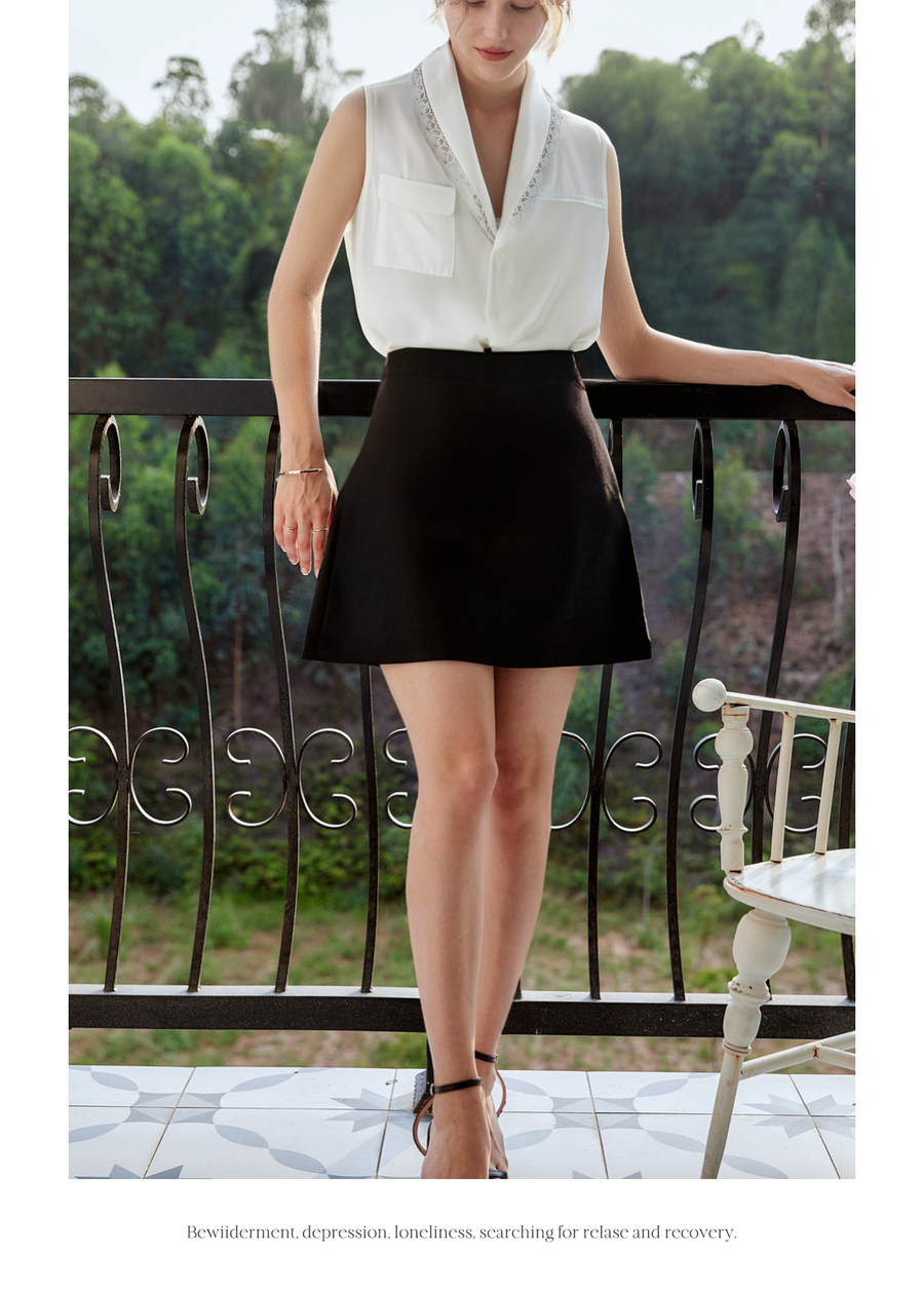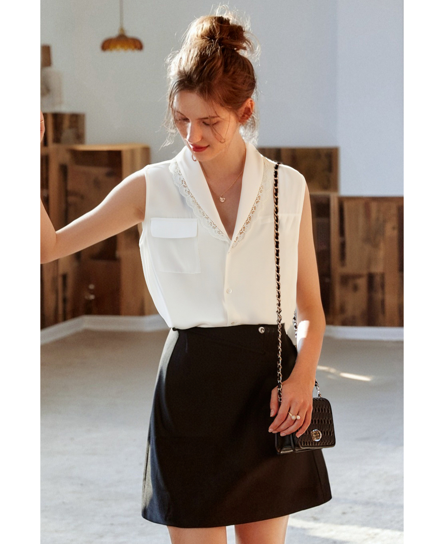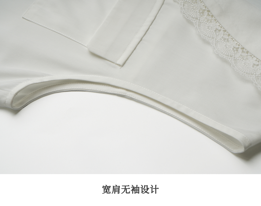 OLrain欧芮儿法式米白色蕾丝拼接无袖衬衫女夏季2025新款通勤上衣