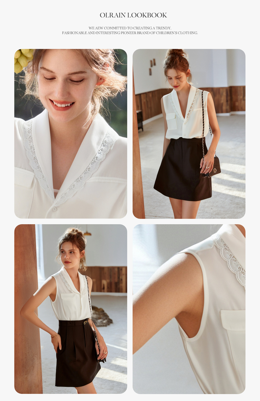 - “精致”是欧芮儿olrain品牌文化的核心,欧芮儿认为,精致的女人,不但要外在动人,更要内在迷人,内外兼修,有魅力、有气质、有内涵,自信而不自傲,优雅而不矫揉,自有万种风情而不轻浮,更不故作矜持。