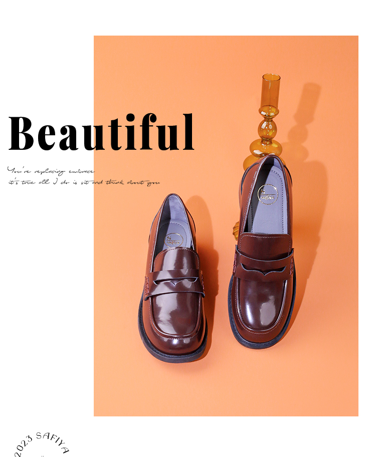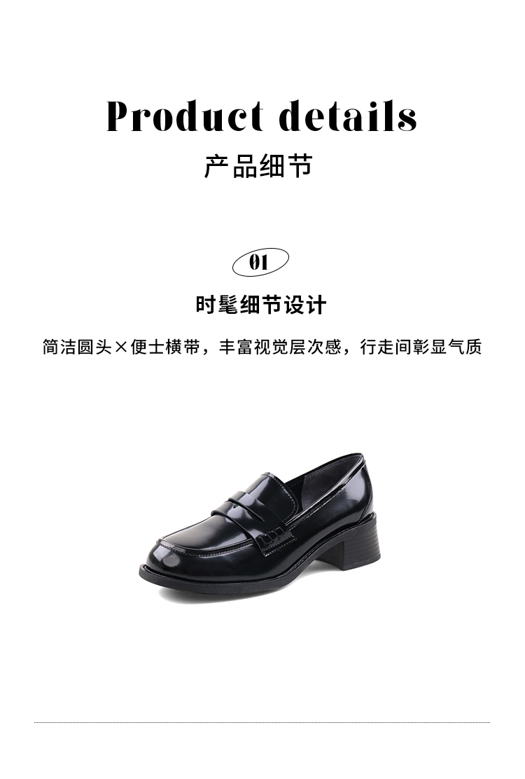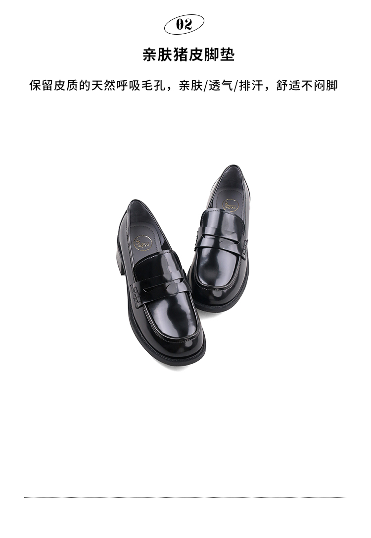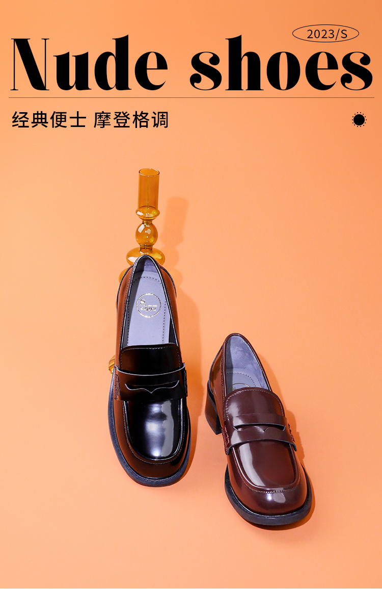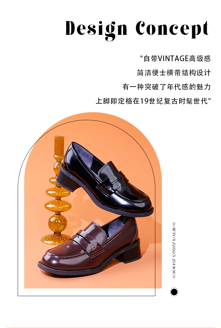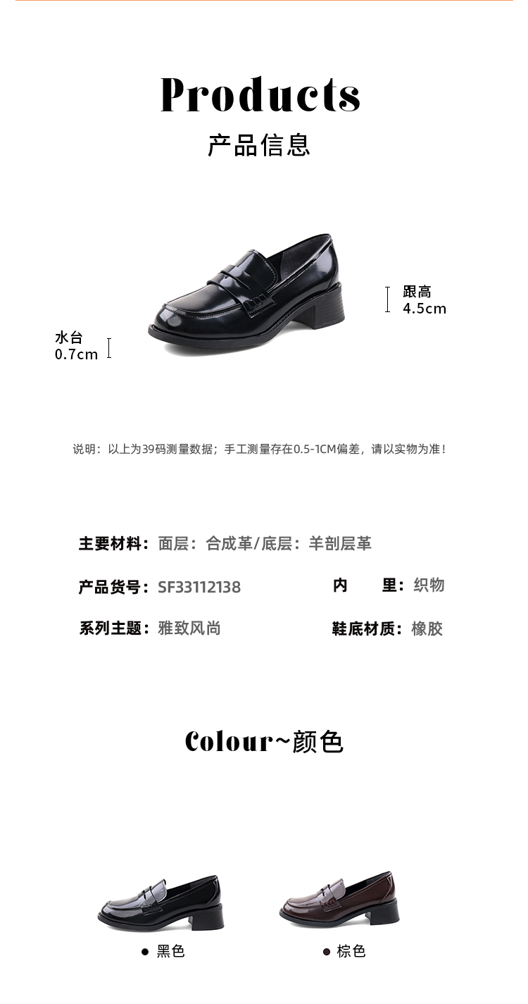 Safiya/索菲娅2023秋季新品英伦圆头粗跟百搭一脚蹬软底乐福鞋SF33112138