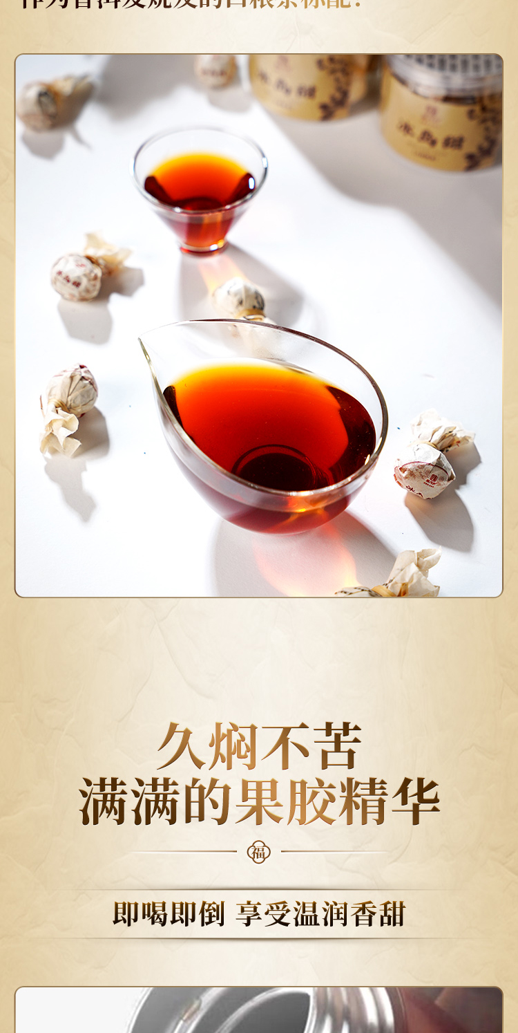 焖着喝的3g小龙珠,2017年【冰岛甜】云南临沧冰岛普洱茶熟茶龙珠10粒品鉴装,有同款茶饼