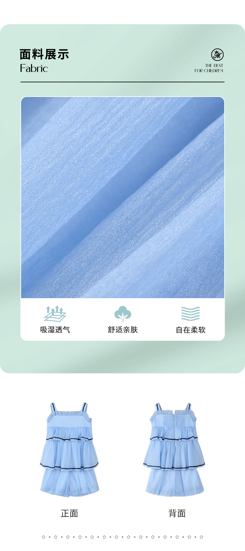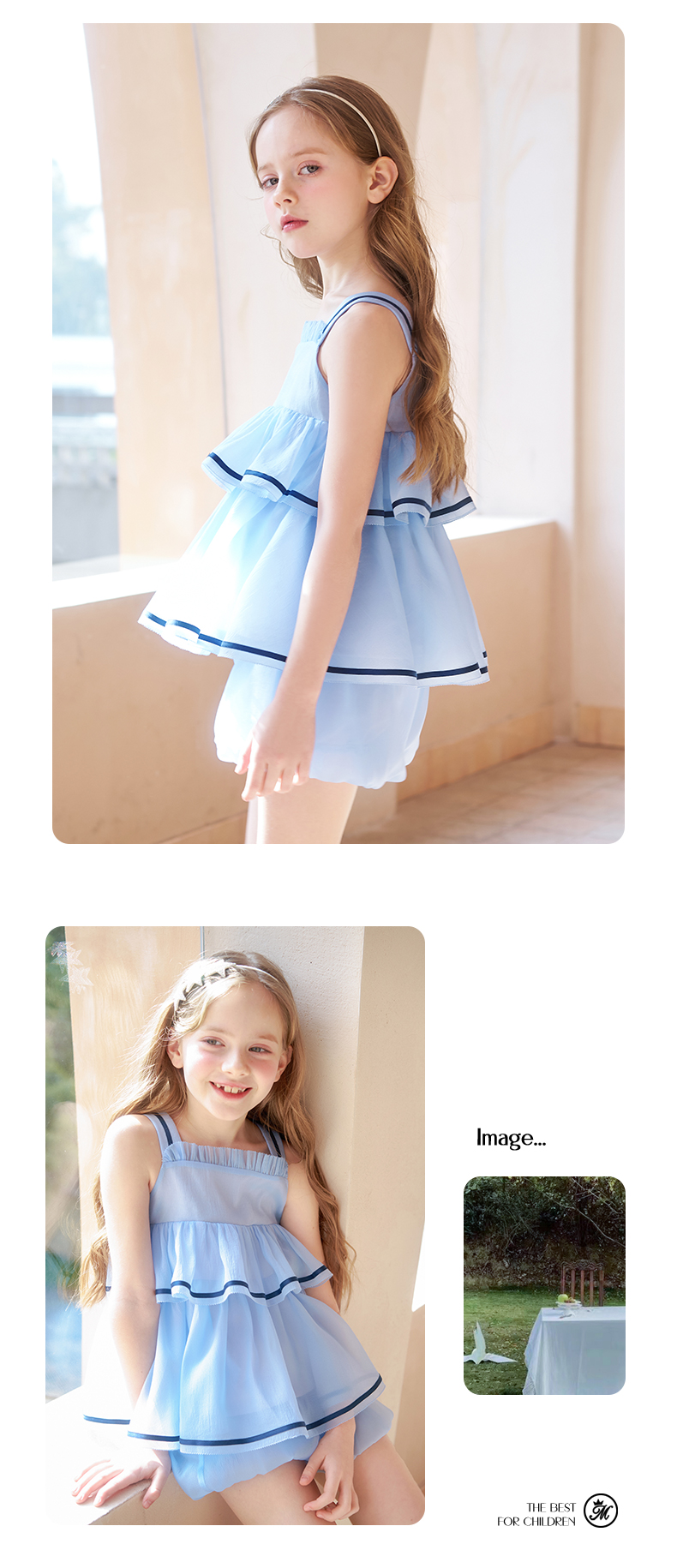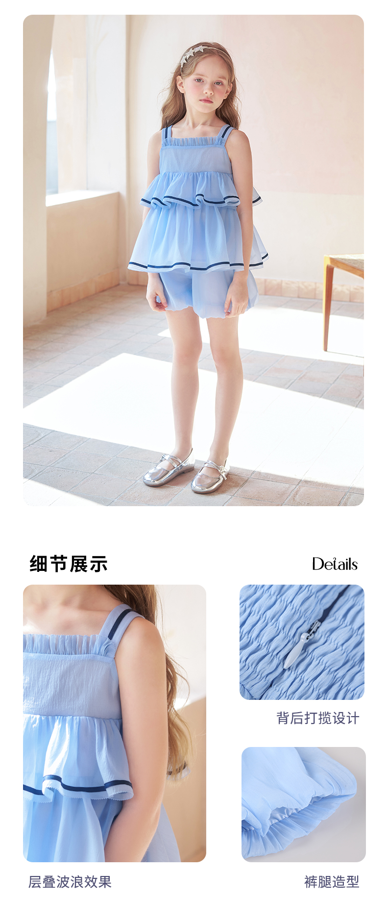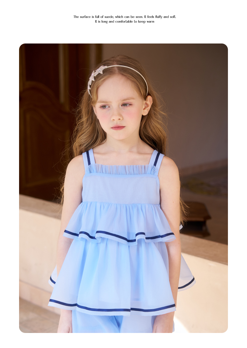 mettekids女童吊带背心套装夏季儿童蓝色短裤中大童洋气南瓜裤