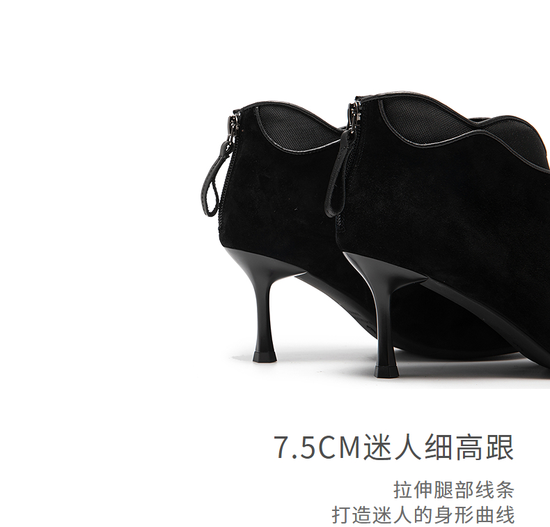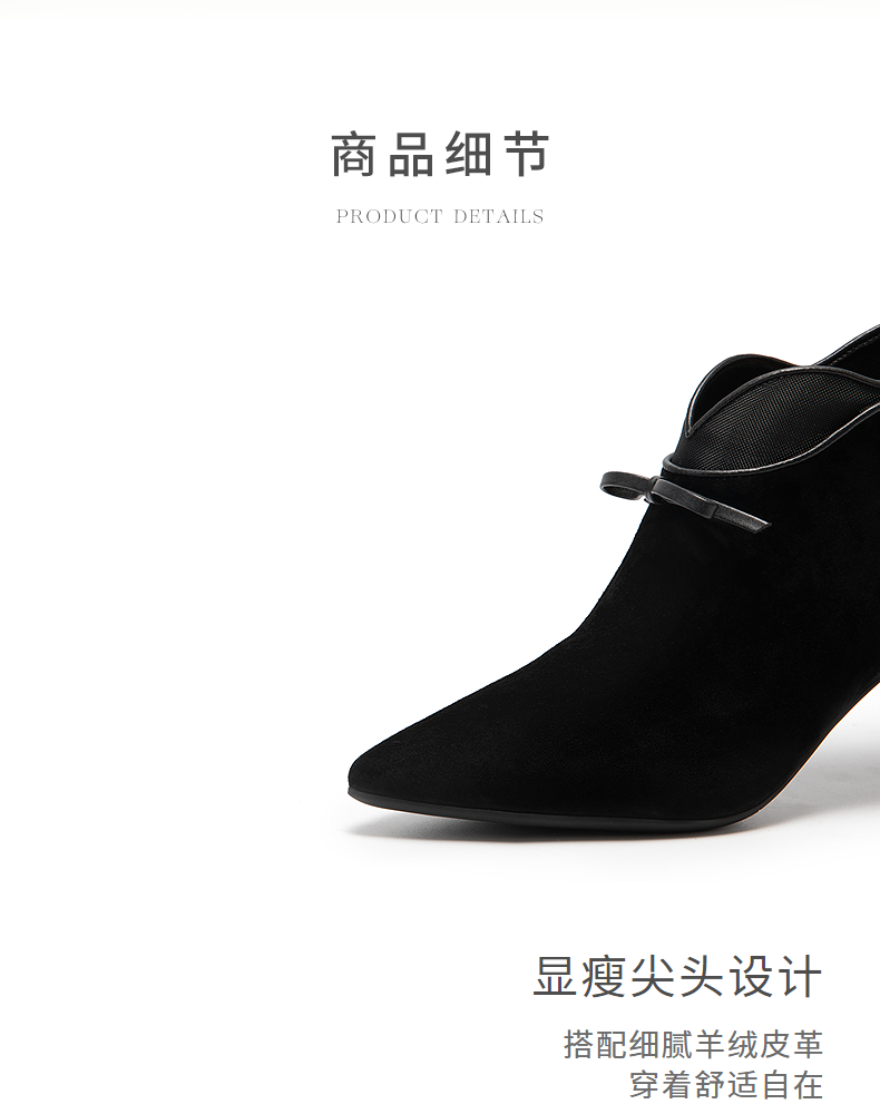natursun尖头高跟短靴女时装靴子细跟法式气质瘦瘦靴N25550106