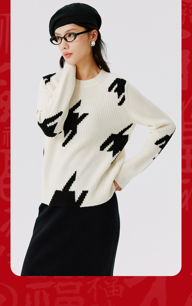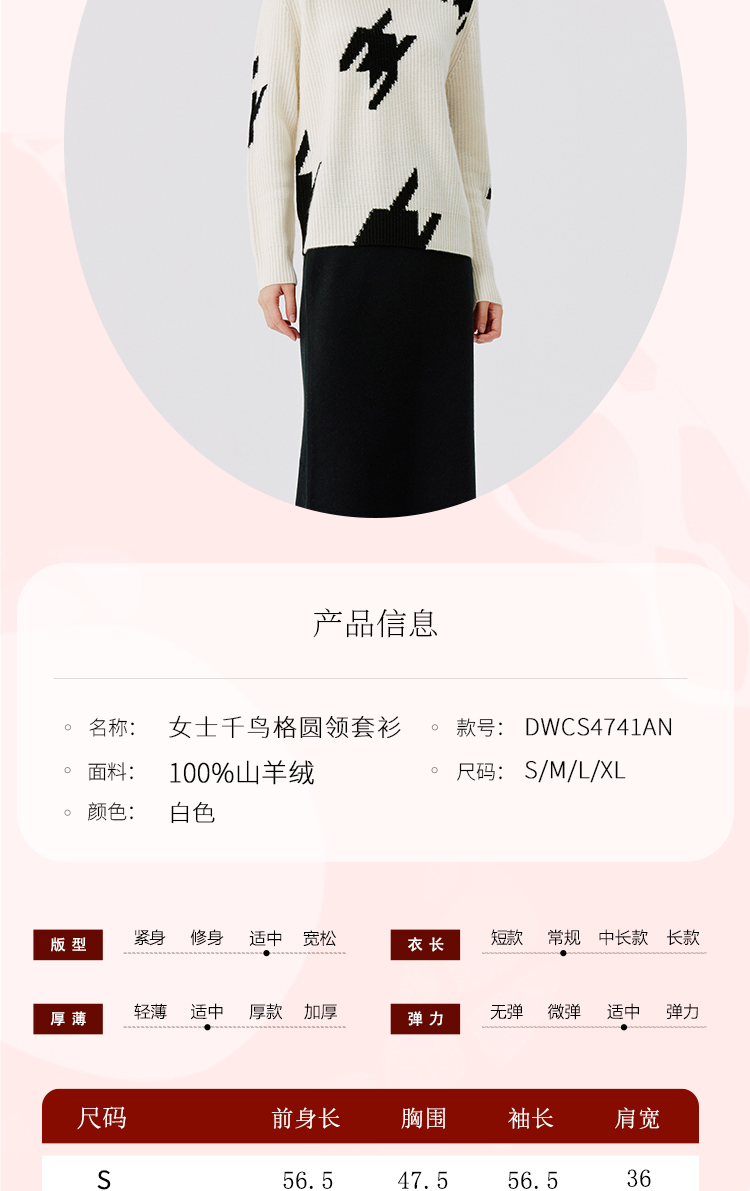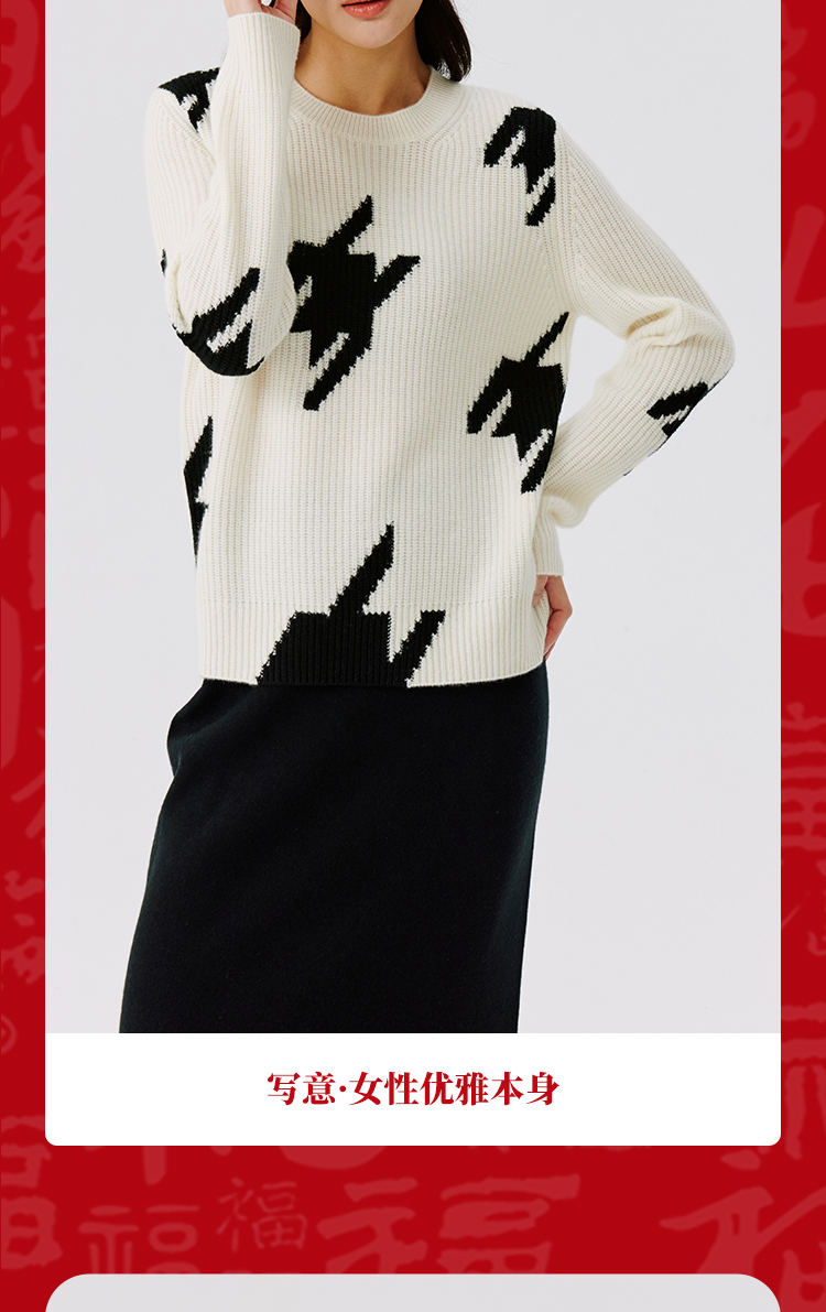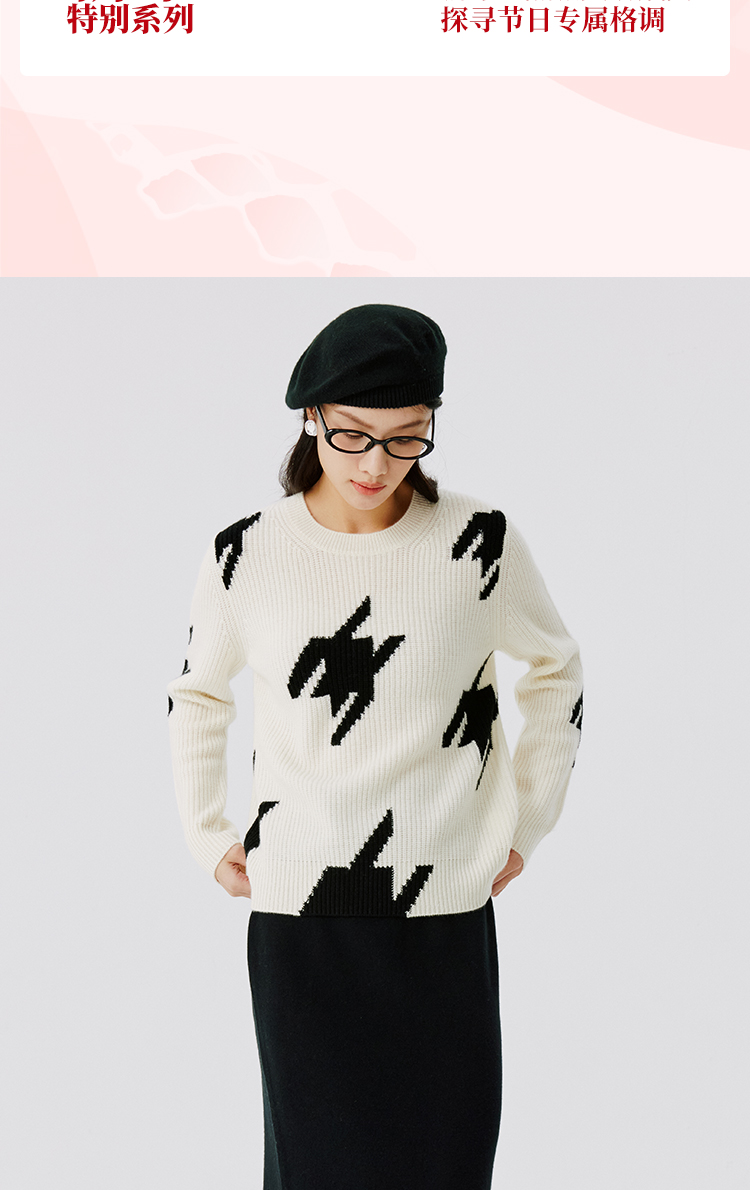东黎 • 山羊绒女士秋冬千鸟格圆领套衫 4741