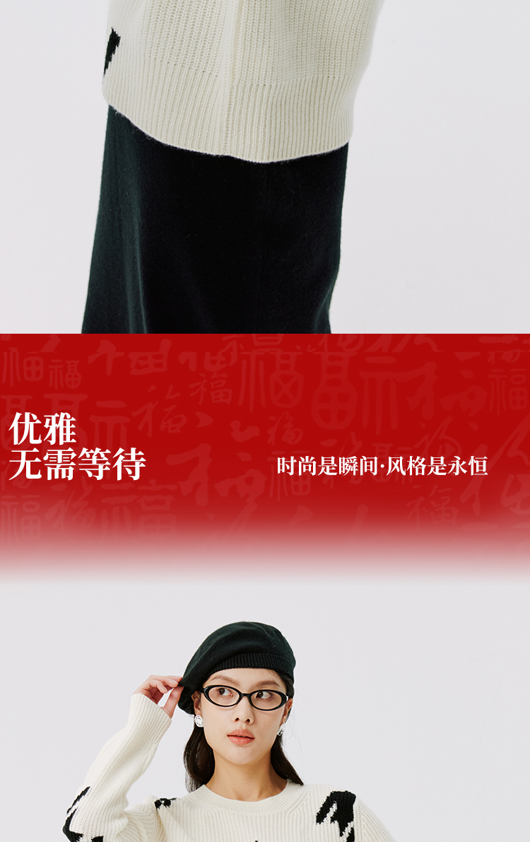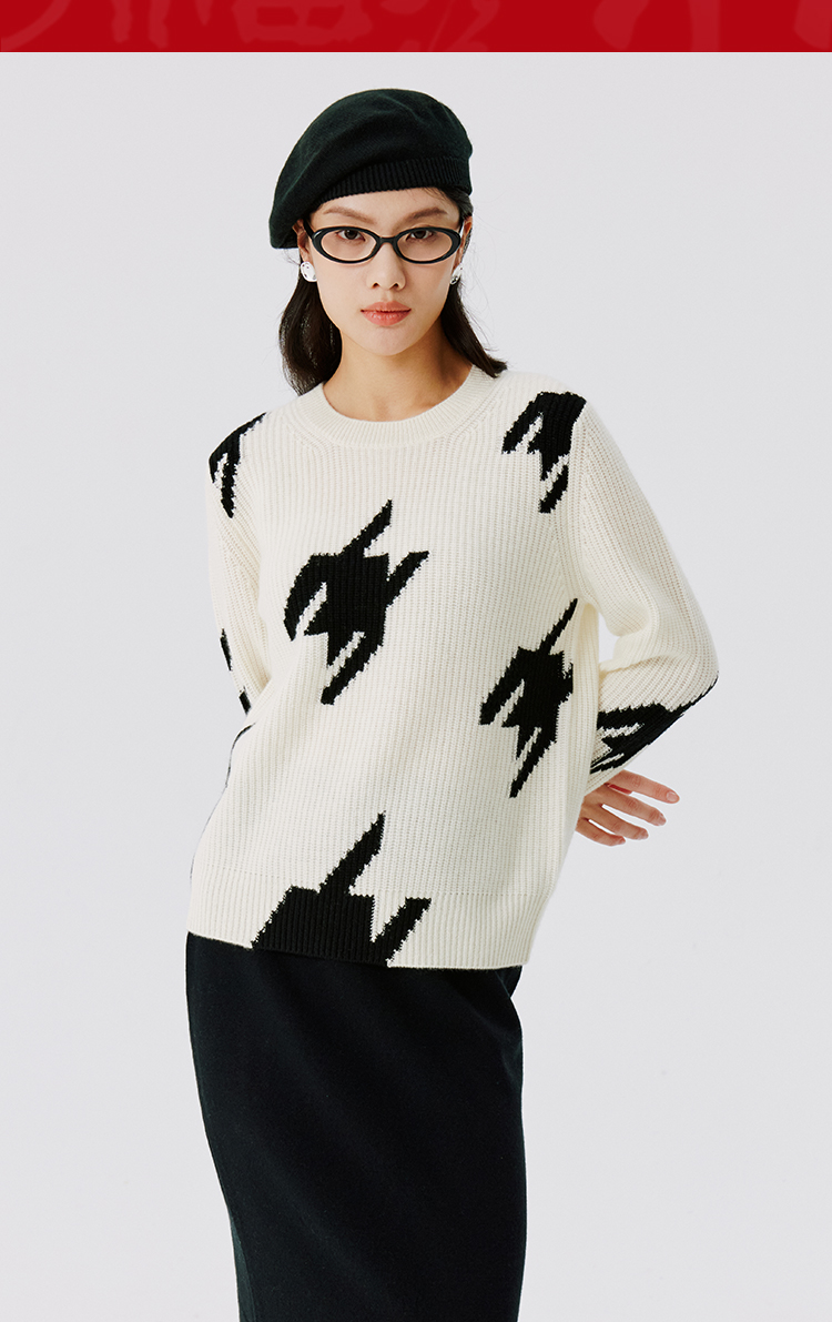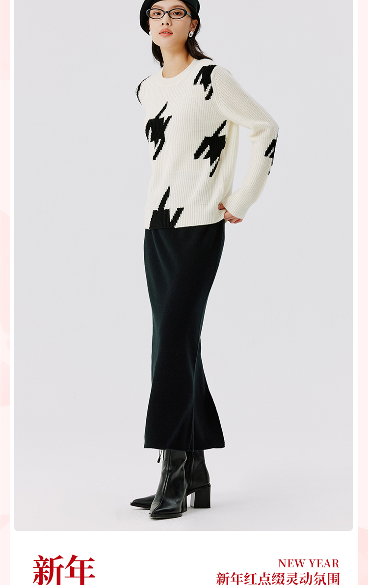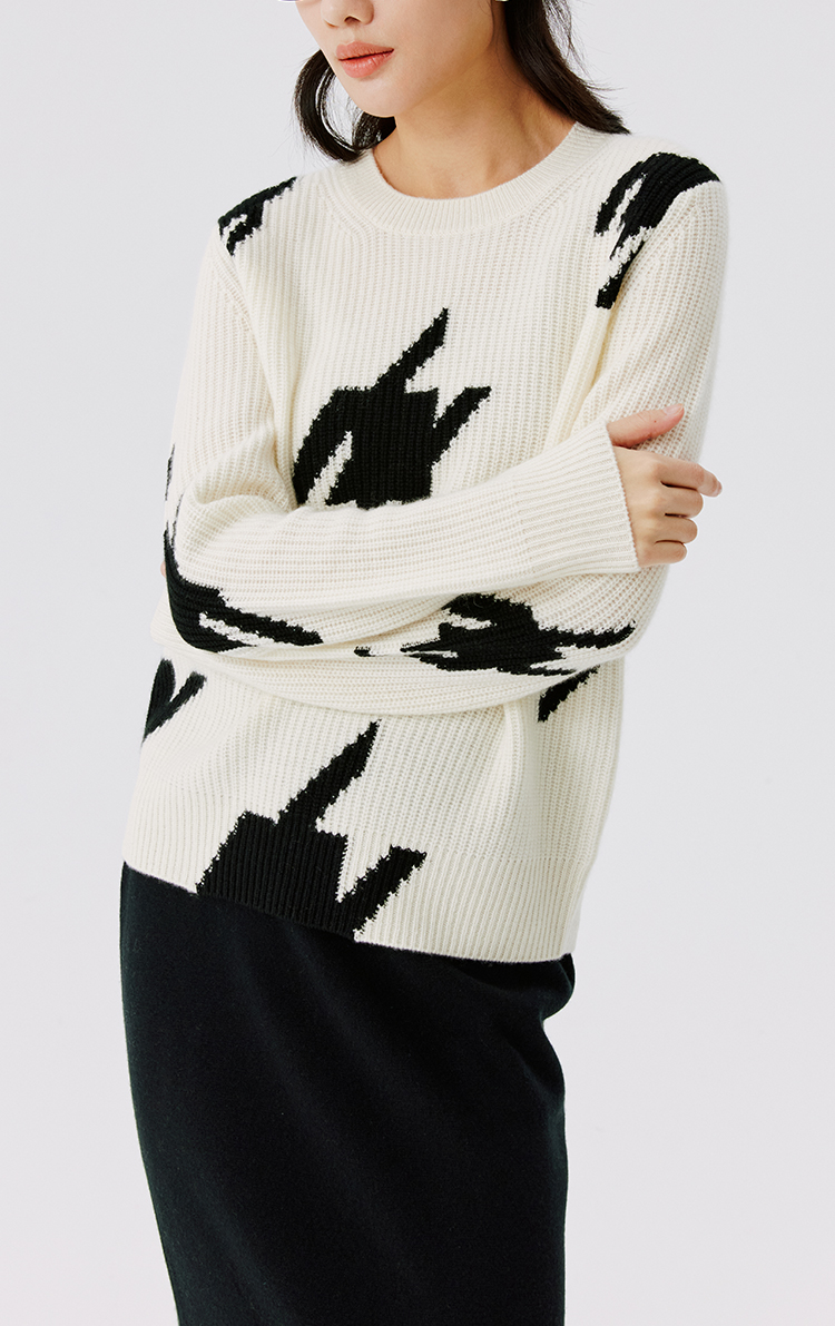 东黎 • 山羊绒女士秋冬千鸟格圆领套衫 4741