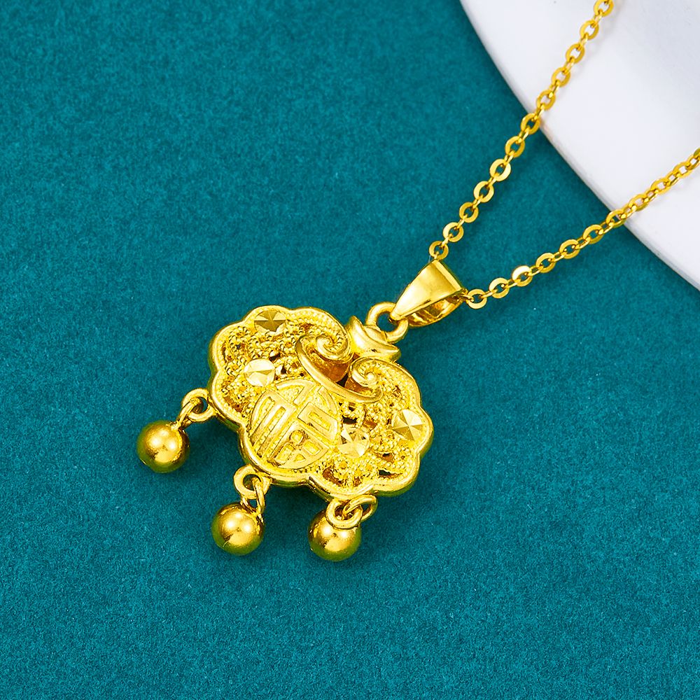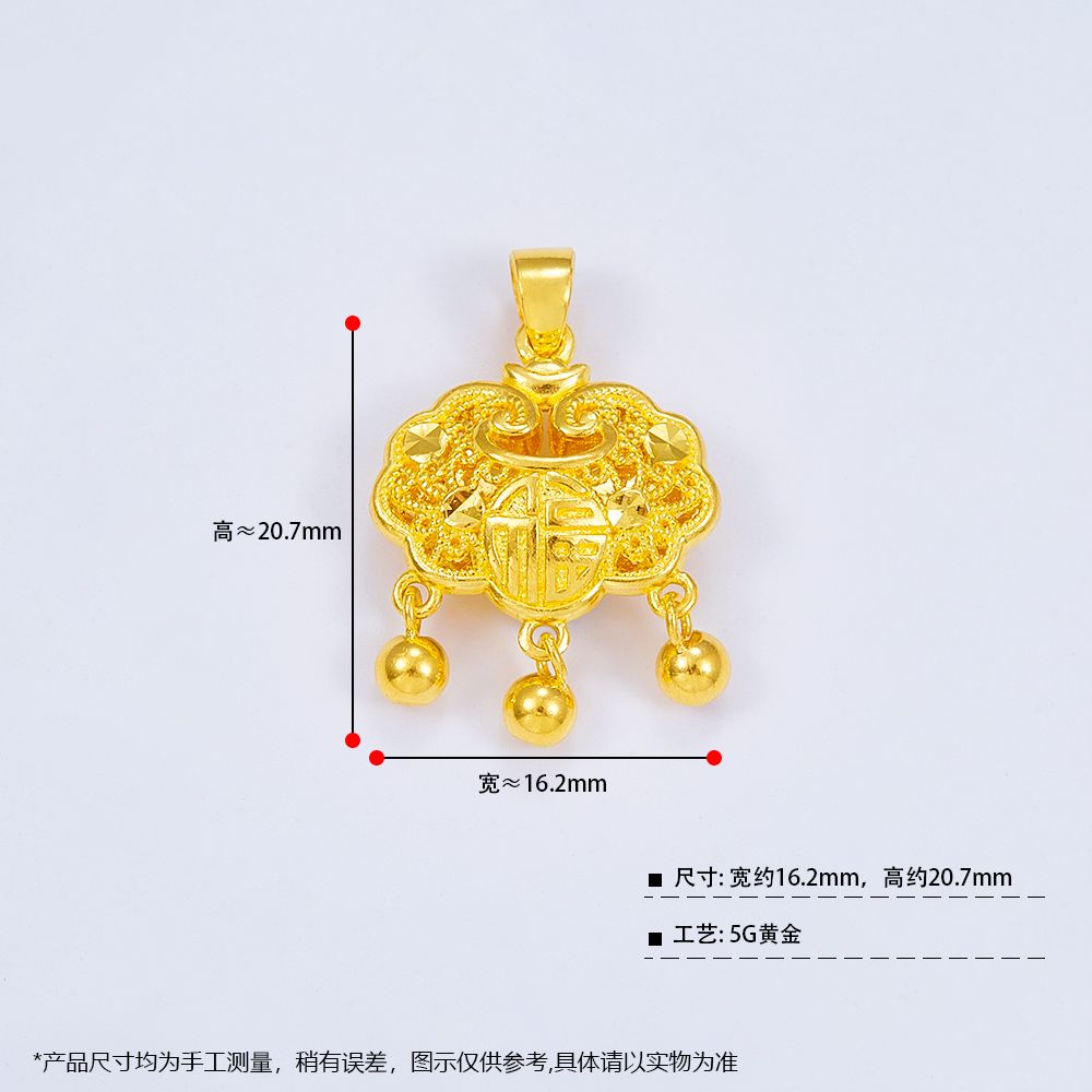 【限时克减150元】足金999 #儿童/宝宝 5G黄金镂空花丝福字锁包吊坠如意铃铛锁包吊坠网红锁包(不含链)(AG5GDZ00119)(预售产品下单后不退款不退货不换货不补差价)
