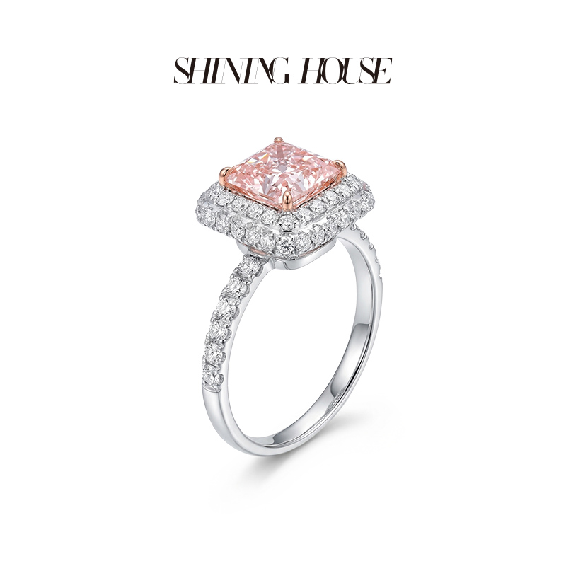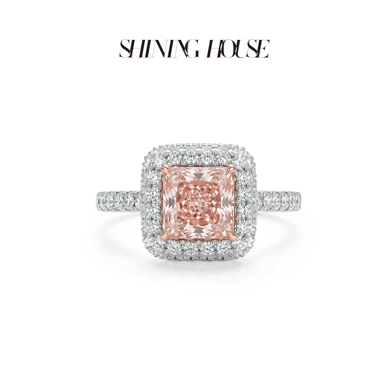 ShiningHouse[培育] 粉钻系列 18k金钻石戒指 粉钻公主方形1克拉钻人工真钻人造钻石K金戒指时尚钻石戒指卓越匠心奢耀臻献【此商品不支持7天无理由退货退款】