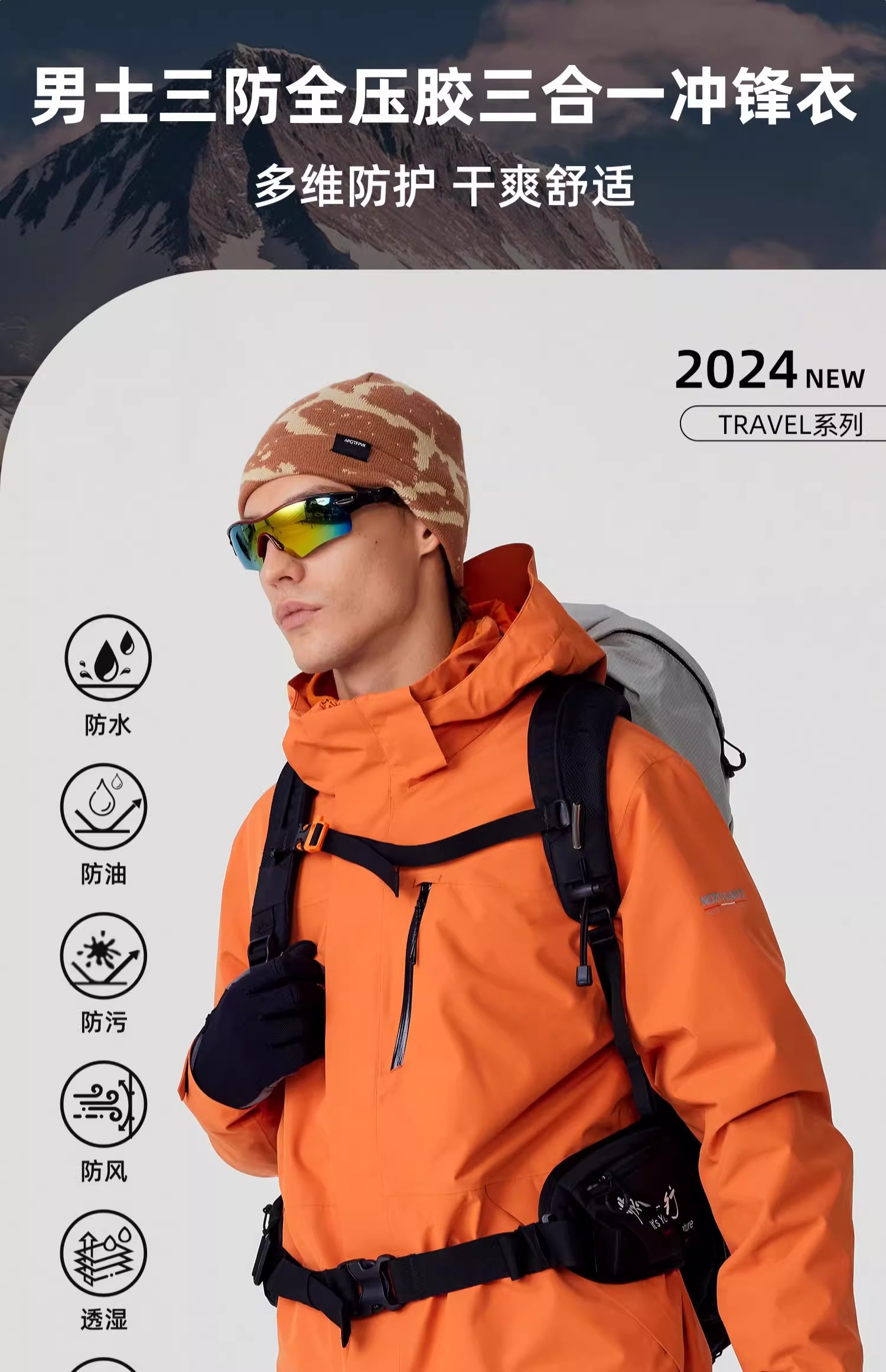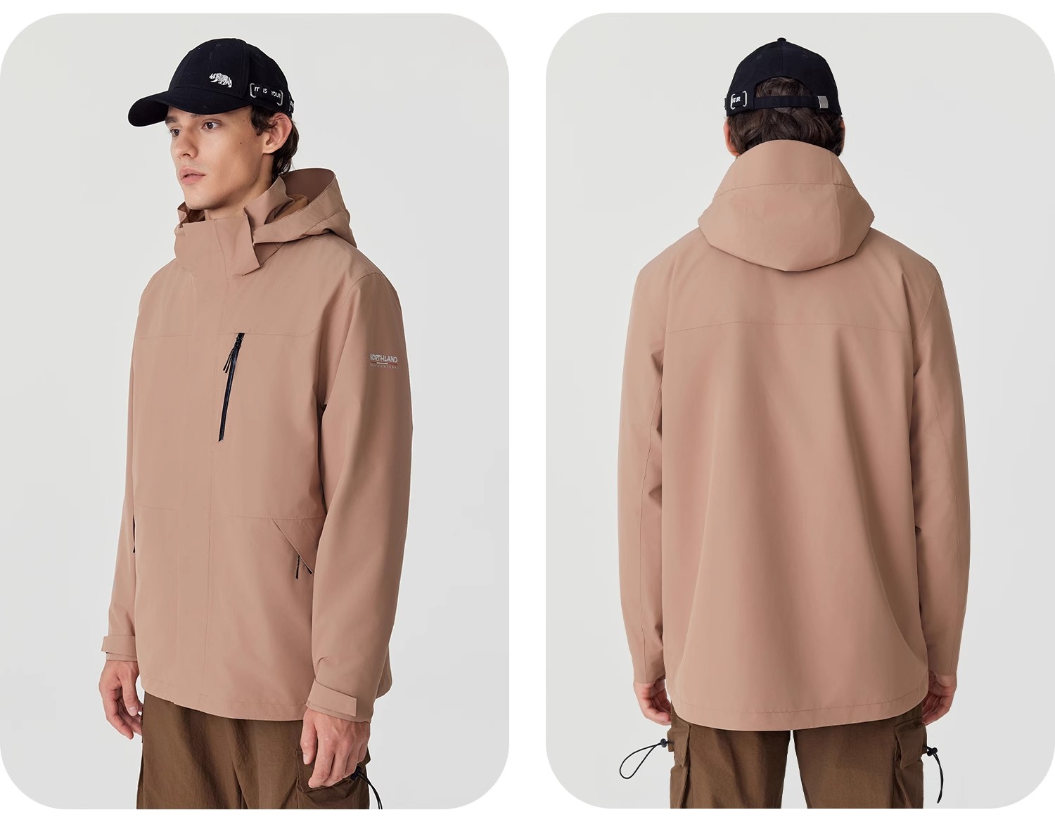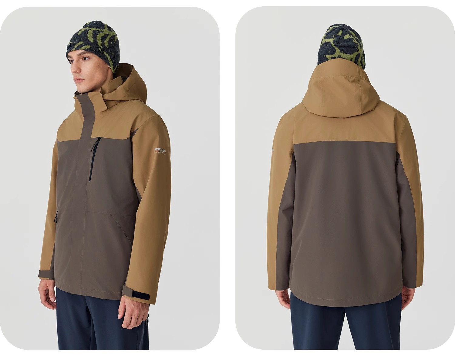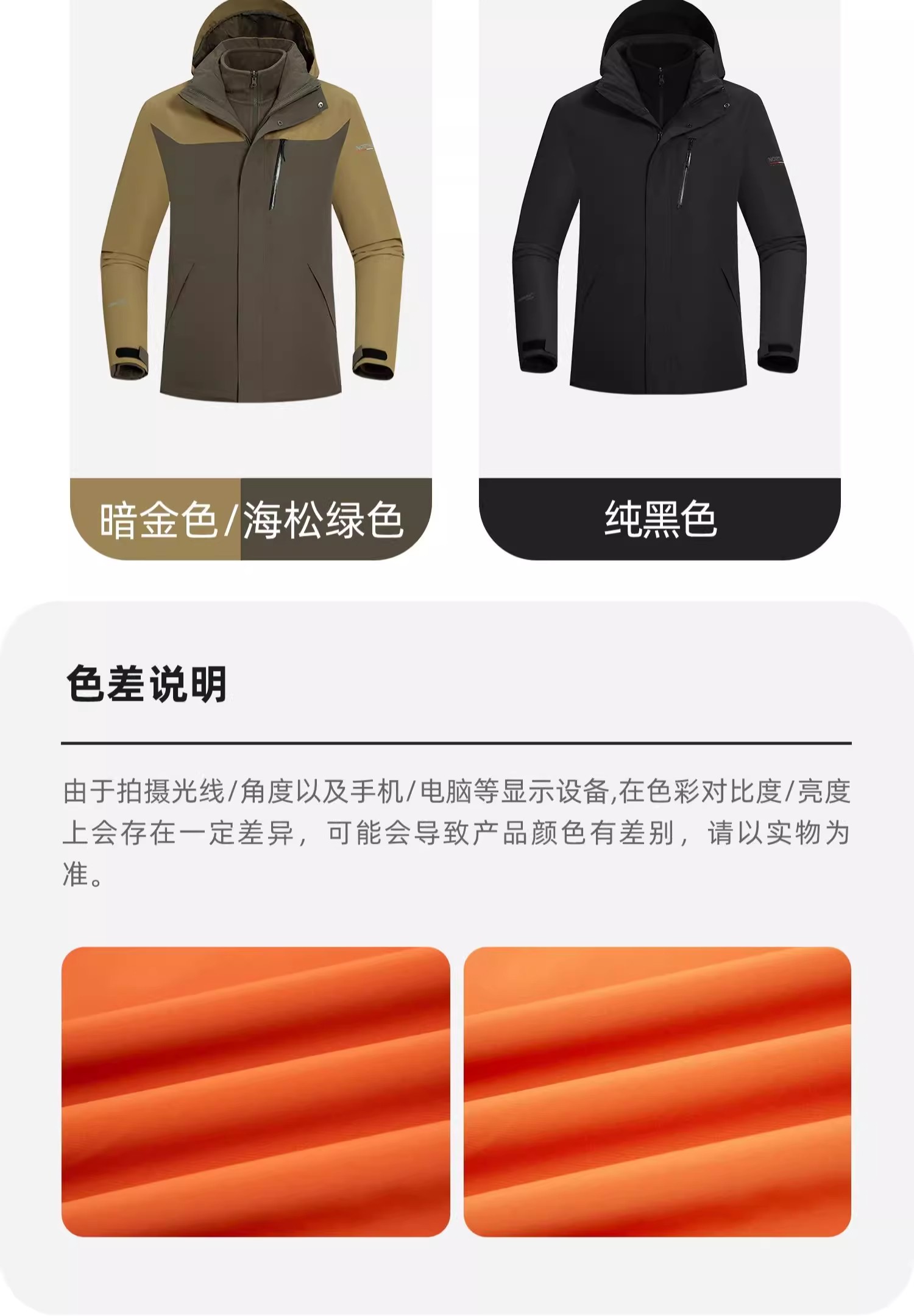 诺诗兰三合一冲锋衣男式户外三防防风防水徒步登山服运动外套上衣南松男式抓绒三穿冲锋衣NWJET5507E