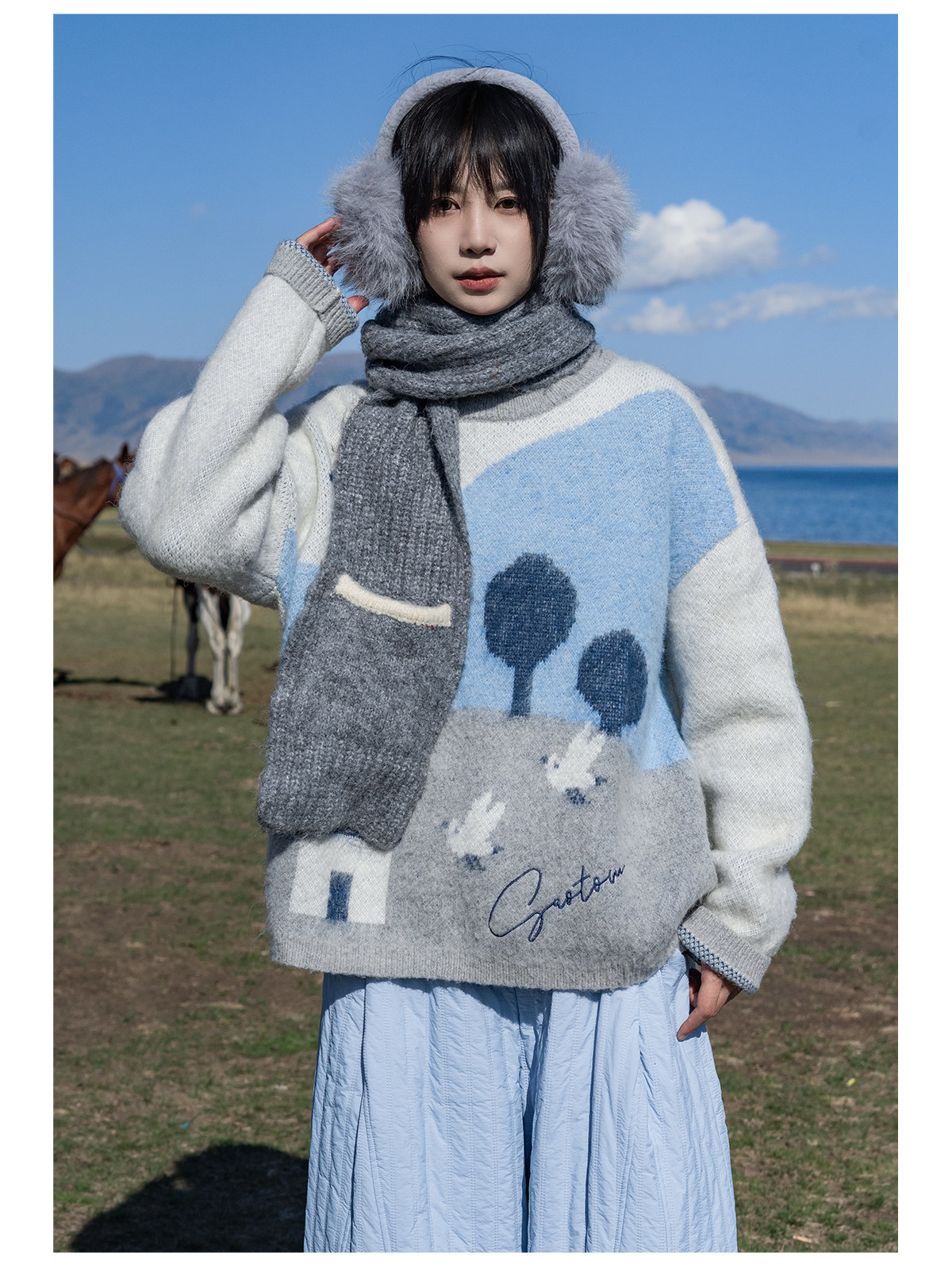 早乙女惠子saotome/STMMY141105/马海毛山野提花提花毛衣