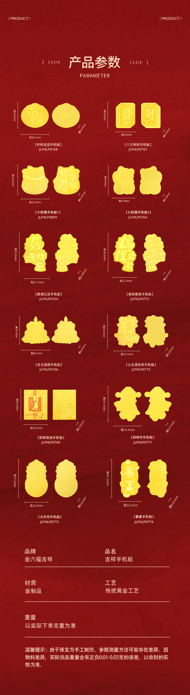 金六福吉祥金制品手机贴★