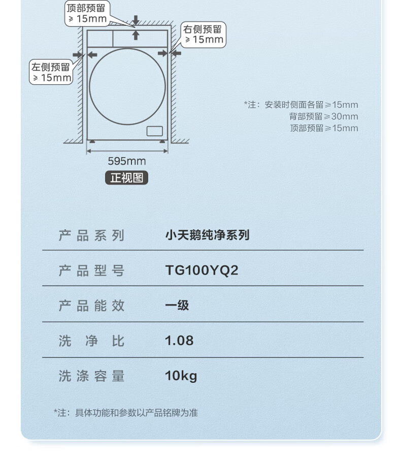 小天鹅(LittleSwan)滚筒洗衣机10公斤_除菌除螨消毒洗_高洗净比高温煮洗_去渍节能_TG100YQ2